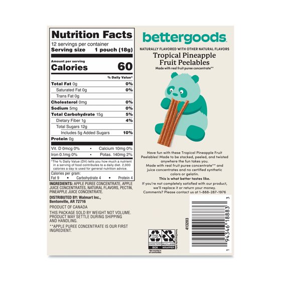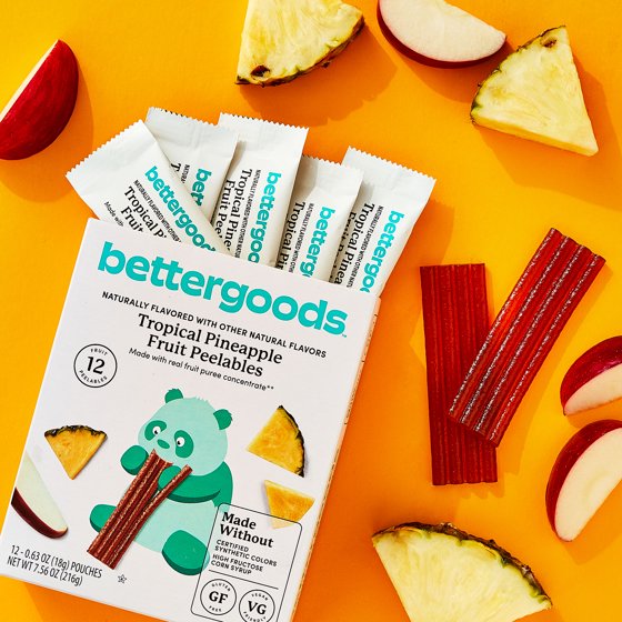 Get ready for a taste sensation with our bettergoods Tropical Pineapple Fruit Peelables! Made to be stacked, peeled, and twisted anywhere the fun takes you, these snack wonders are a beautiful blend of real fruit puree concentrate and juice concentrates, giving you the ultimate pineapple experience. We’ve skipped the synthetic colors and high fructose corn syrup and instead, we let the natural flavors shine through. Perfectly portable, these peelables are your new best friend for on-the-go munching or as a delicious surprise in your lunch box. But we didn’t stop at just taste and convenience — these gems are gluten-free and vegan-friendly too! bettergoods Tropical Pineapple Fruit Peelables– this is what better tastes like.