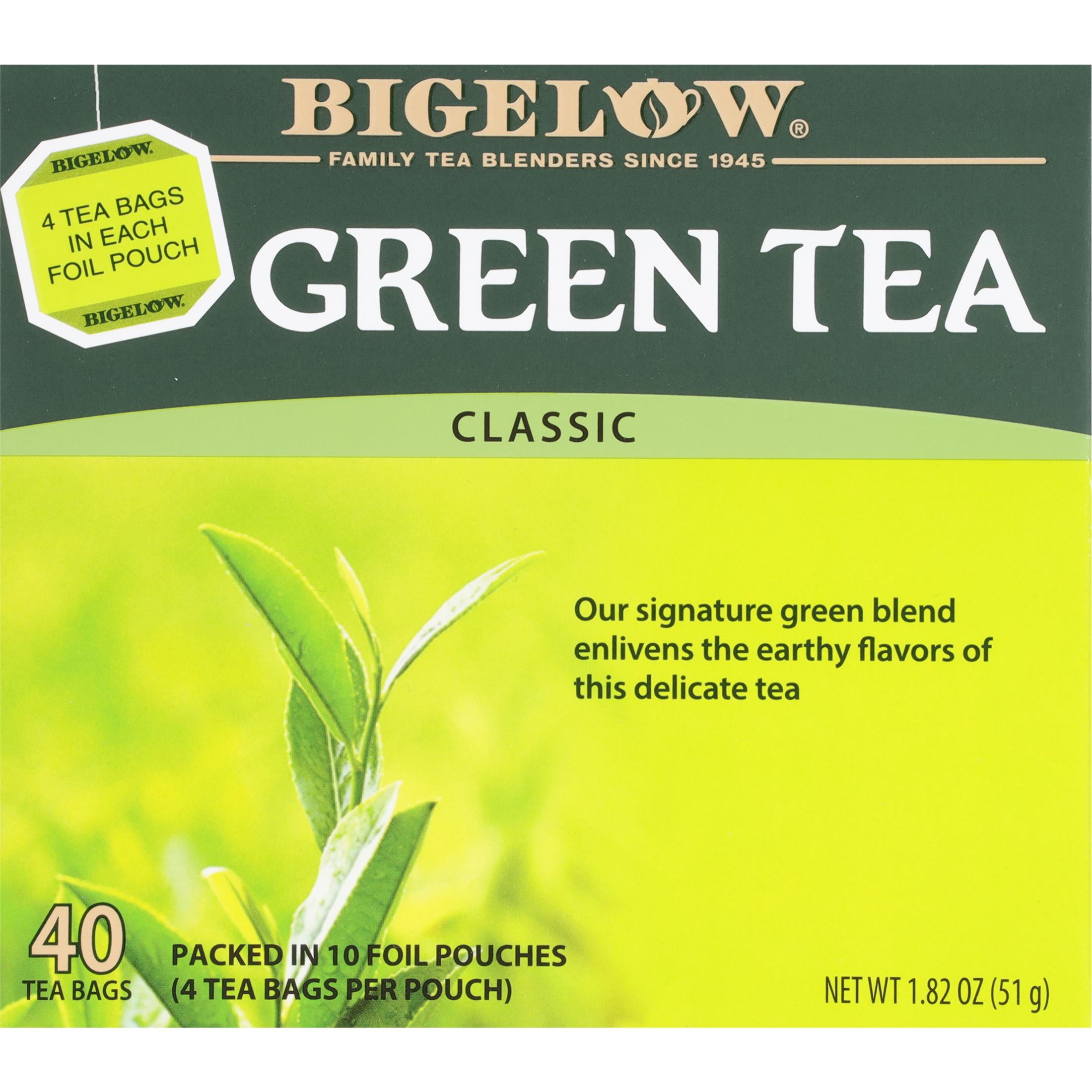 Bigelow Green Tea Classic Tea Bags, Our Green Tea delivers a superior flavor that is both smooth and delicate without any bitterness. What makes Bigelow Green tea taste so special? Our ingredients are carefully selected by the Bigelow family to deliver you an uncompromised quality tea experience. Our recipe combines hand-picked tea leaves, harvested at their peak using only the top two tea leaves and the bud. We gently process it bringing out that natural flavor people have been enjoying for centuries. Each box of this caffeinated green tea contains 40 tea bags packed in 10 foil pouches (4 tea bags per pouch). To maintain the integrity of our exceptional ingredients, we wrap each tea bag in a foil pouch to ensure the fullest flavor, freshness, and aroma. It also makes it convenient to take Bigelow Tea everywhere you go. Bigelow Tea is proud to be 100% family owned and operated since 1945. We are honored to be a Certified B Corporation. This achievement recognizes our commitment to the highest standards of social and environmental impact. Because it’s all about doing the right thing.
