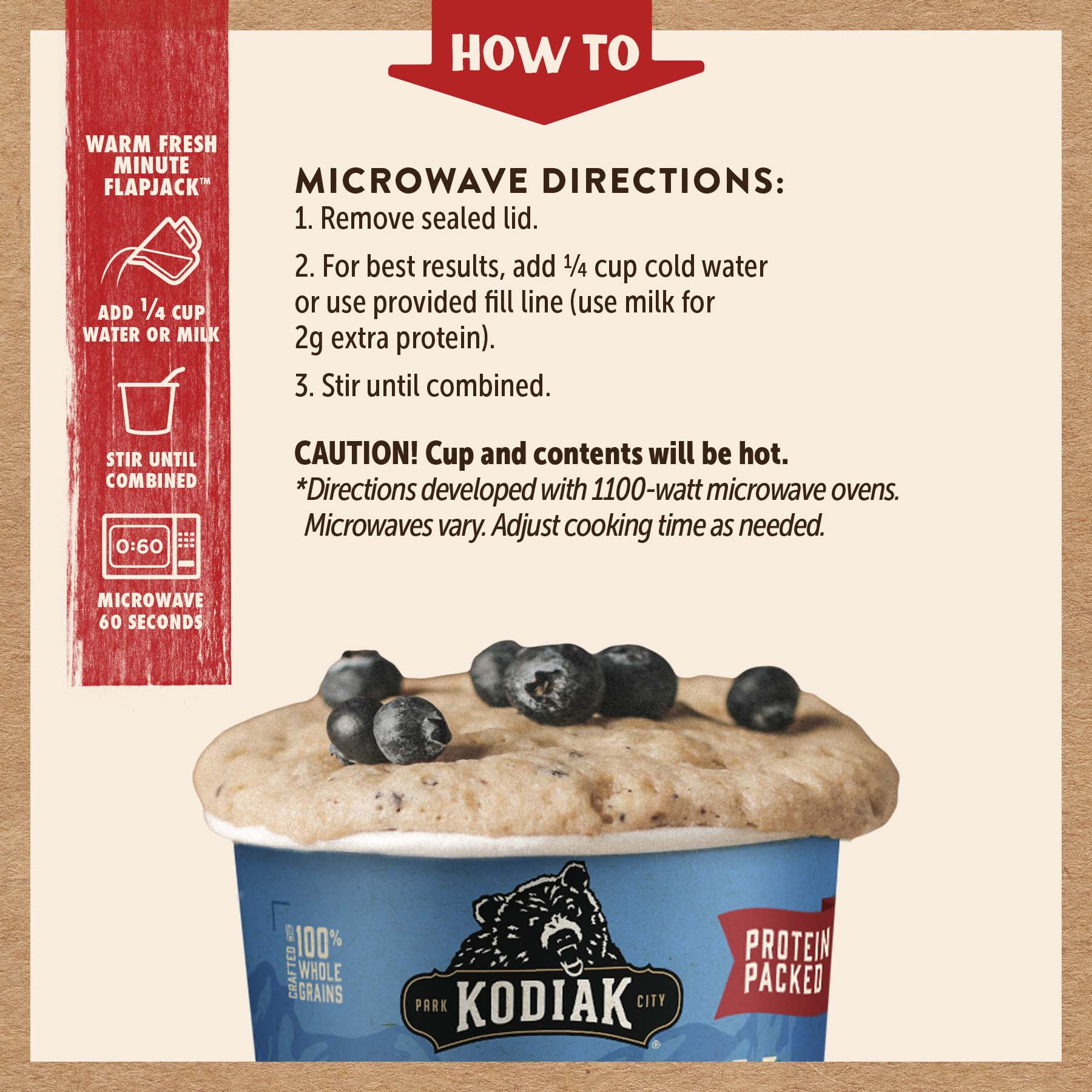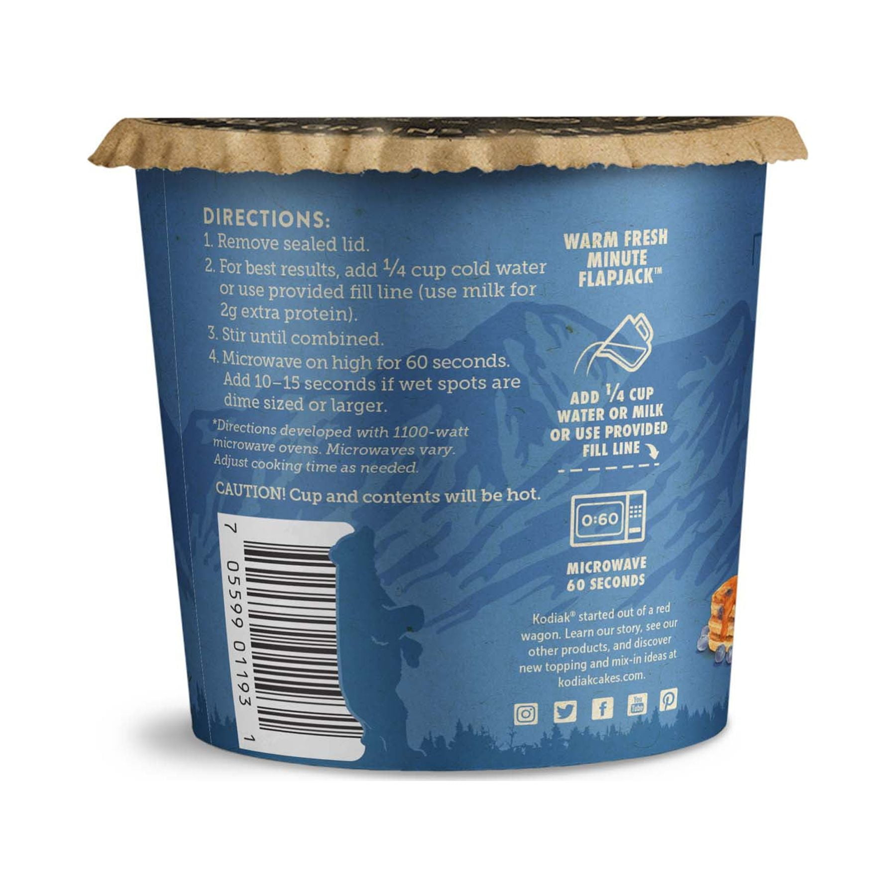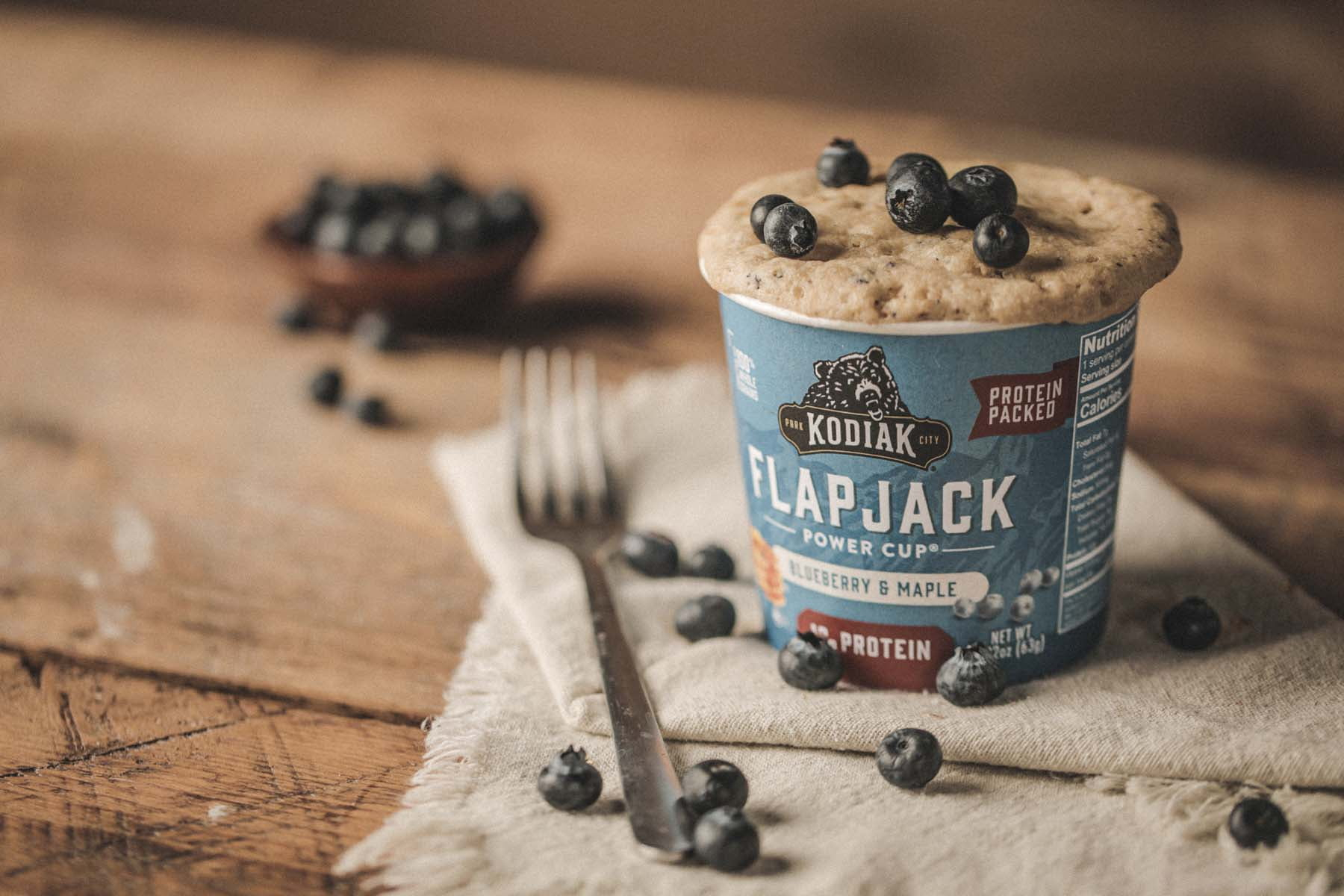 - Kodiak Cakes blueberry and maple flapjack cup