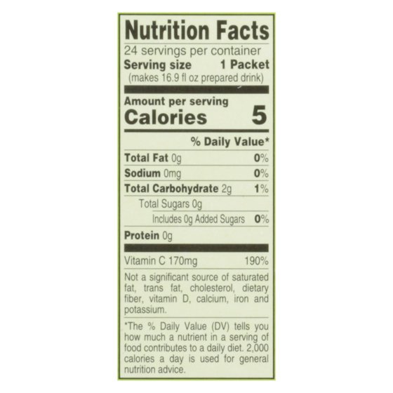 4C Green Tea Antioxidant with Honey & Natural Lemon – 24 CT. Makes 48 servings. Sugar free.24 packets.0 calories.100% vitamin C (DV).NET WT.1.53 OZ (43.4g).Totally light tea 2 go.0 Calories Sugar Free Vitamin C. No sodium.Makes 240 ml (about 8 fl oz) of prepared drink. One serving contains approximately 70mg of antioxidants.www.4c.com.©4C Foods Corp.