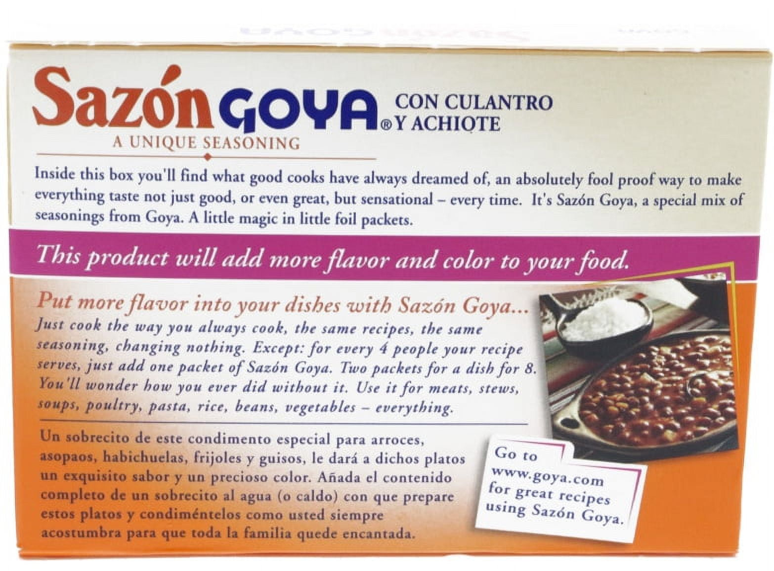 - Goya seasoning delivers an authentic Latino flavor