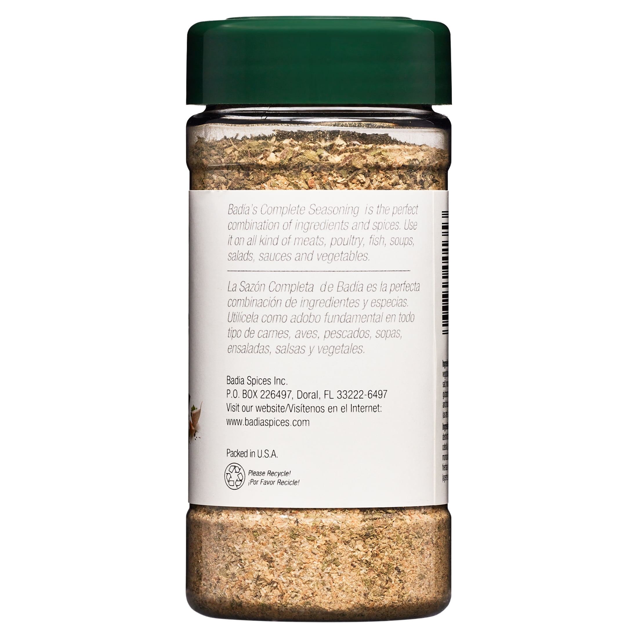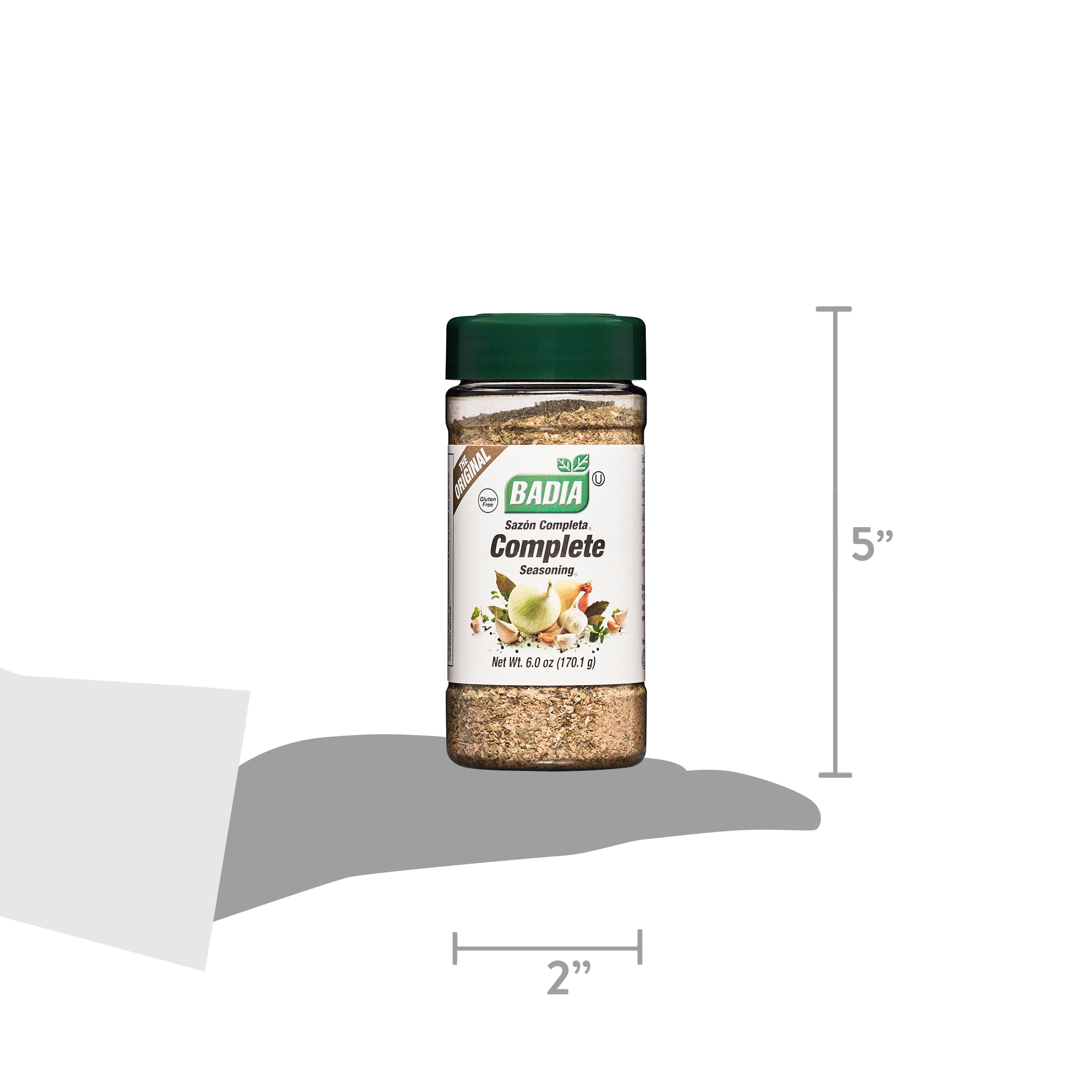 Badia the Original Complete Seasoning adds a unique flavor to your foods. It contains a blend of onion and garlic with specially selected spices to enhance the natural flavor of your favorite dishes. The taste is similar to what is found in many Latin dishes. Sprinkle it on meat, poultry and fish as well as vegetables to suit your taste. It’s also ideal when preparing soups, stews and sauces. Keep several of these 6 oz containers of gluten-free seasoning in your kitchen pantry for everyday meals. This product is a suitable choice for individuals who follow a kosher diet. Explore other spices from Badia, such as curry powder, ground black pepper, lemon pepper, Spanish saffron, oregano, cumin, basil and more (each sold separately).