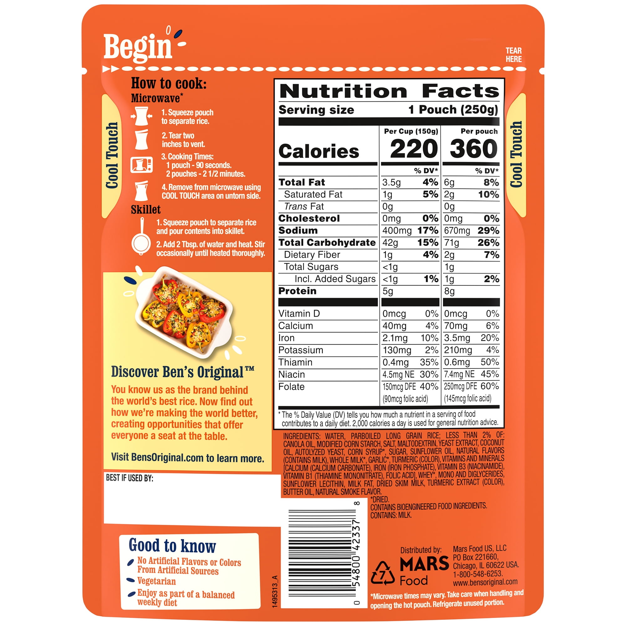 - One 8.8 oz pouch of BEN’S ORIGINAL Ready Rice Butter and Garlic Flavored Rice