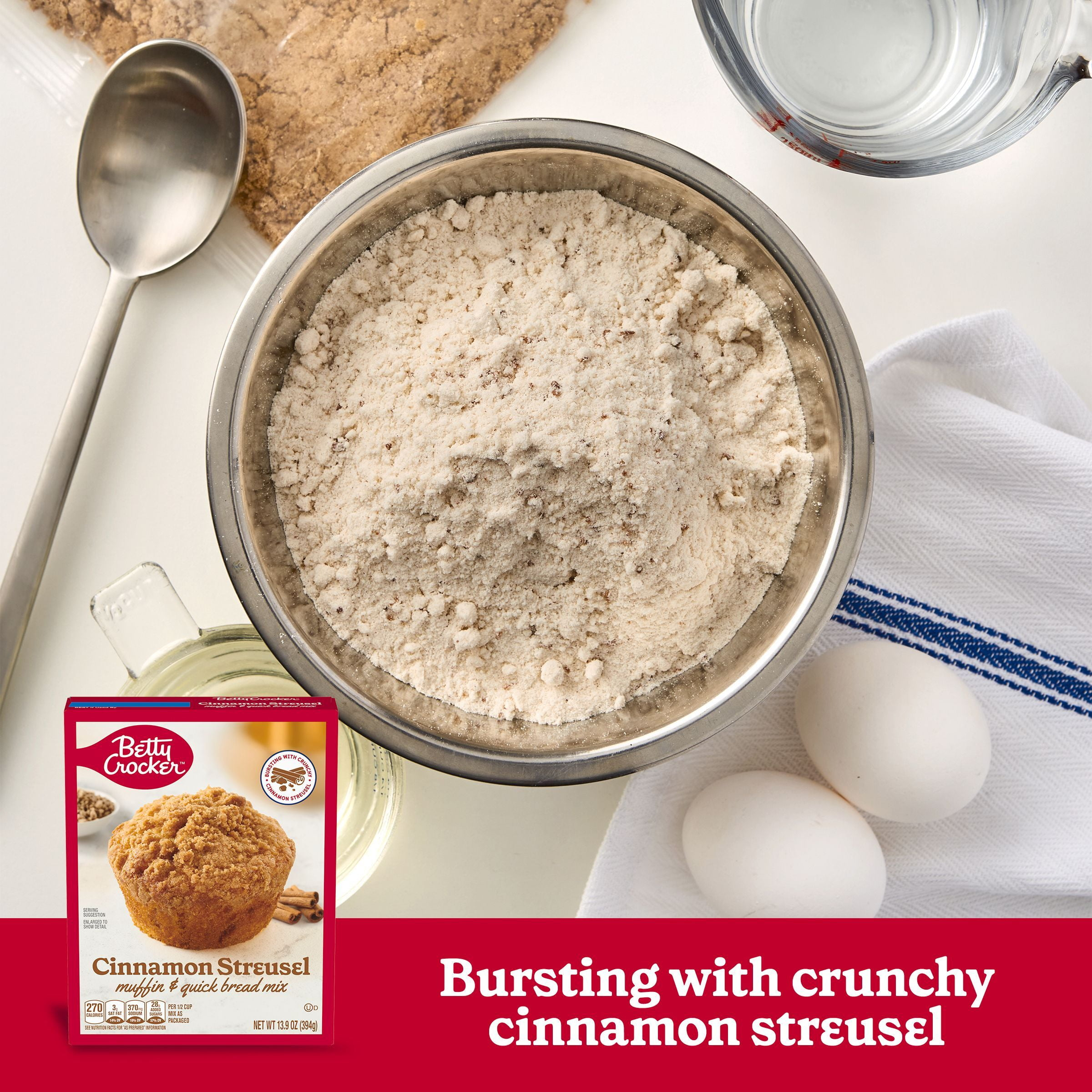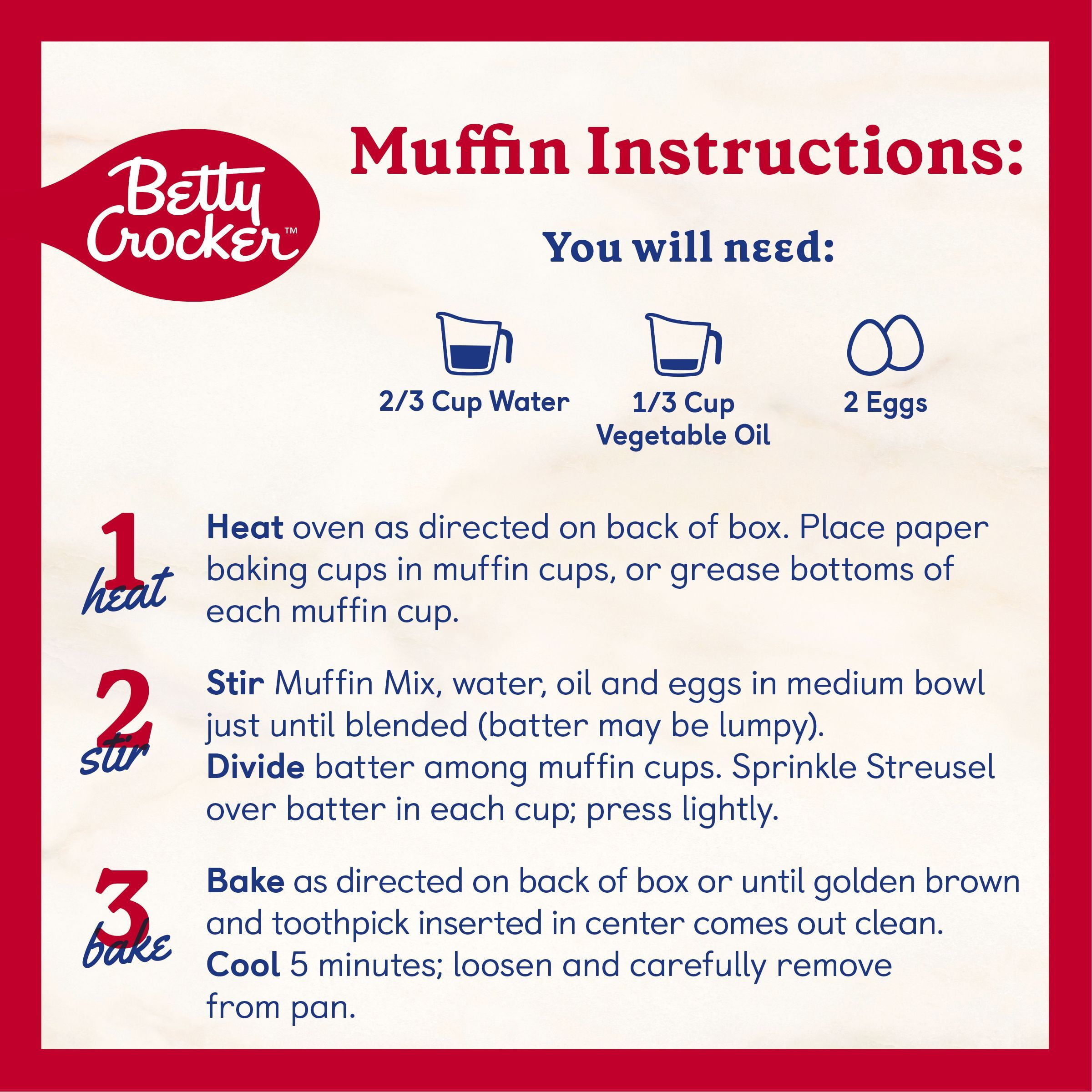 Part streusel, part muffin and 100% delicious, Betty Crocker Cinnamon Streusel Muffin and Quick Bread Mix is ready to bake in minutes and great with breakfast, leisurely brunches or anytime snacks. Fill your home with the delicious scent of homemade bread, muffin or streusel; this baking mix will make the perfect portable treat for families on the go. Enjoy one of life’s little luxuries! For more than a century, Betty Crocker has been a popular creator of simple, delicious recipes. Today, the Betty Crocker kitchen is still providing convenient, tasty dessert mixes, frostings, and convenient meal options and side dishes. And today, you can still find that same simple goodness – those same products you grew up with – on grocery shelves around the world.