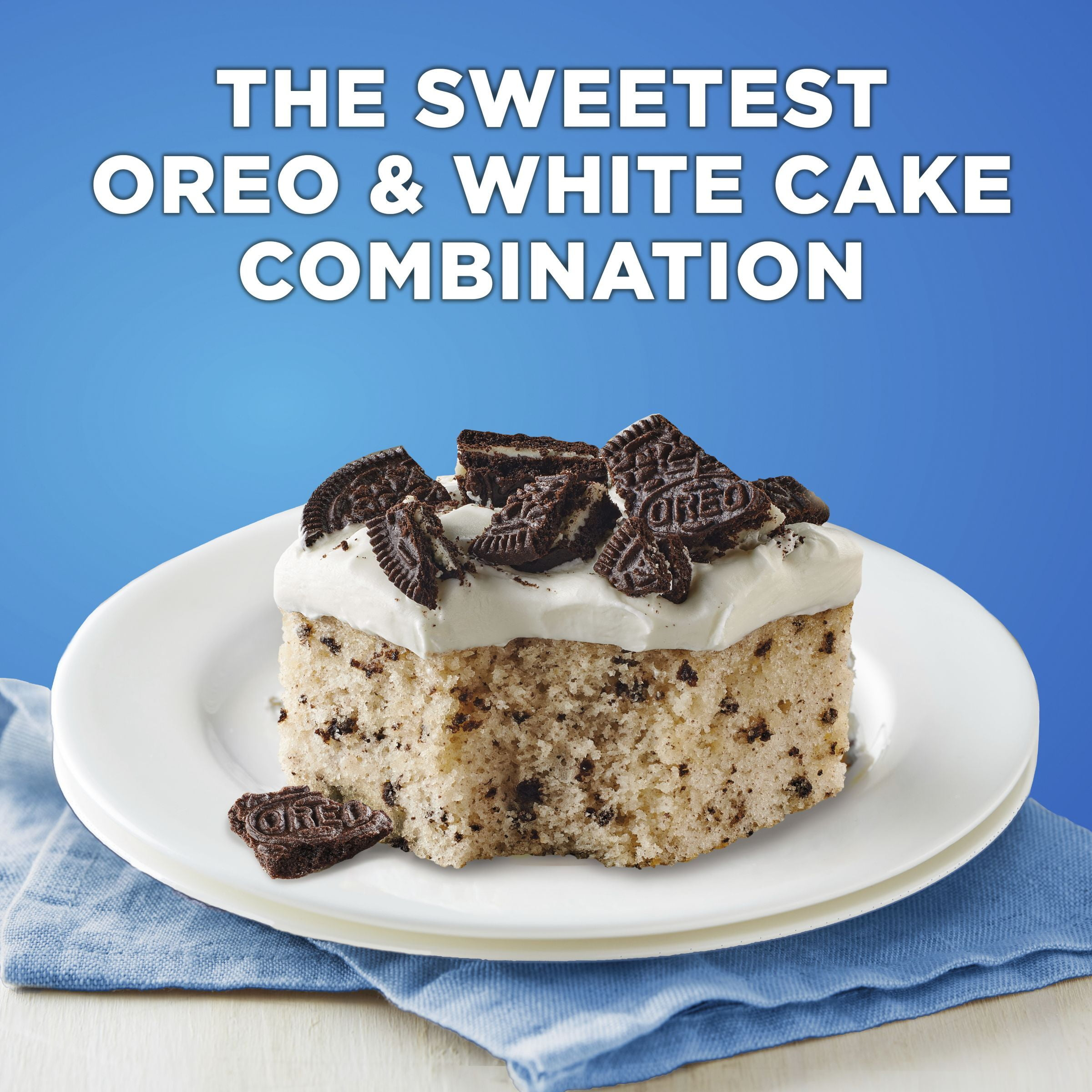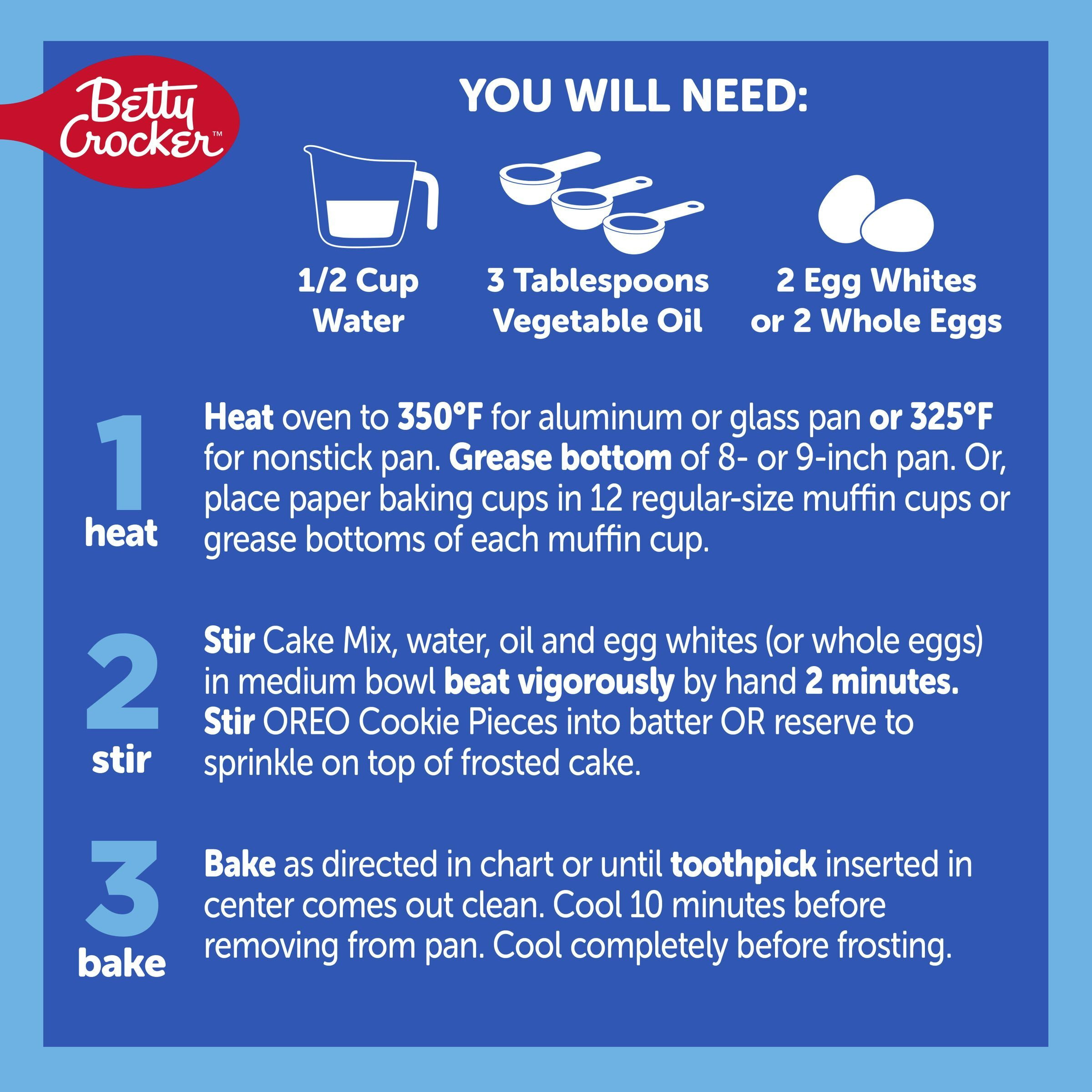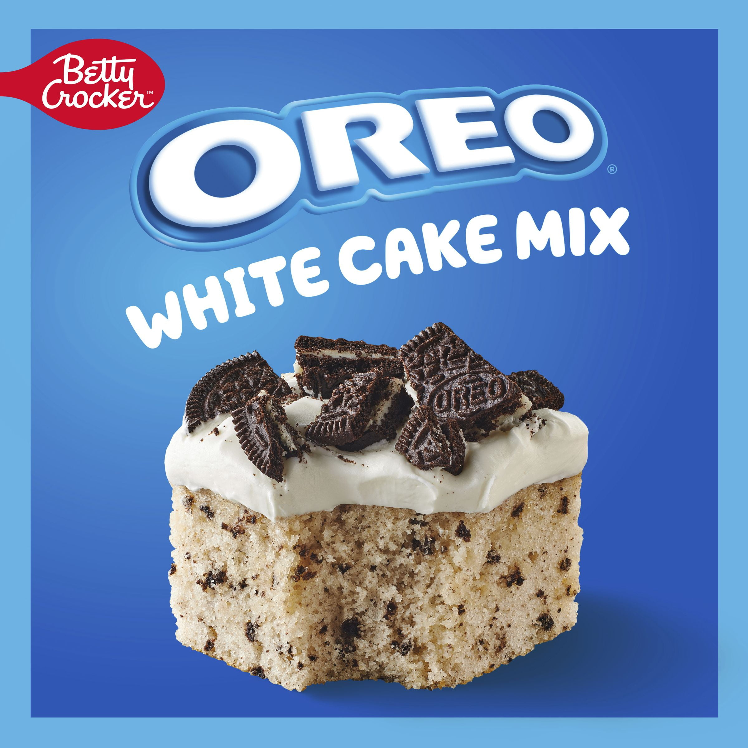 - BETTY CROCKER & OREO: Betty Crocker White Cake Mix with real OREO Cookie Pieces you can sprinkle into the batter before baking or sprinkle on top of the frosted cake