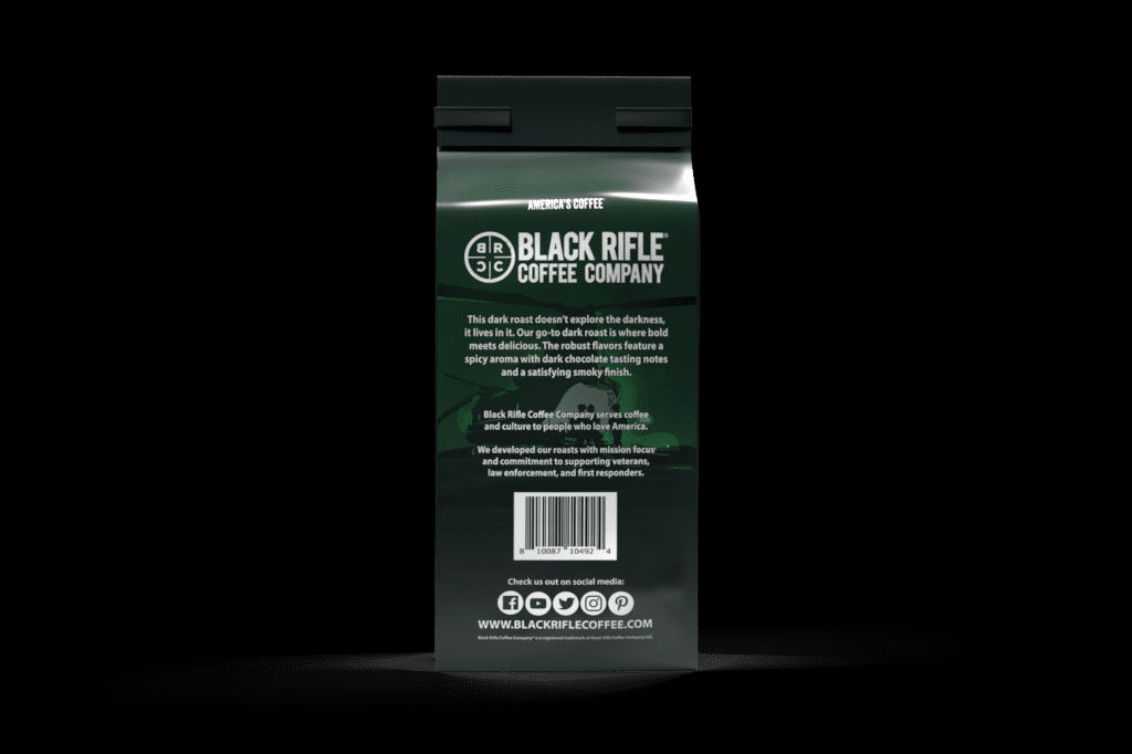 Black Rifle Coffee Company Beyond Black, Dark Roast, Ground Coffee, 12 oz – is one of our core roasts. If you’re looking for a coffee that is bold and delicious, this is your go-to dark roast. Beyond Black packs powerful spicy aromas with notes of dark chocolate, caramel, and a sublime smoky finish; a classic dark roast lover’s dream. Each 12oz bag of coffee will make about 16 cups. The various roasts of Black Rifle Coffee Company provide everyone from the beginner to the advanced coffee drinker with a different way to experience our high-quality coffee. Light Roast offers a smoother, more easy-drinking experience. Medium Roast has the most balanced flavor, aroma, and acidity. Dark Roast brings a more heavy body and richer flavor with lower acidity. Extra Dark Roast delivers the richest, most smoky flavor from our coffee roaster. Shelf-Stable.