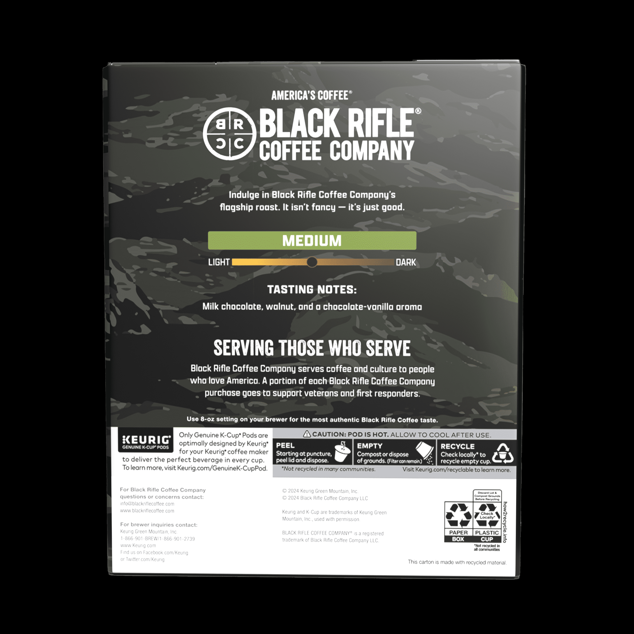 Black Rifle Coffee Company Just Black Single-Serve K-Cup Pods, Medium Roast, 22 Ct