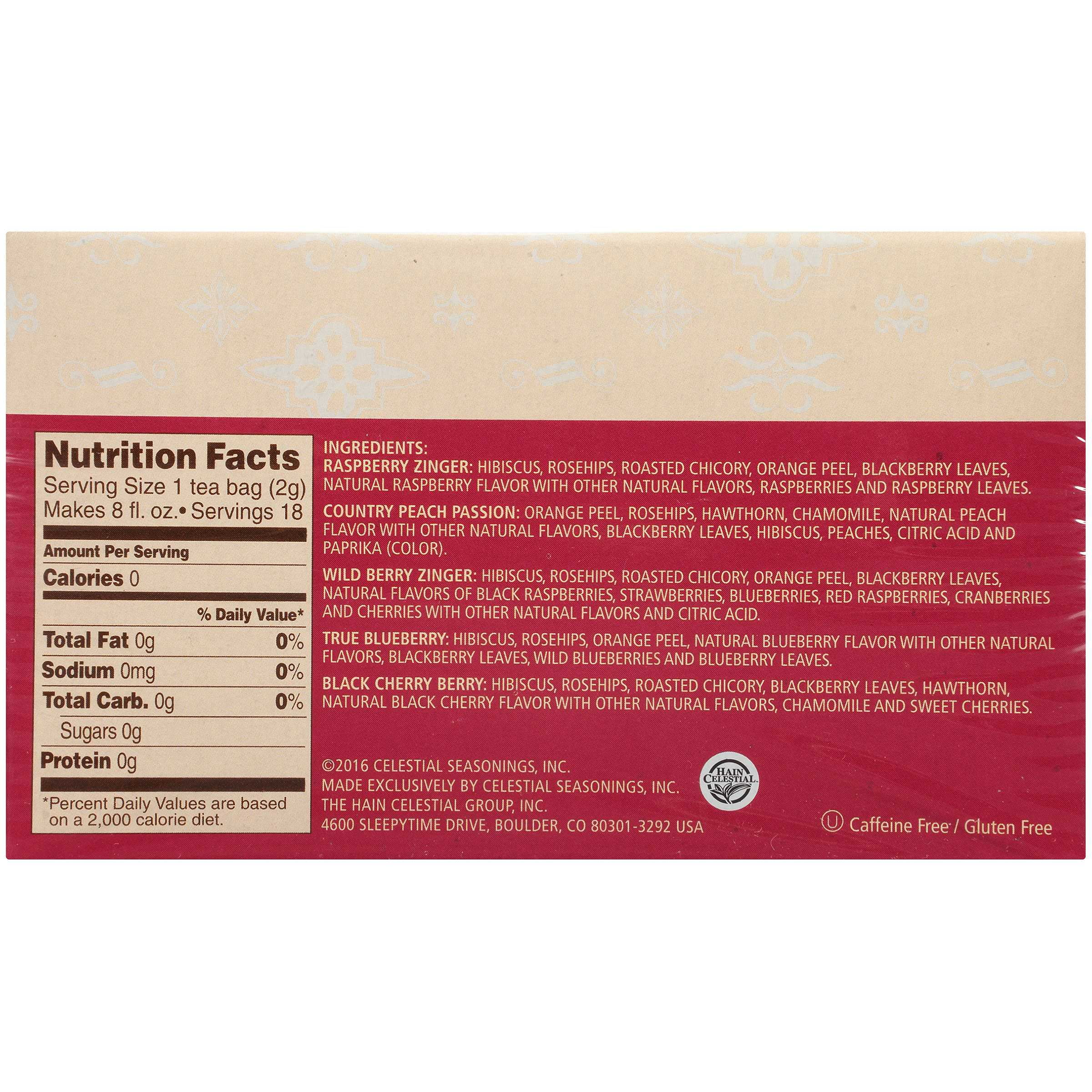 Celestial Seasonings Fruit Tea Sampler, Caffeine-Free Herbal Tea Bags, 18 Count: