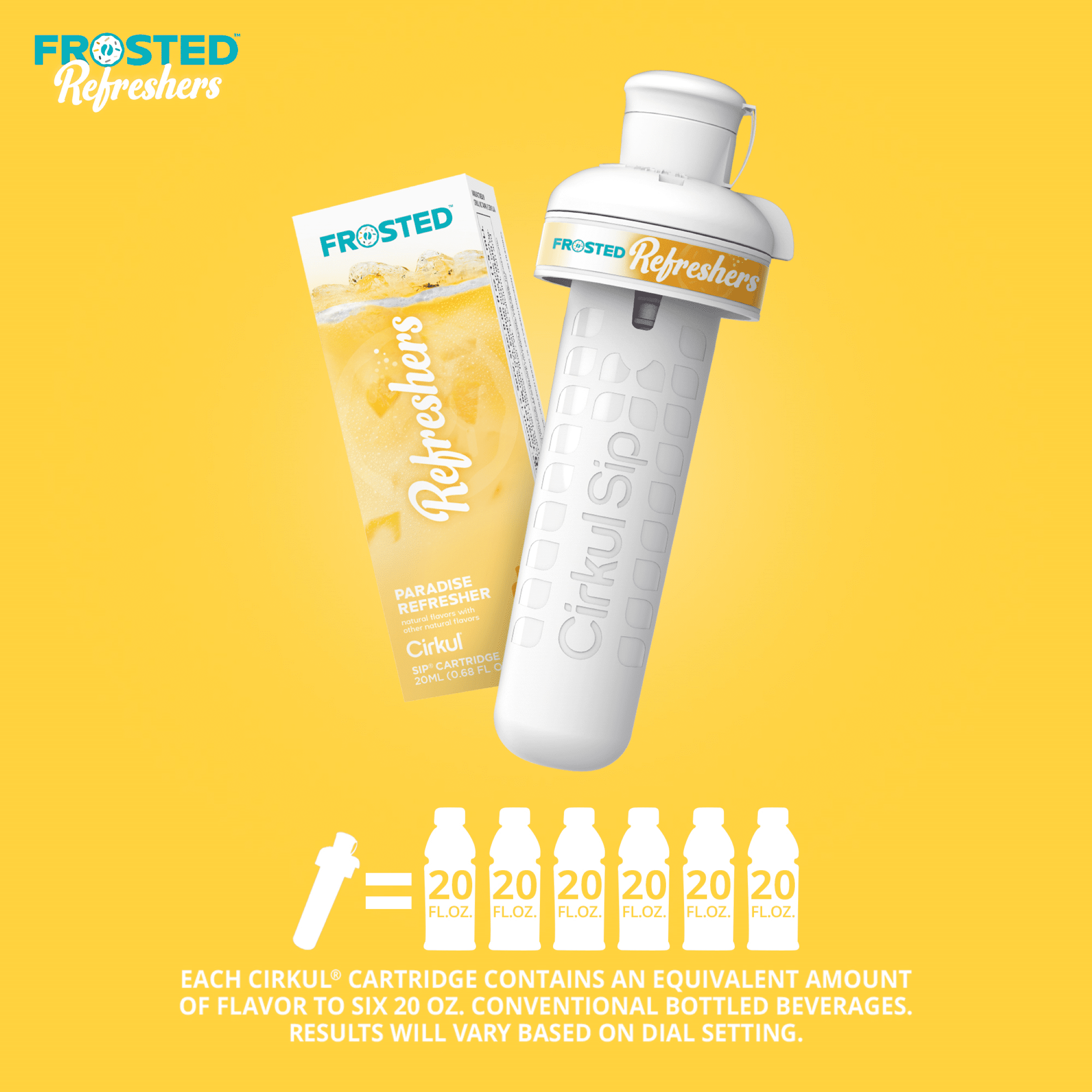 - Each Cirkul Cartridge contains an equivalent amount of flavor to six 20 oz. conventional bottled beverages. Results will vary based on dial setting.