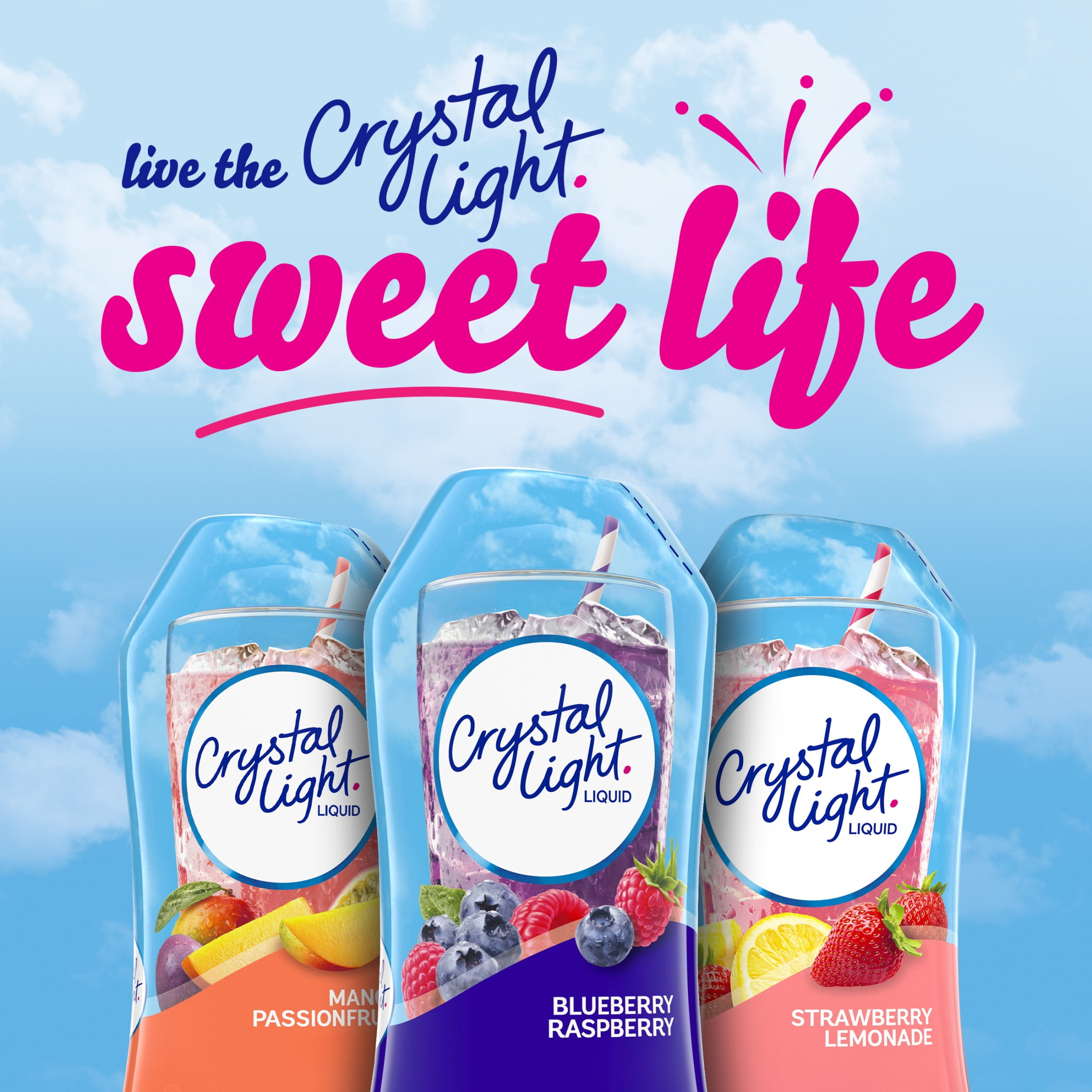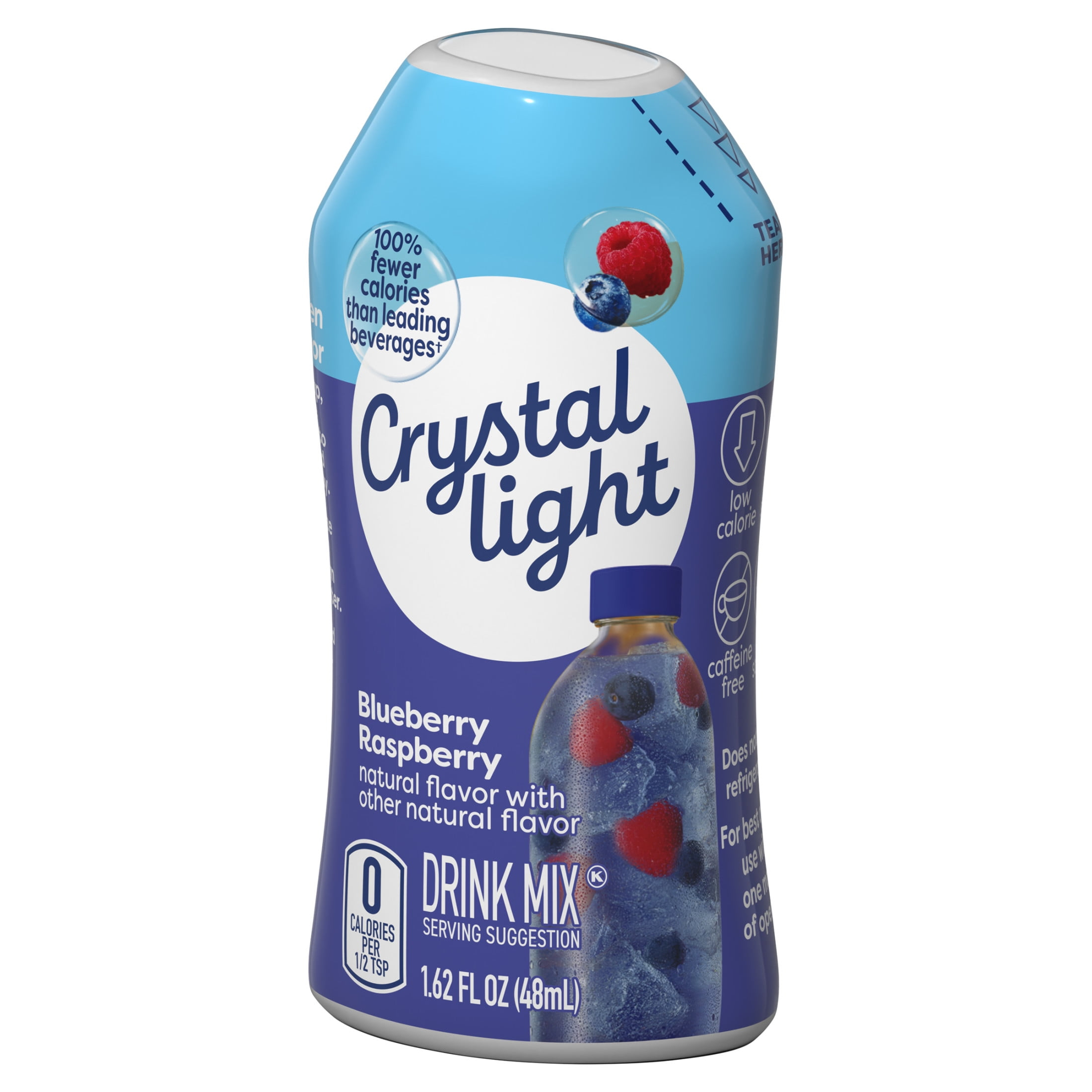 Crystal Light Liquid Naturally Flavored Blueberry Raspberry Drink Mix is a deliciously fruity beverage to keep you feeling refreshed at home or on-the-go. The liquid berry flavored drink mix blends easily with water so you can shake up your day with a delicious no calorie blueberry raspberry fruit drink instantly. Crystal Light Liquid drink mix has zero calories and zero grams of sugar. The compact 1.62 fluid ounce squeeze bottle fits easily in your bag, pocket or car, so you can enjoy the great taste of Crystal Light anytime, anywhere! To prepare, simply squeeze a few drops into water, stir, and enjoy! All the flavor and no calories, just the way you like it.