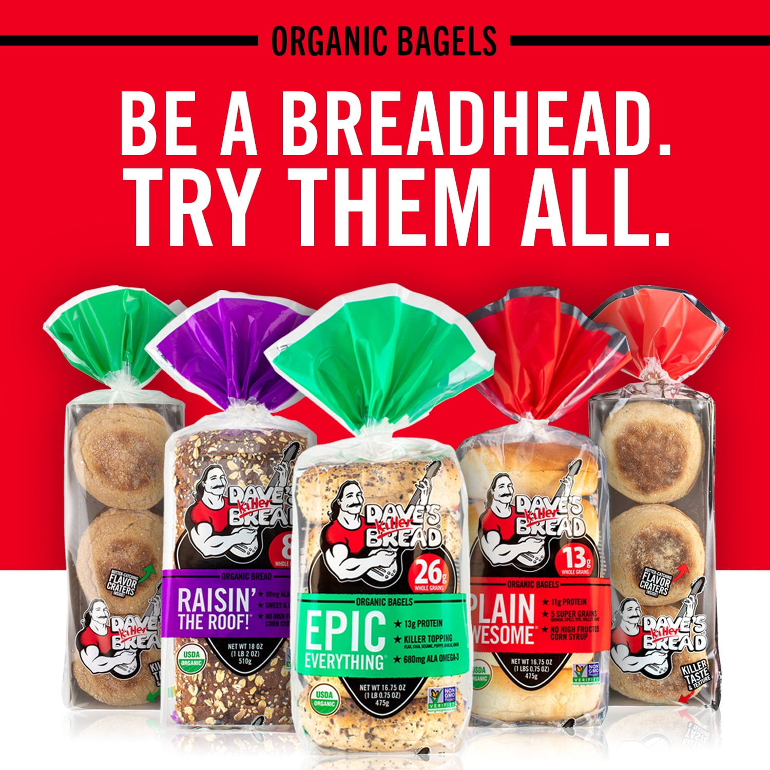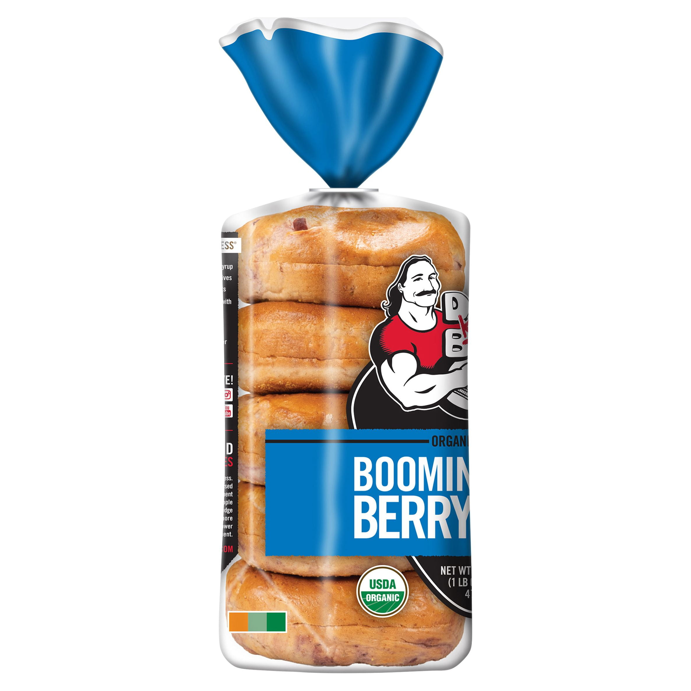Dave’s Killer Bread® Boomin’ Berry® Organic Bagels are a USDA organic bagel bread bursting with berry flavor. Sure to start your day off with a bang, each bagel contains 11g protein and 13g of whole grains. These hearty texture shelf-stable blueberry bagels are boomin’ with delicious super berries and fruit swirls, including cranberry, blueberry, blackberry and acai not to mention no high-fructose corn syrup and no artificial preservatives or ingredients. You can trust Dave’s Killer Bread® to deliver killer taste, texture and whole grain nutrition. Boomin’ Berry® Bagels are pre-sliced and ready to be slathered in smooth cream cheese or butter to help you build a better breakfast bagel sandwich. If you love blueberry bread, you’re sure to fall in love with these bagels! Look for our everything bagels, other flavors of bagel, thin sliced breads, and more.