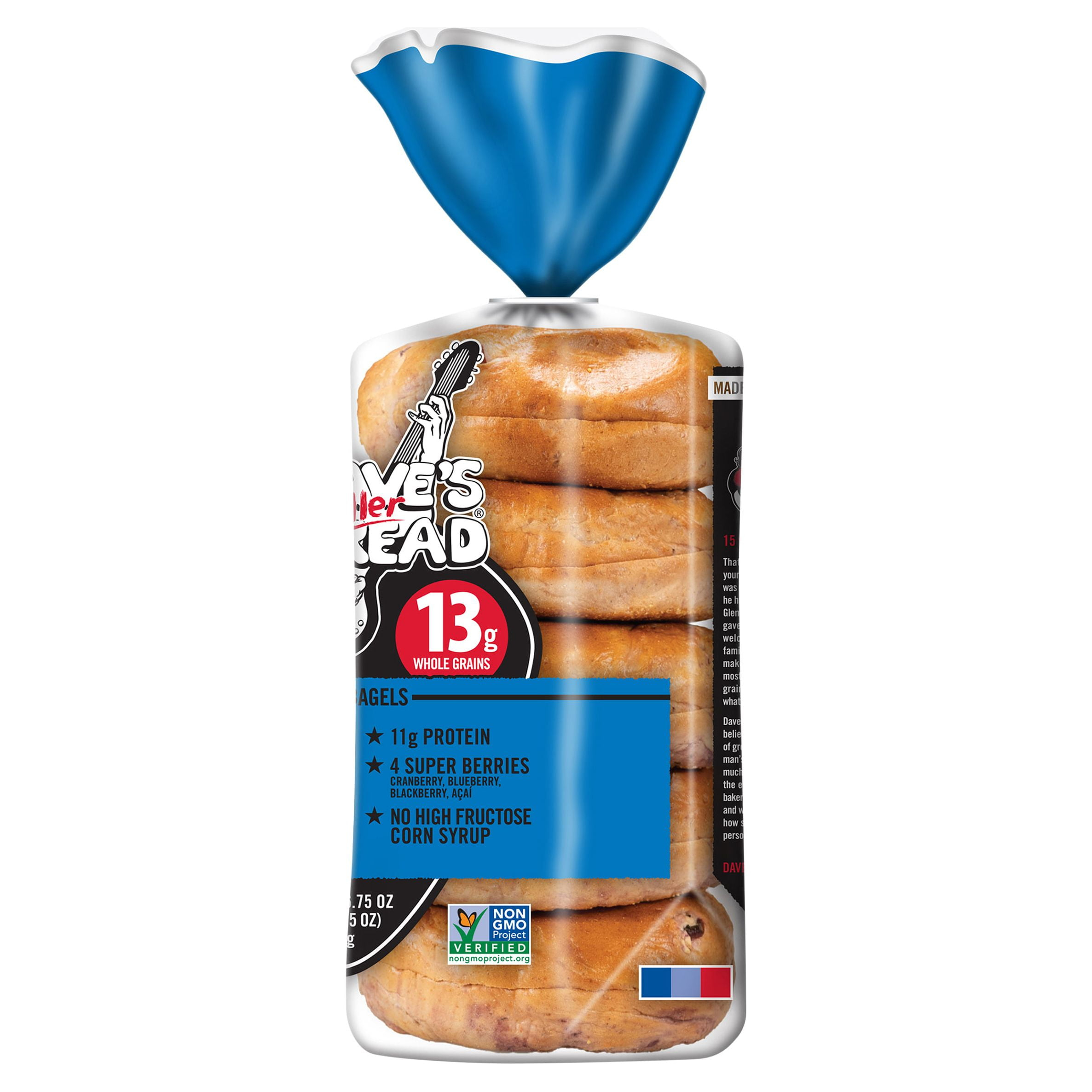 Dave’s Killer Bread Boomin’ Berry Organic Bagels are just incredible! We’ve tried all the brands of blueberry bagels and Dave’s wins hands down. They may cost a bit more, but they are worth every penny. Loaded with blueberries, you can actually see and taste juicy berries baked in every scrumptious bite. We have one for breakfast every morning spread with blueberry or strawberry cream cheese. Very satisfying with a cup of coffee!