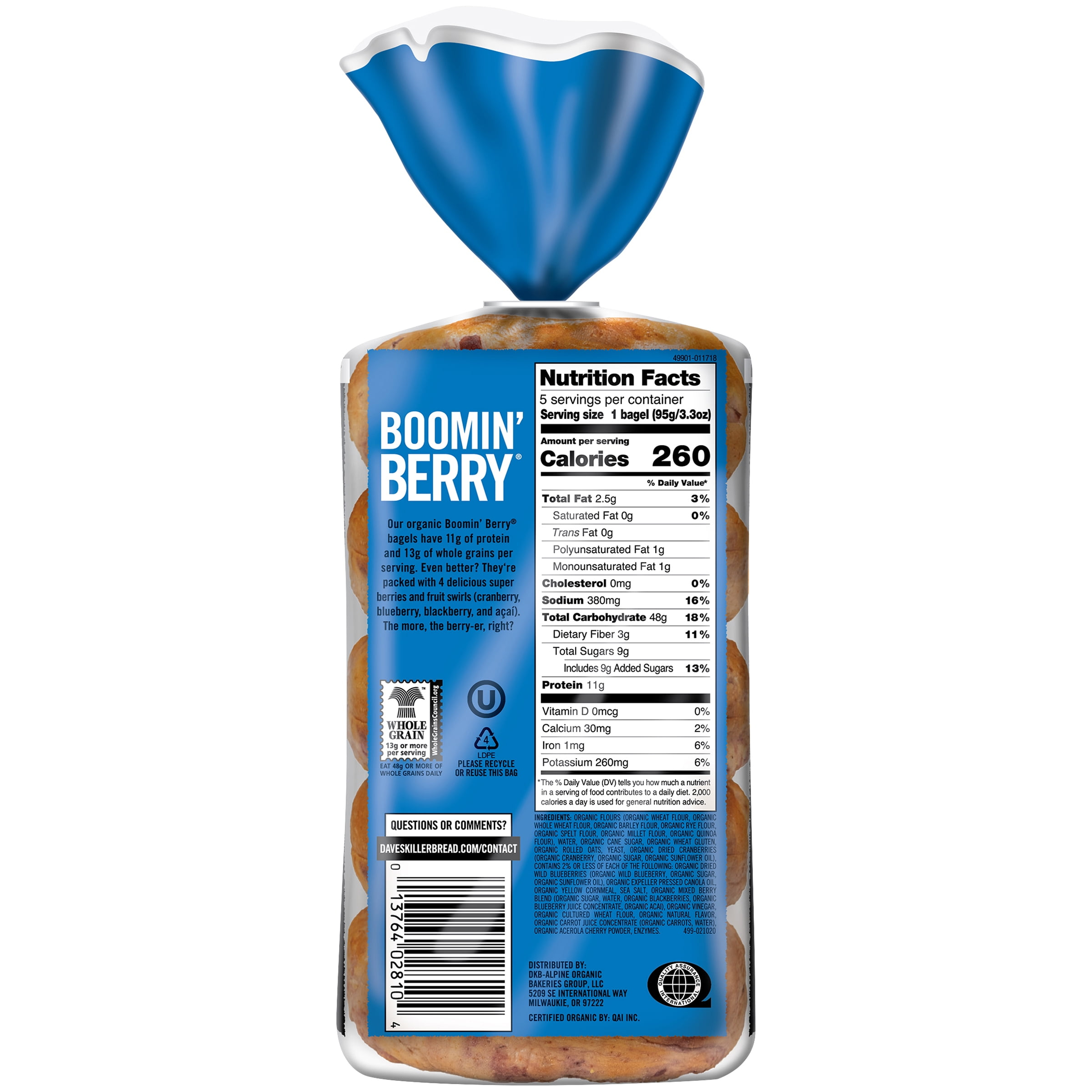 Dave’s Killer Bread Boomin’ Berry Organic Bagels, 16.75 oz, 5 Ct, Shelf-Stable