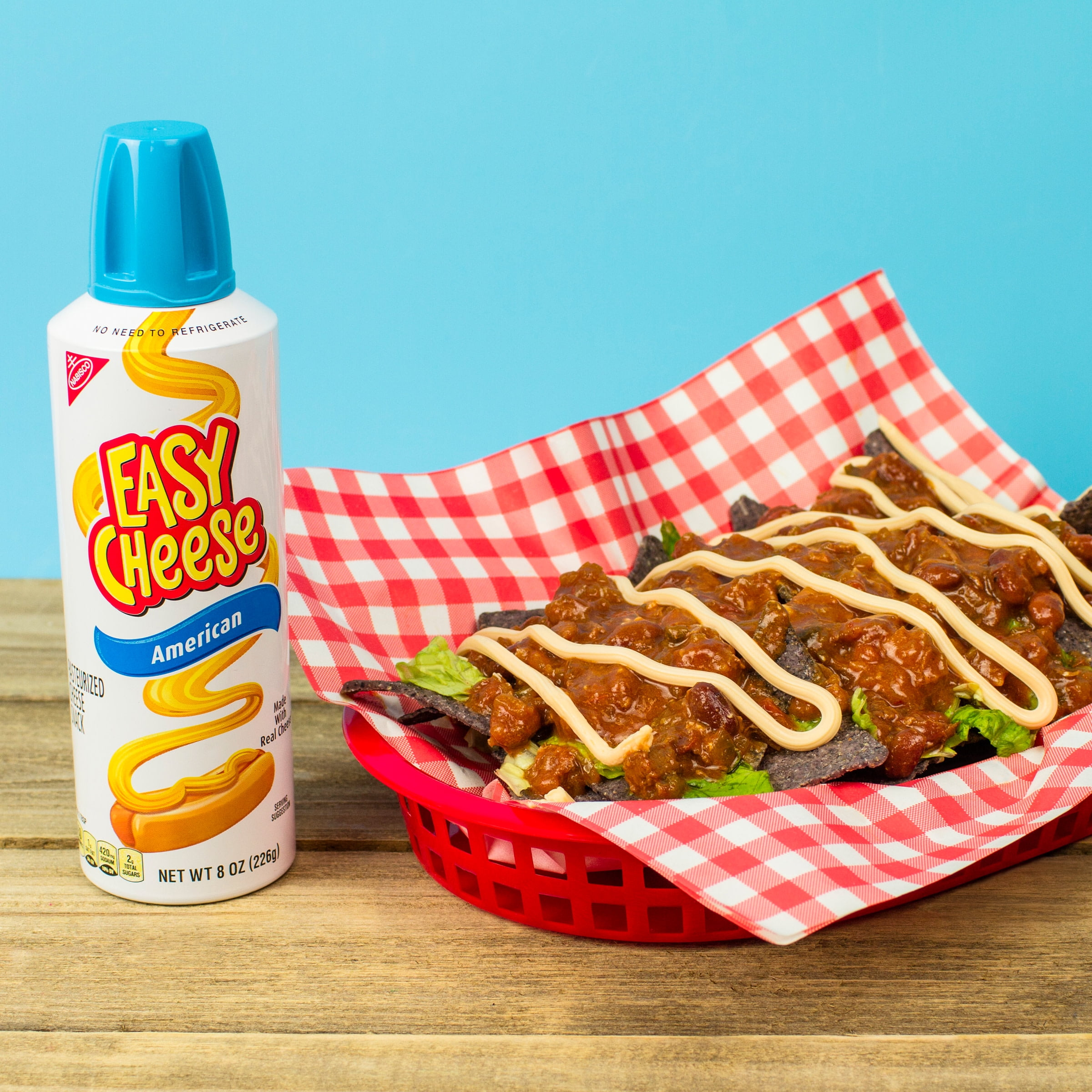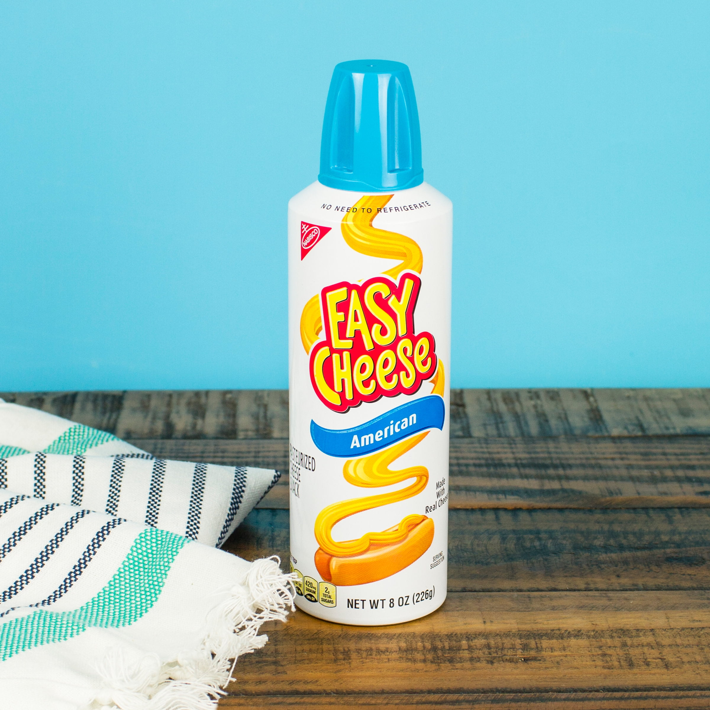 - One 8 oz can of Easy Cheese American Cheese Snack