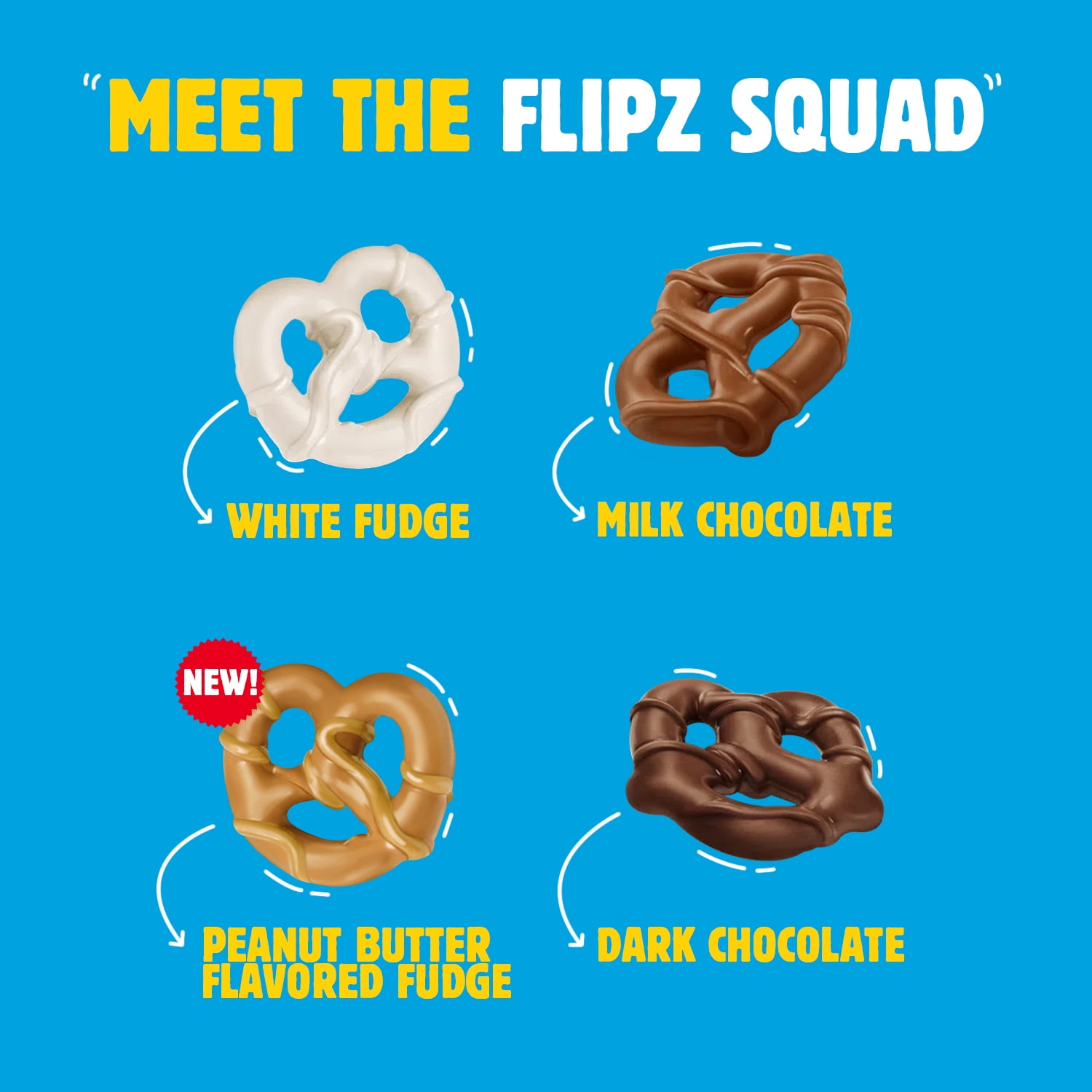 - What’s in a Flipz? Crunchy pretzel, a punch of salt, and smooth milk chocolate