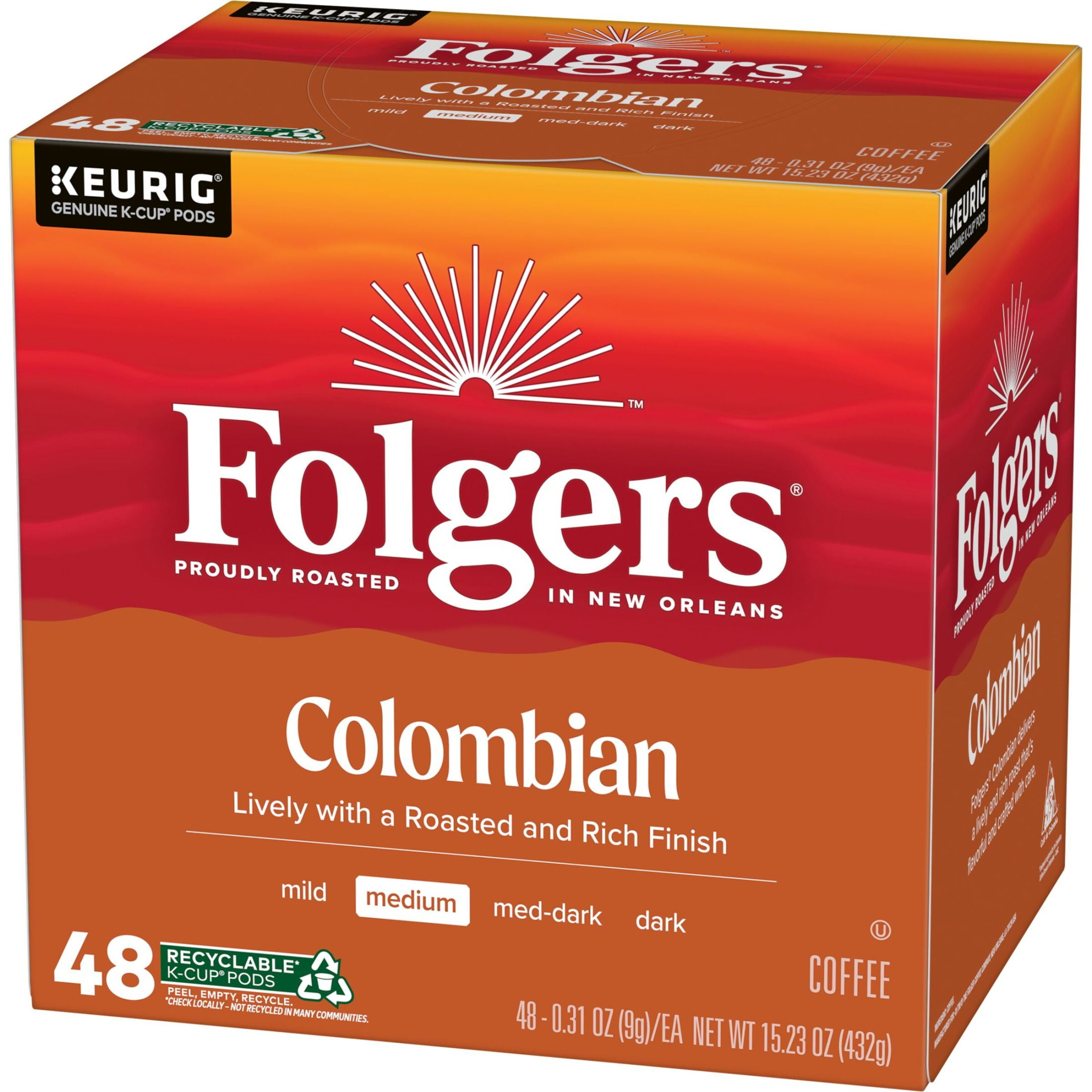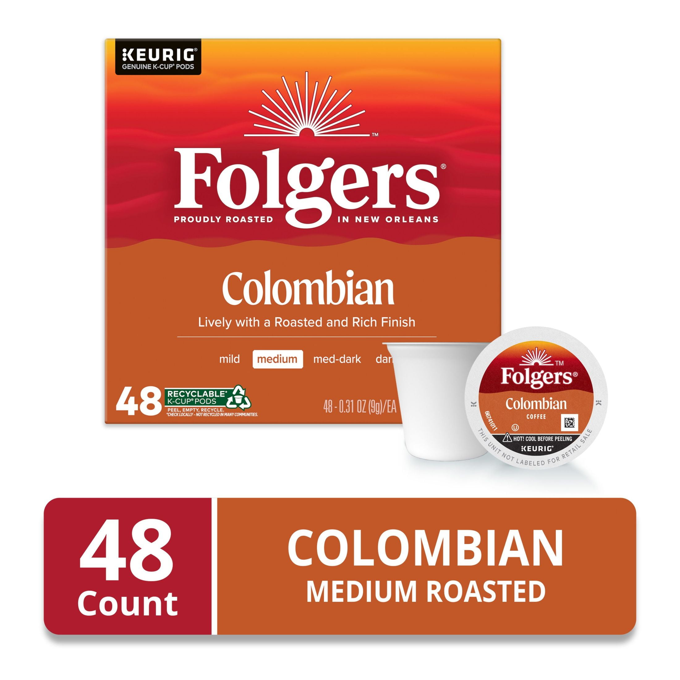 Folgers Colombian Coffee, Medium Roast, Keurig K Cup Pods, 48 count Box