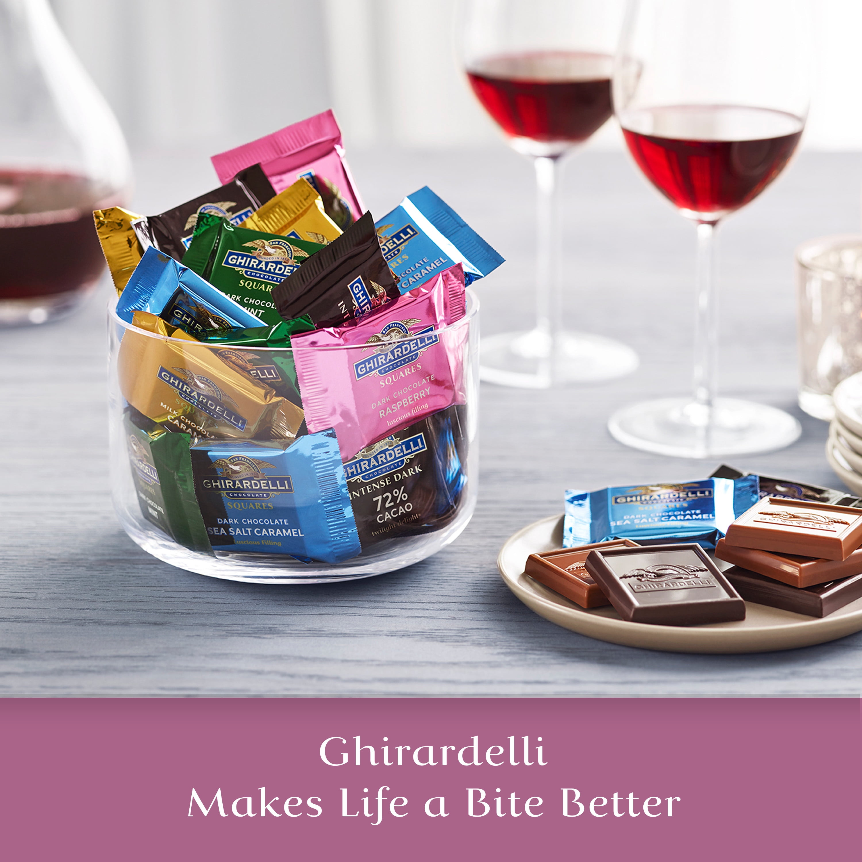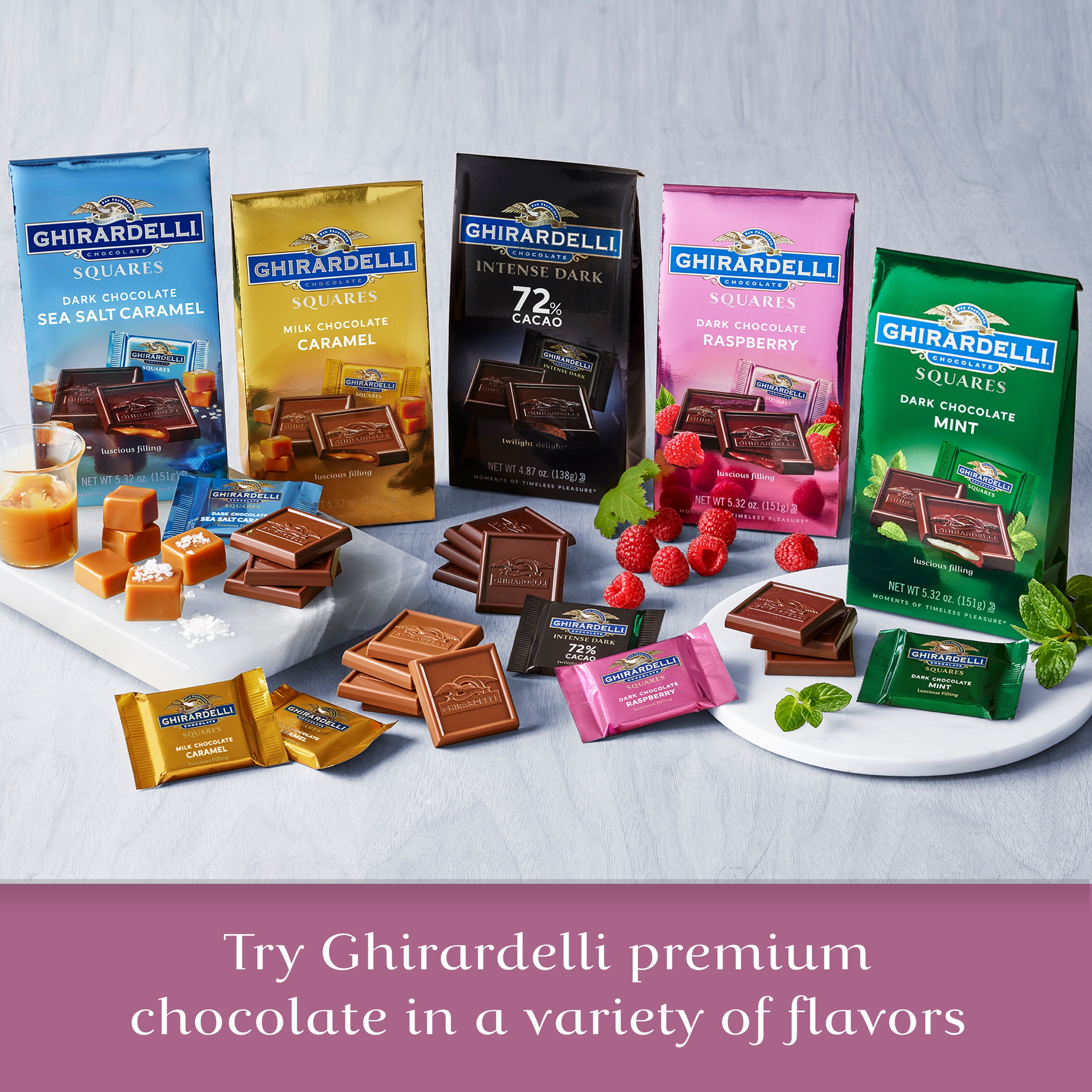 Slow down and savor the rich taste of GHIRARDELLI Dark Chocolate Raspberry squares. The perfect after-dinner treat or special gift, these raspberry chocolate squares make any part of your day more delicious. Each dark chocolate square features delectable, luscious raspberry filling surrounded by rich dark chocolate. These individually wrapped chocolate squares are the perfect personal size indulgence for home, work and on the go. GHIRARDELLI chocolate is crafted with care using high quality ingredients for a smooth, slow-melting, dark chocolate raspberry treat. GHIRARDELLI Makes Life a Bite Better.In addition to Dark Chocolate Raspberry, GHIRARDELLI squares are available in other delectable flavors, including Dark Chocolate Sea Salt Caramel, Dark Chocolate Mint and more. All GHIRARDELLI chocolate is sustainably sourced, ensuring the highest quality from bean to final product.