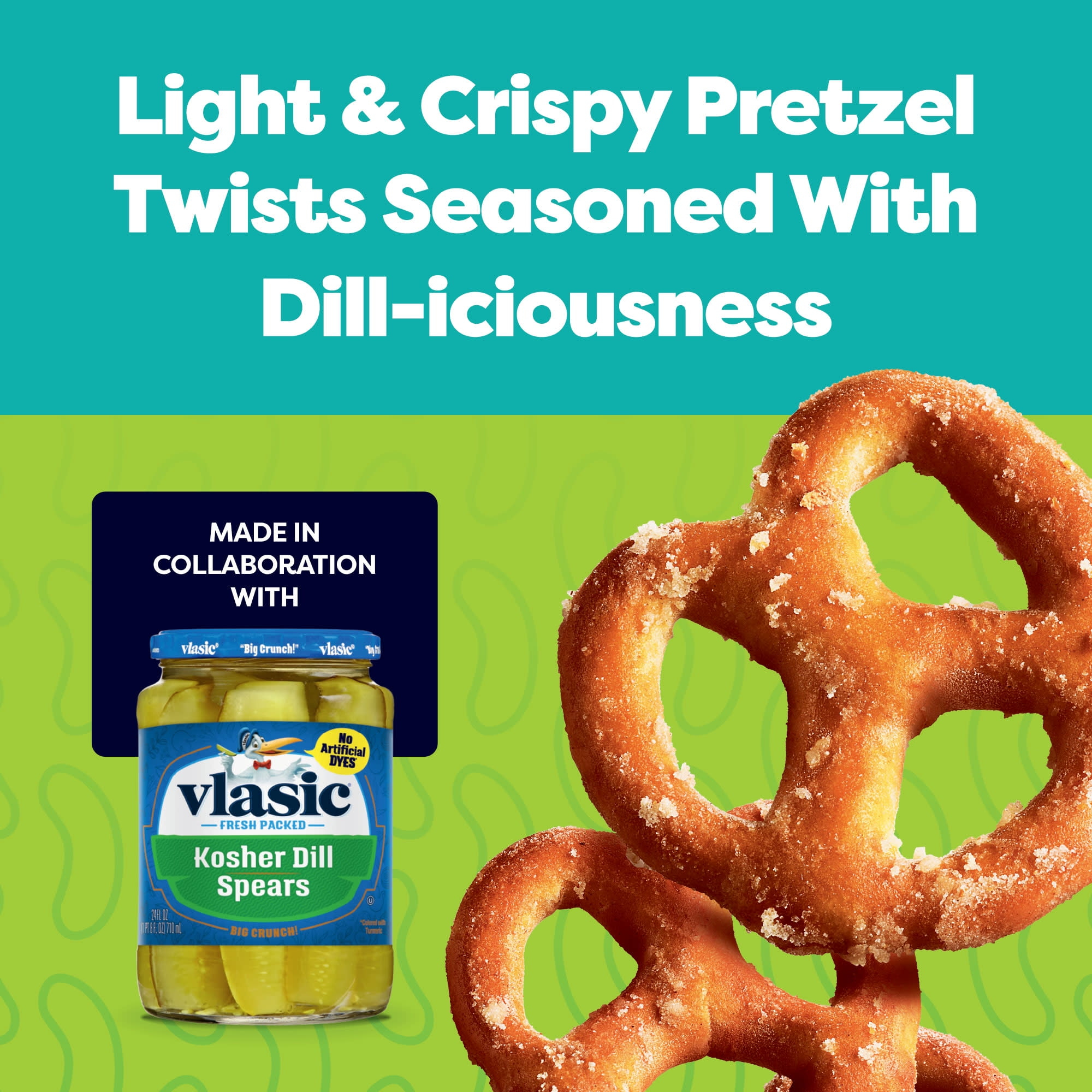 - Enjoy toasty pretzel twists bursting with the bold and zesty Vlasic dill pickle flavor you love without the gluten