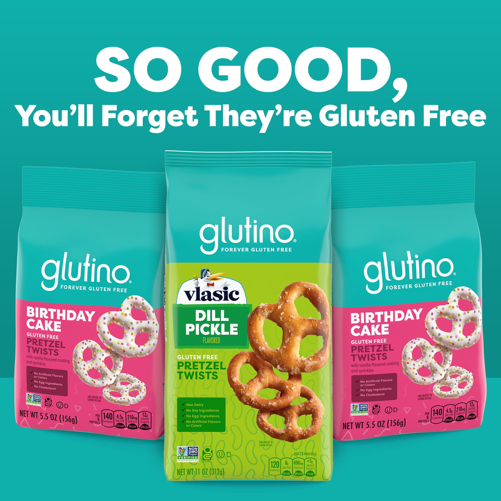 - One 11 oz. bag of Glutino Vlasic Gluten Free Dill Pickle Pretzel Twists, Gluten Free Snacks