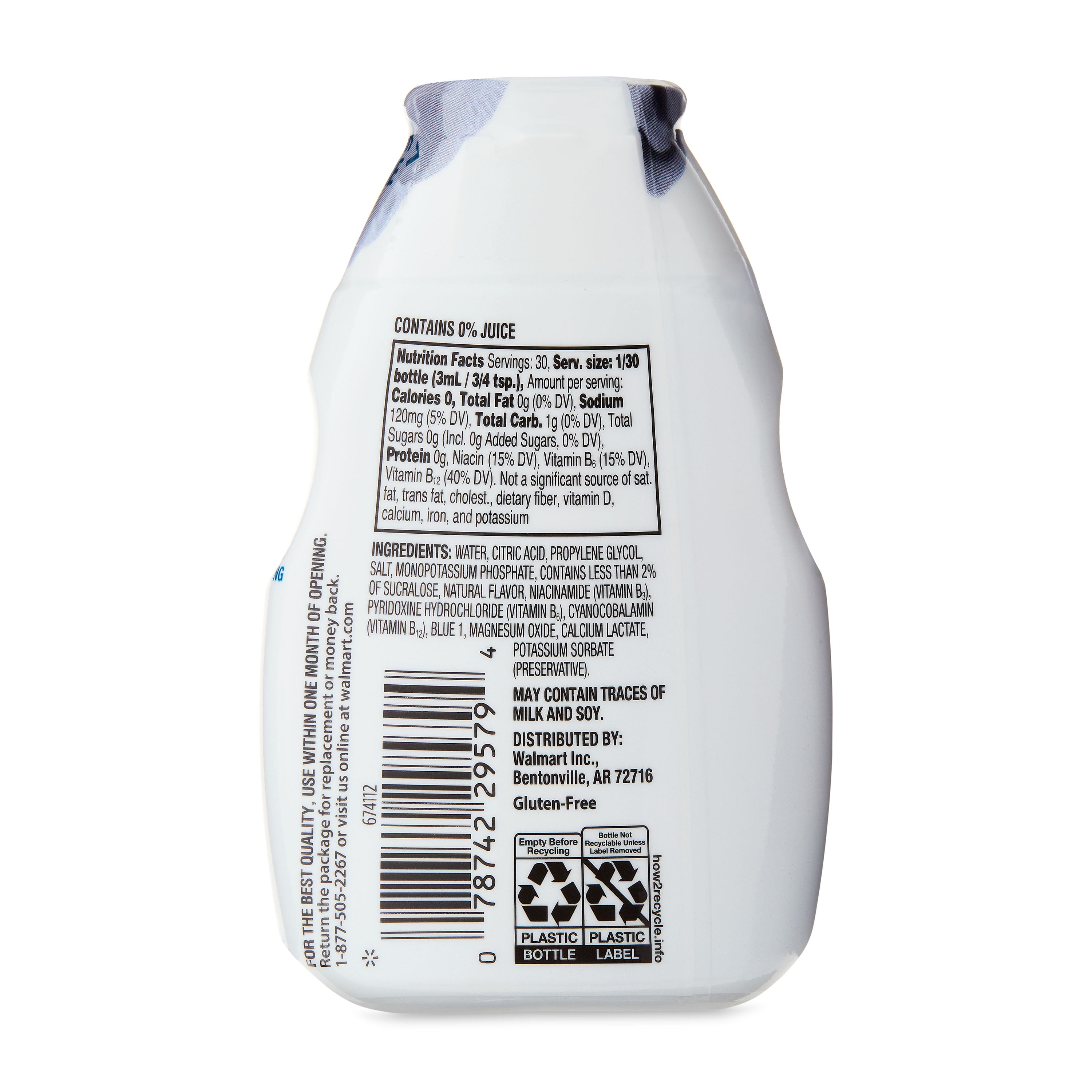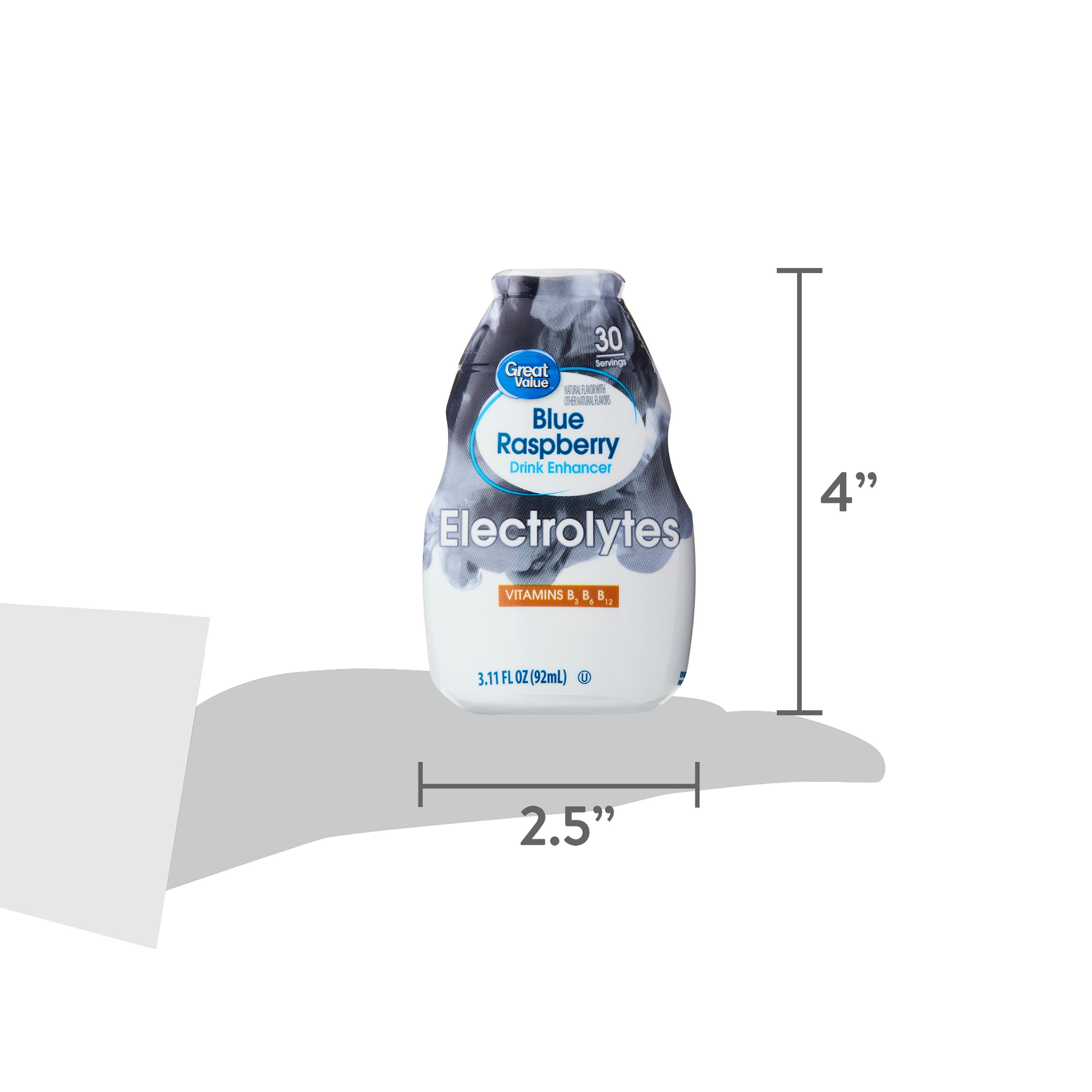 >Great Value Blue Raspberry Drink Enhancer delivers a burst of delicious blue raspberry in every sip. This drink enhancer makes it easy to enjoy a naturally flavored beverage at home, in the office or on the go. It is great for health-conscious individuals as it contains with natural flavors. It also offers nutritional benefits as it is a good source of B vitamins. This drink enhancer contains 46 servings per container and comes in a convenient, easy-squeeze bottle that fits easily in purses, backpacks, and bags. Just add to water to make this flavorful beverage come to life, or you can add it to your favorite mixed drinks for a burst of flavor. Quench your thirst with the refreshing taste of Great Value Blue Raspberry Drink Enhancer.