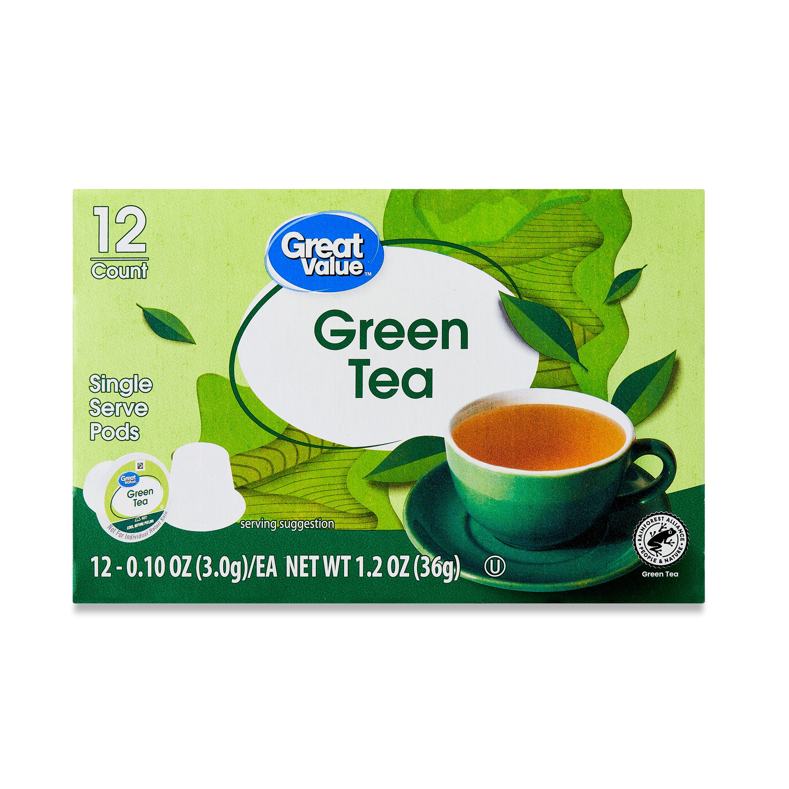 Great Value Green Tea makes simply delicious tea that you can enjoy any time of day. Our refreshing, clean-tasting, and light-bodied green tea has a smooth, mellow flavor, a natural aroma, and healthy antioxidants in every sip.