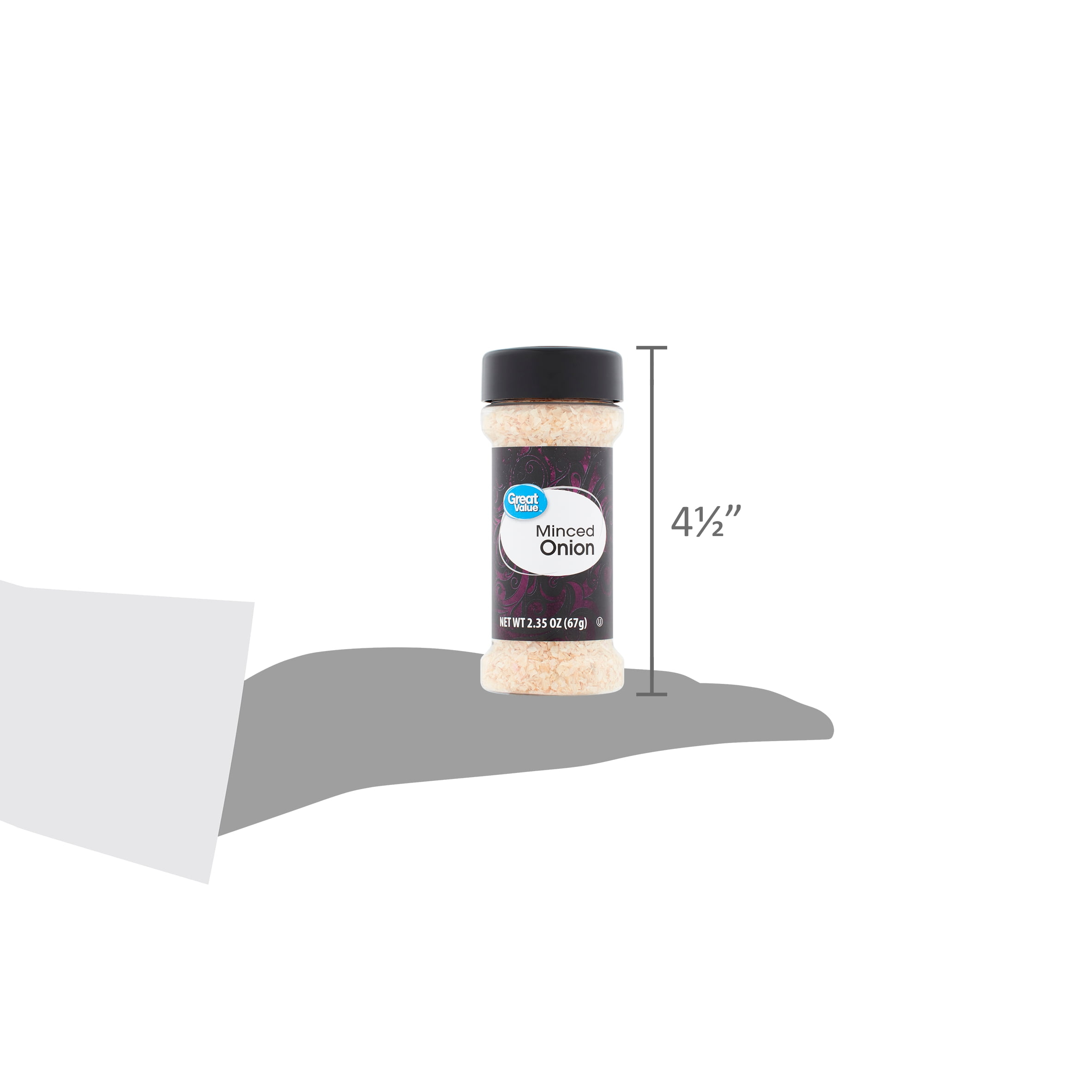 Great Value Minced Onion is a premium kitchen staple that has a place in every spice rack. It immediately adds a sharp white onion flavor to recipes with no prep time. Instead of spending time peeling and chopping onions, you can focus more of your kitchen time on other recipe steps. This spice is gluten-free, allowing you to use it in a wide array of dishes that will fit your family’s dietary restrictions. Minced onion flakes are the perfect addition to any recipe that needs a bold taste. Bland soups, stews, egg dishes, and rice recipes all get a tasty boost with each use. Pair this bold spice with other delicious seasonings like garlic salt and chili powder to add depth of flavor to your recipes. The convenient 2.3-ounce bottle allows you to control the portion and makes cooking easy. Great Value Minced Onion is a must-have spice in the kitchen.Great Value products provide families with affordable, high quality grocery and household consumable options. With our wide range of product categories spanning grocery and household consumables, we offer you a variety of products for your family’s needs.