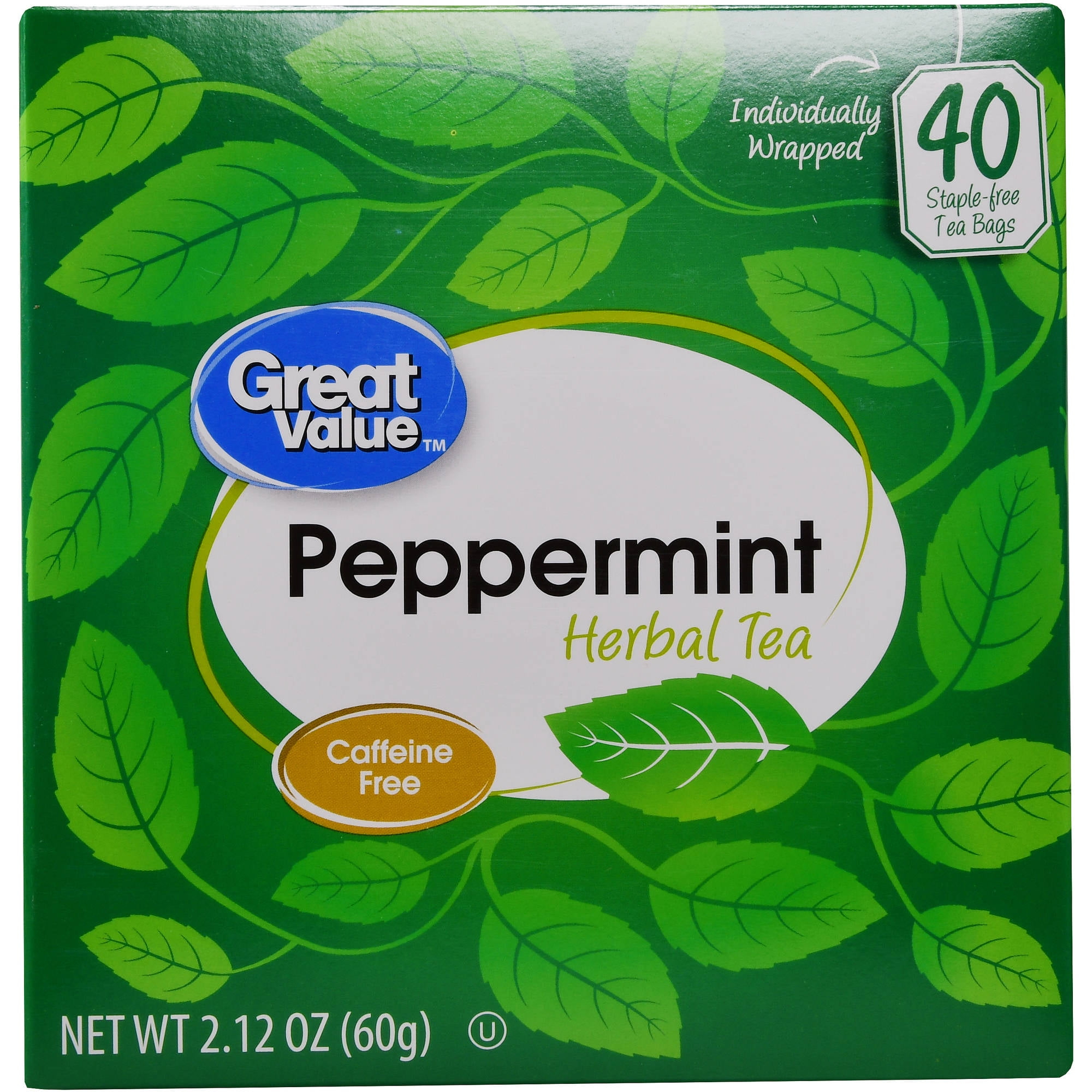 Great Value Peppermint Herbal Tea Bags, 2.12 oz, 40 Count