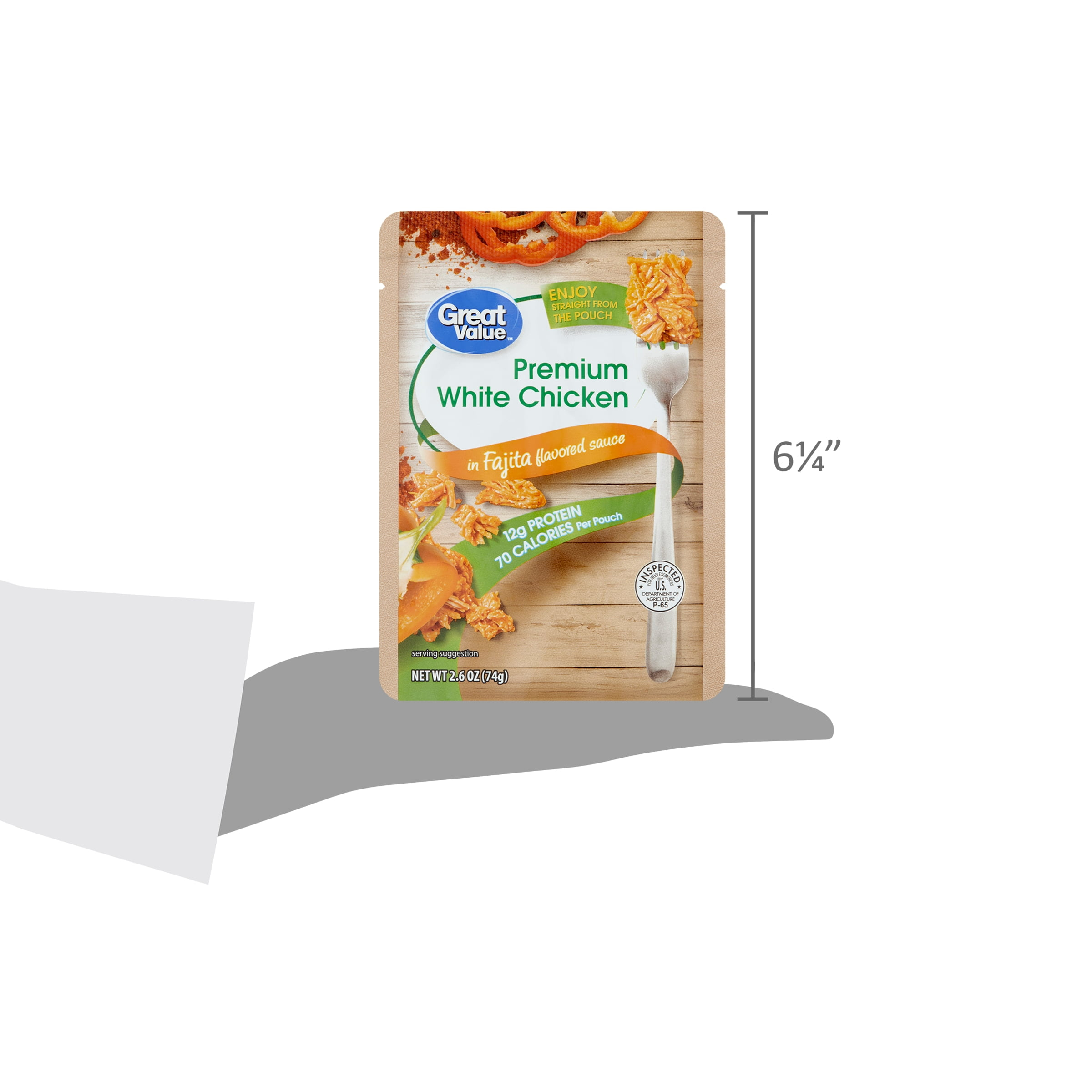 - Great Value Premium White Chicken in Fajita Flavored Sauce, 2.6 oz (74g)