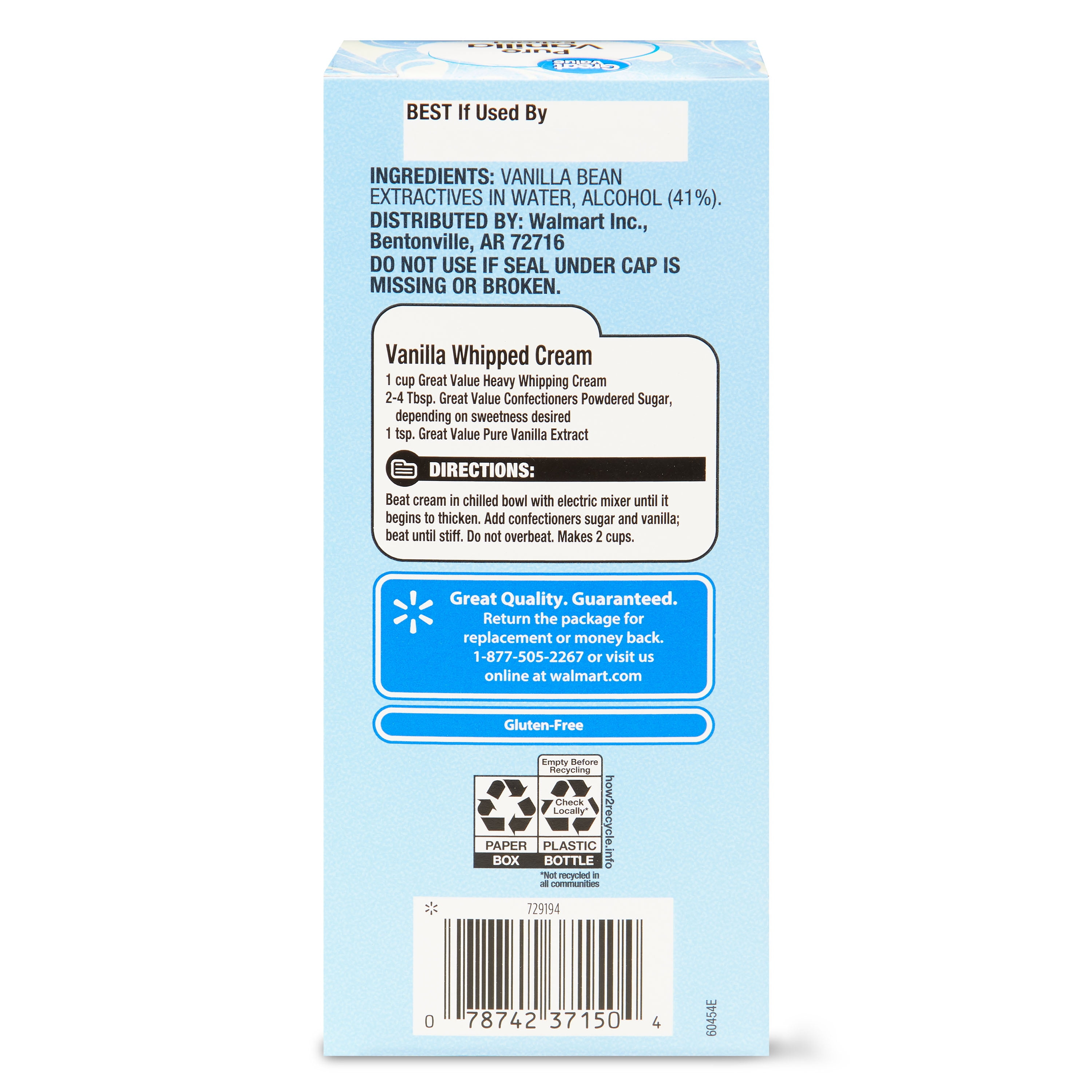 Taste the incredible, flavorful difference in your dishes when you add a few drops of Great Value Pure Vanilla Extract (Plastic Container). Vanilla extract is an excellent flavor enhancer for both sweet and savory recipes and a pantry staple that every home chef should have on hand. Use this versatile ingredient in your holiday baking for delicious pies, muffins, and pastries, or add to fruit-based salad dressings and marinades to enhance their sweetness. You can even use vanilla extract in recipes for white fish and balsamic chicken, for a unique twist on traditional flavor combinations. Vanilla extract does more than just enhance the flavors in your recipes – vanillin, the ingredient in vanilla extract that gives it its rich aroma, is a natural antioxidant, may reduce inflammation, and may even lower cholesterol. With our wide range of product categories spanning grocery and household consumables, we offer you a variety of products for your family’s needs. Our products are conveniently available online and in Walmart stores nationwide, allowing you to stock up and save money at the same time.