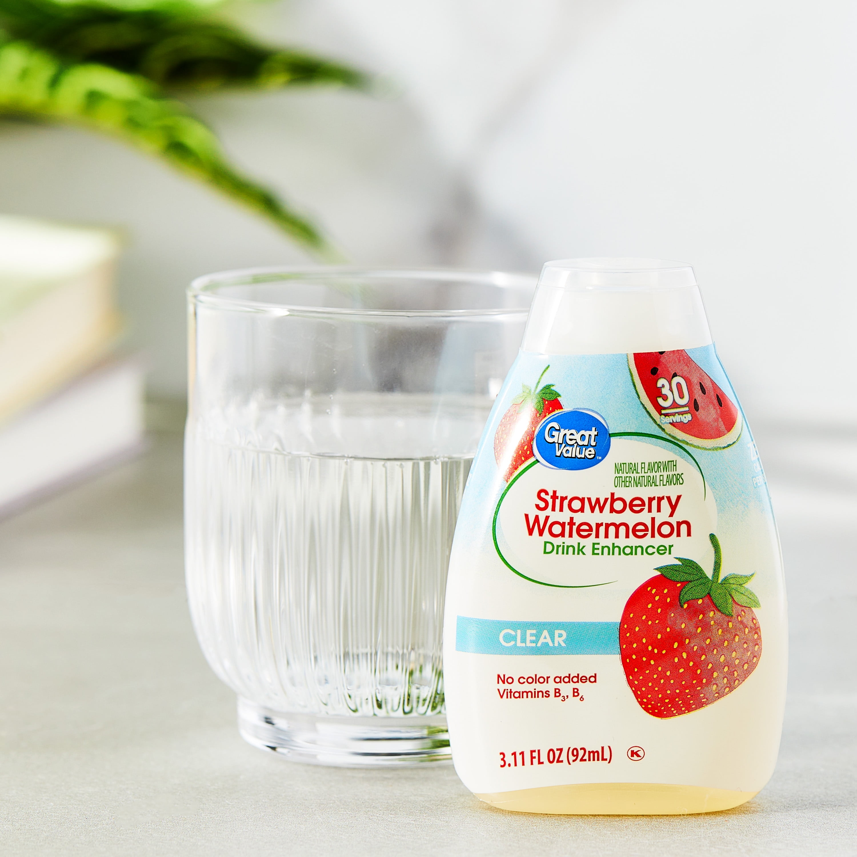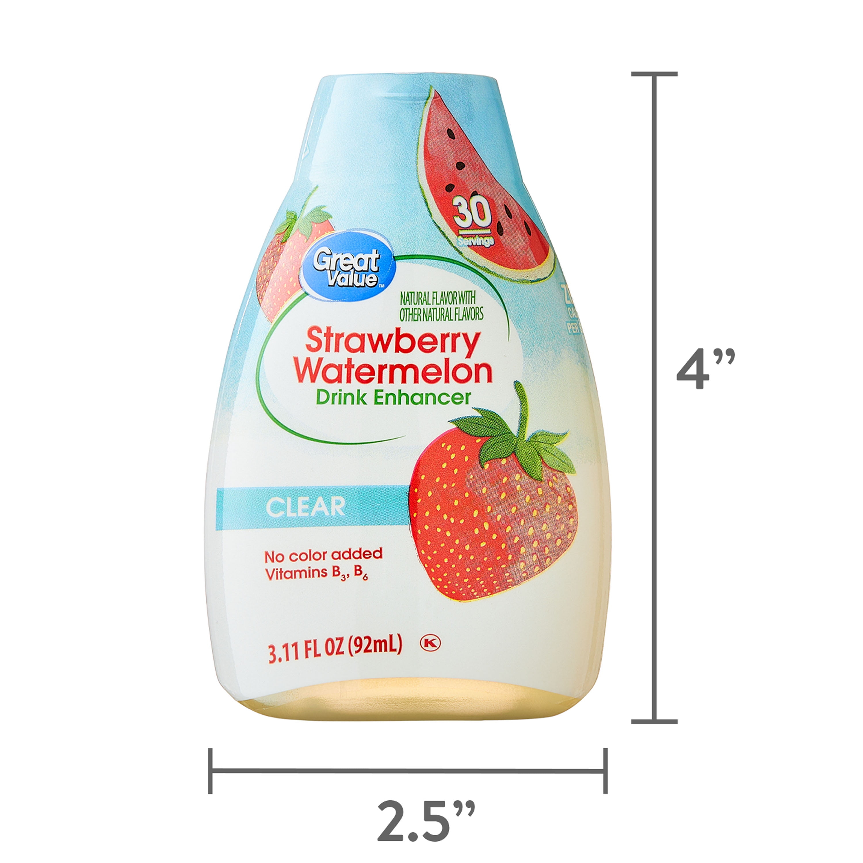 Brighten your day with the sweet, juicy flavors of strawberry and watermelon with Great Value Simply Clear Strawberry Watermelon Liquid Drink Enhancer. Whether you’re at home, at work, on the go, or at the gym, staying hydrated will be a treat with this delicious flavor enhancement. Just squeeze, shake or stir, and enjoy. This convenient 3.11-fluid ounce bottle provides 46 servings and doesn’t need refrigeration. Plus, it’s sugar and calorie free! Making sure you drink enough water is easy with Great Value Simply Clear Strawberry Watermelon Liquid Drink Enhancer. Great Value products provide families with affordable, high quality grocery and household consumable options. With our wide range of product categories spanning grocery and household consumables, we offer you a variety of products for your family’s needs. Our products are conveniently available online and in Walmart stores nationwide, allowing you to stock up and save money at the same time.