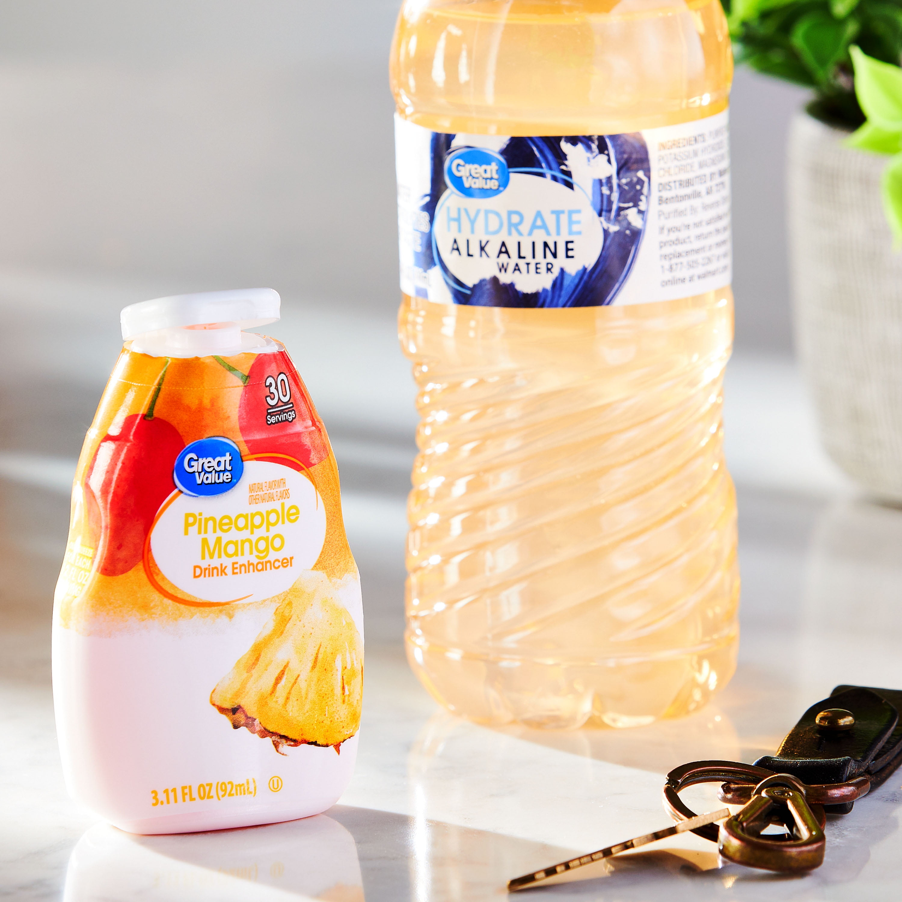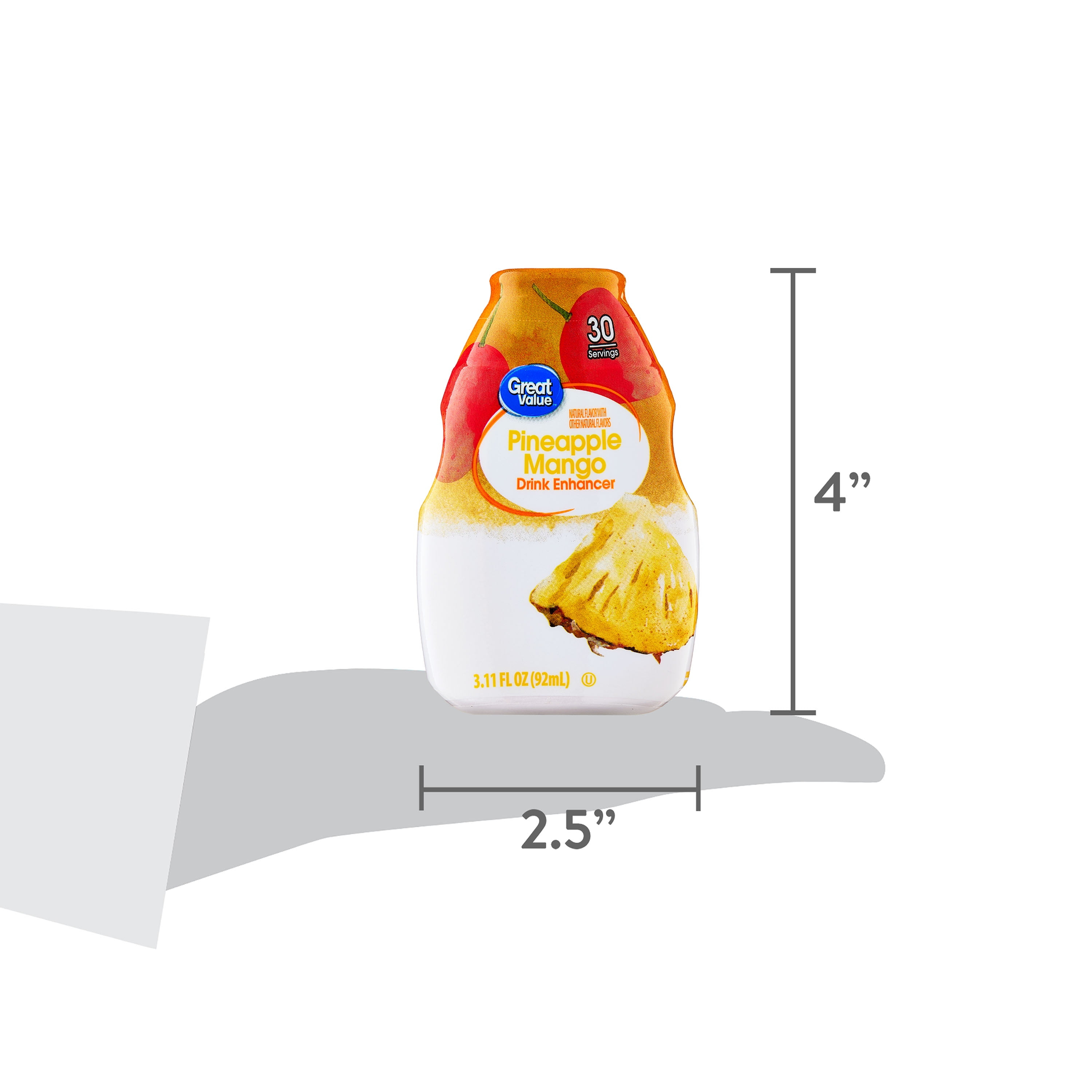 Take a trip to the islands with the breezy tropical flavor of Great Value Tropical Pineapple Mango Drink Enhancer. Drinking enough water is a treat rather than a chore with this delightful, convenient flavor enhancement. Take the easy-squeeze bottle in the car, to the gym, to picnics, or to work; just squeeze the liquid into your glass or water bottle, stir or shake, and enjoy. It has zero calories and sugar, making it a smart alternative to soft drinks. Enjoy the exotic taste of the tropics with Great Value Tropical Pineapple Mango Drink Enhancer.