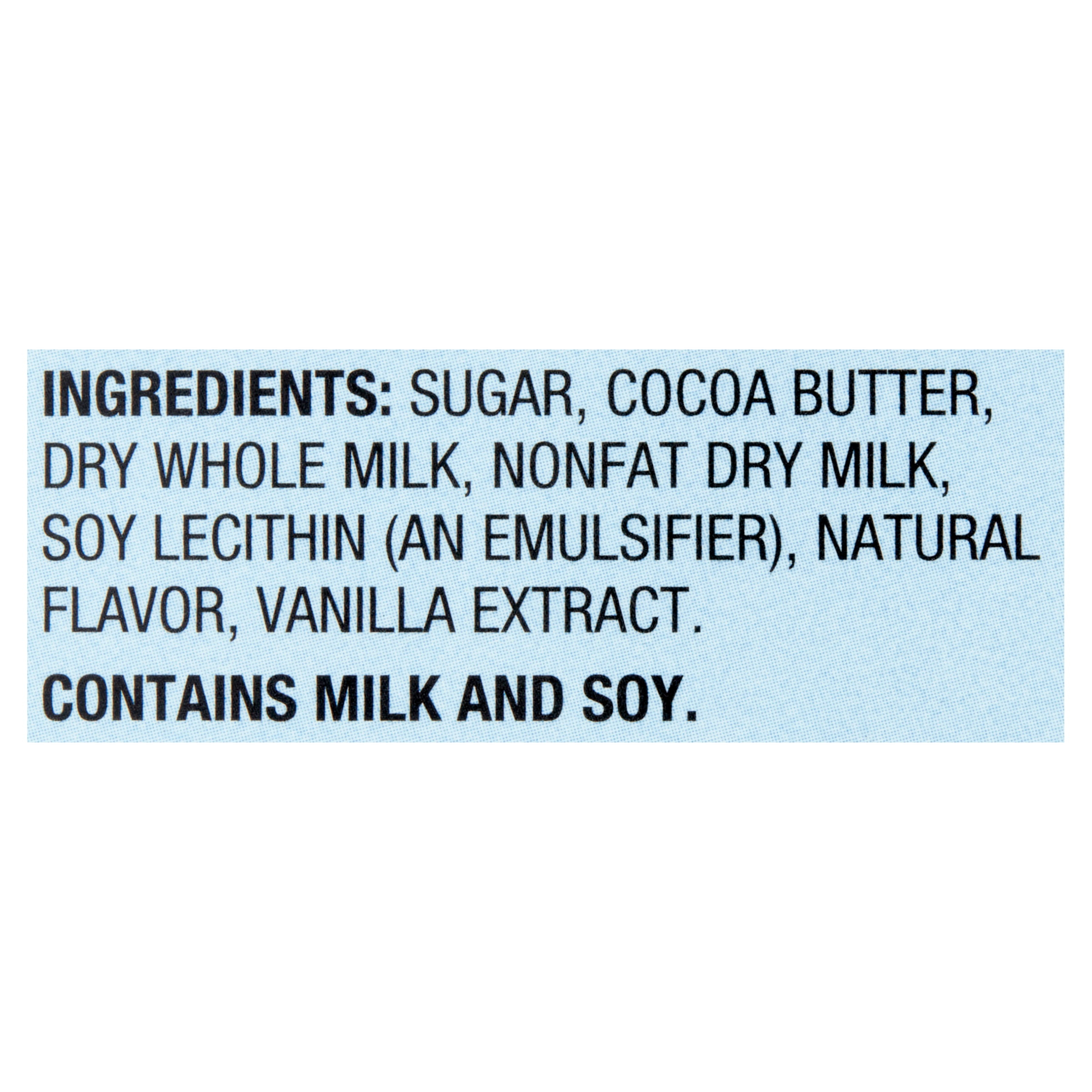 These have the same ingredients, in the same order, and taste the same as way more expensive Ghirardelli white chocolate bars. BTW, if you’re wavering whether to get bars or chips to bake with, get the bars! The chips, any brand, don’t have any cocoa butter, which is what makes it white chocolate and not just white melting crap. The bars work better in any application.