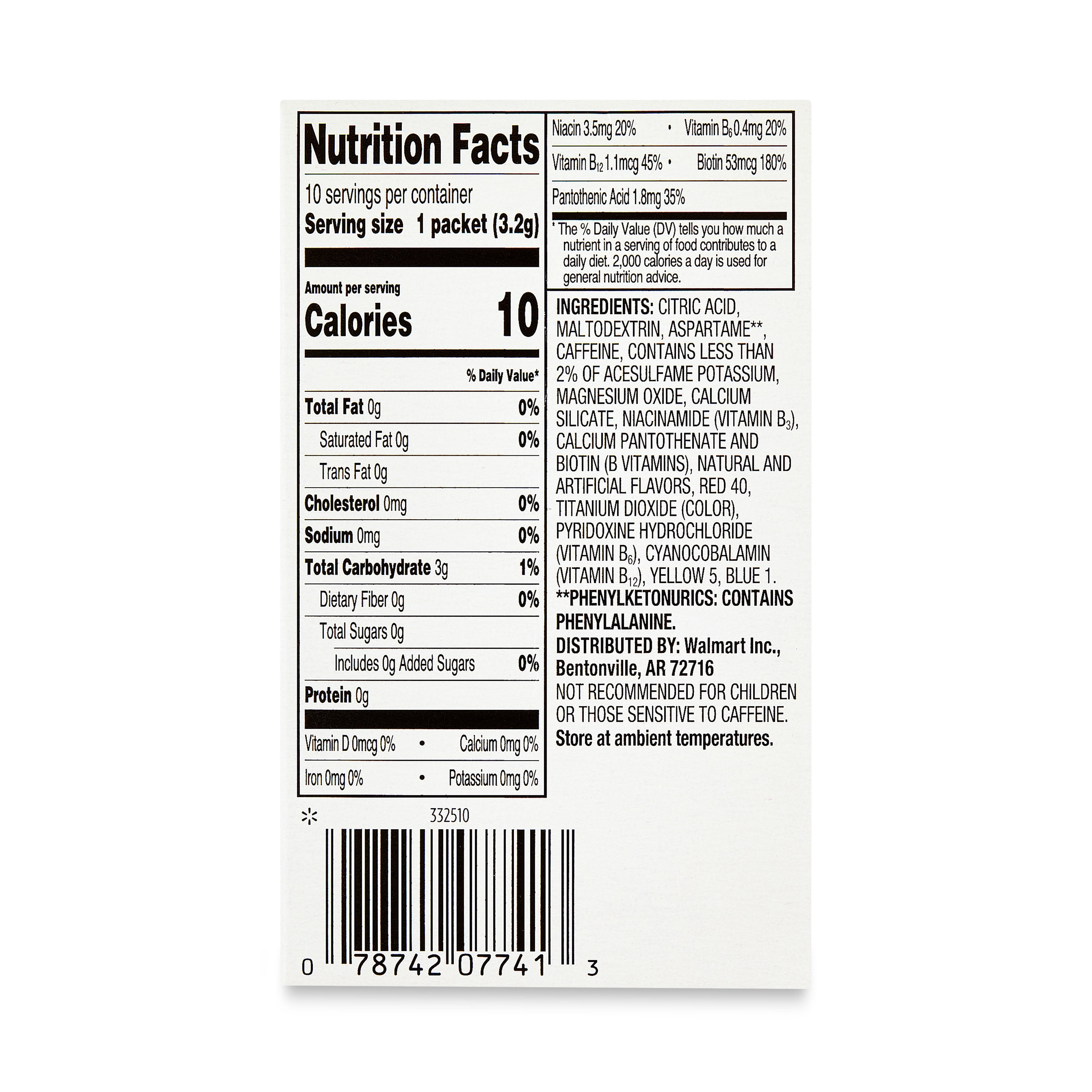 Great Value Sugar-Free Wild Strawberry Energy Drink Mix, 1.1 oz, 10 Count:
