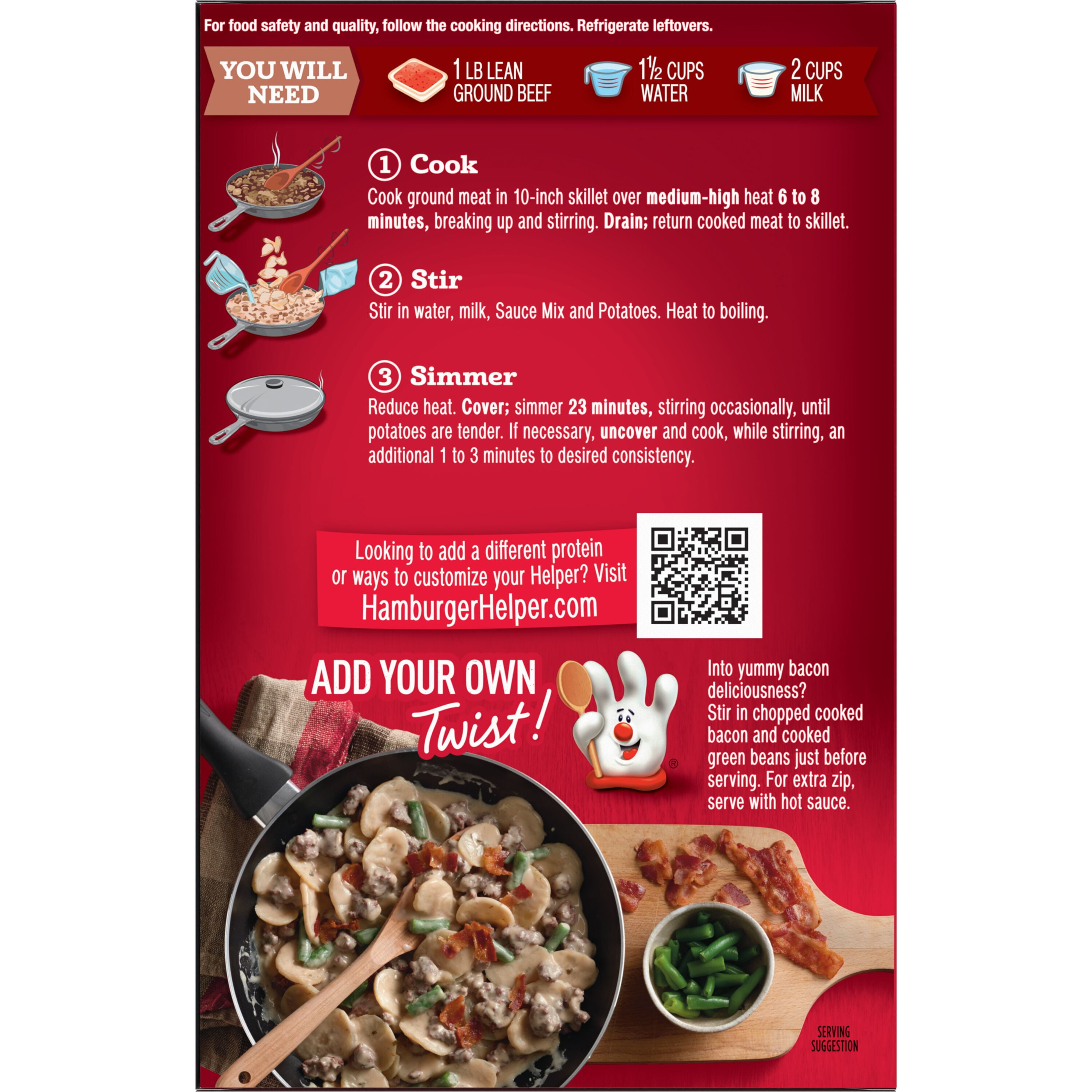 - Add your own twist! Visit Hamburger Helper.com for recipes the whole family will love.