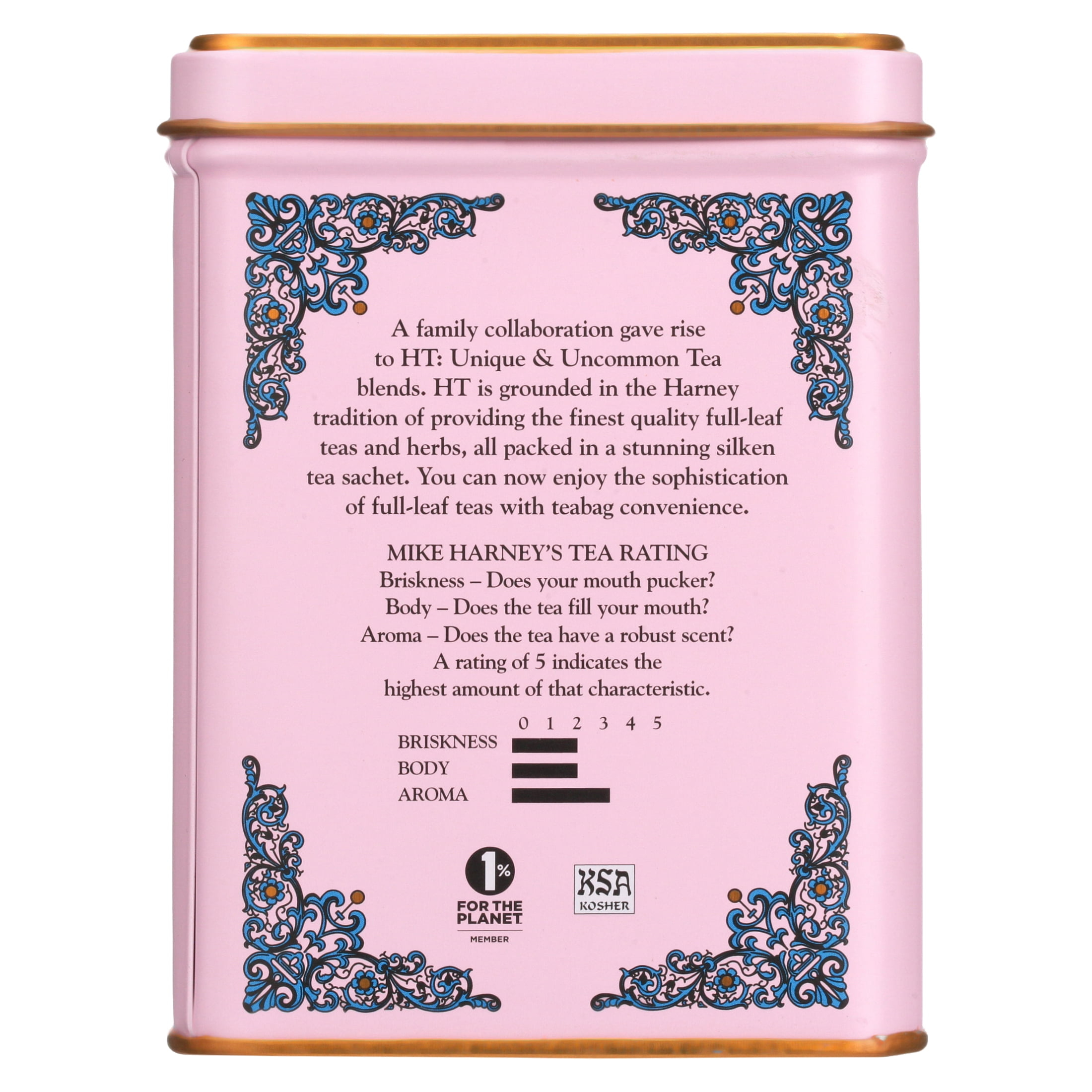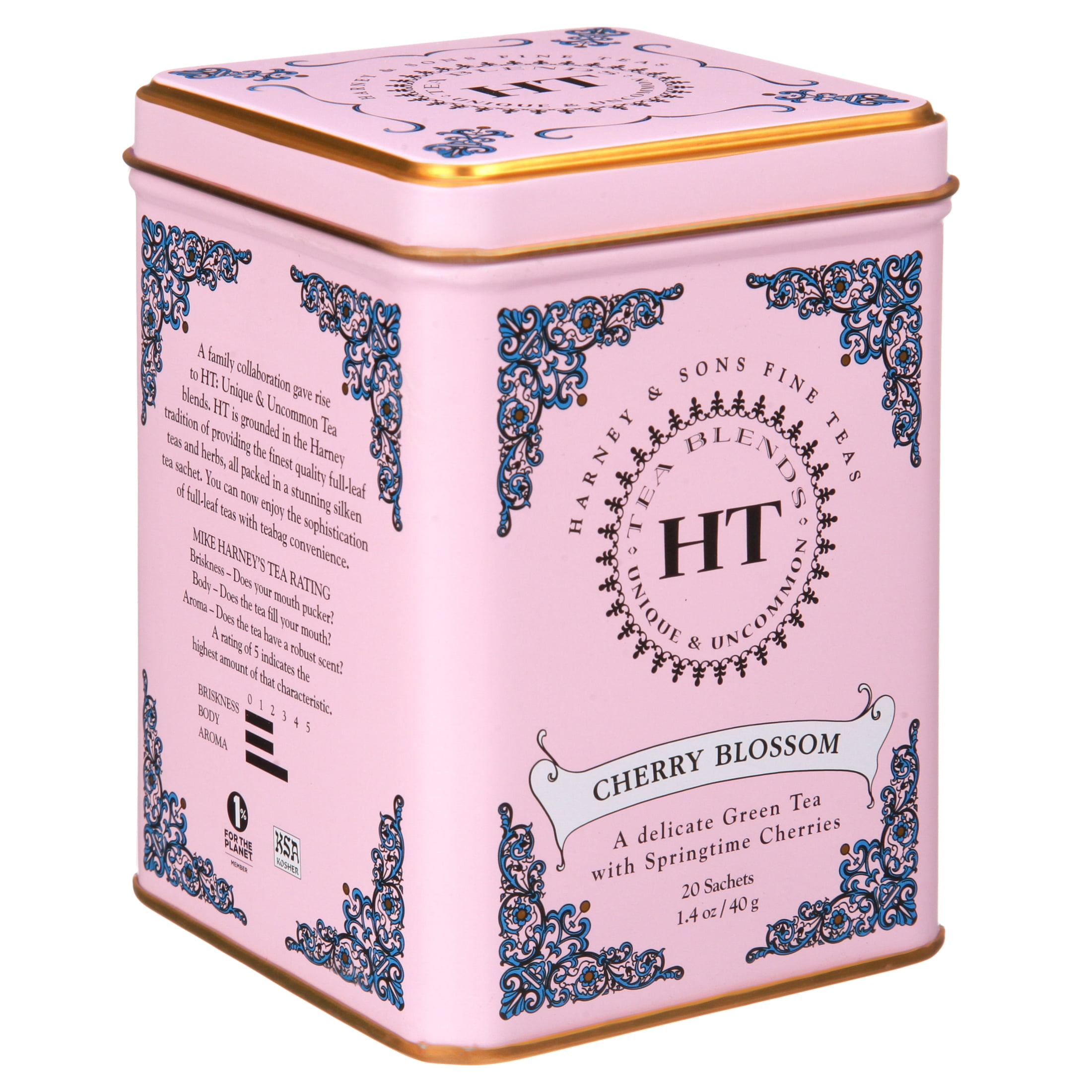 Harney & Sons Cherry Blossom Green Tea 20 Sachets 1.4 oz Tin Inspired by an April visit to Tokyo a few years ago, our Cherry Blossom tea combines refreshing, spring-like flavors of blended green teas with the juicy, bright flavors of fragrant cherries. A delicious way to awaken the senses, sip by sip. Tin of 20 sachets. Each sachet brews a 12 oz cup—perfect, if you ask us, for enjoying in the morning breeze. Caffeine content: 30-40 milligrams per sachet