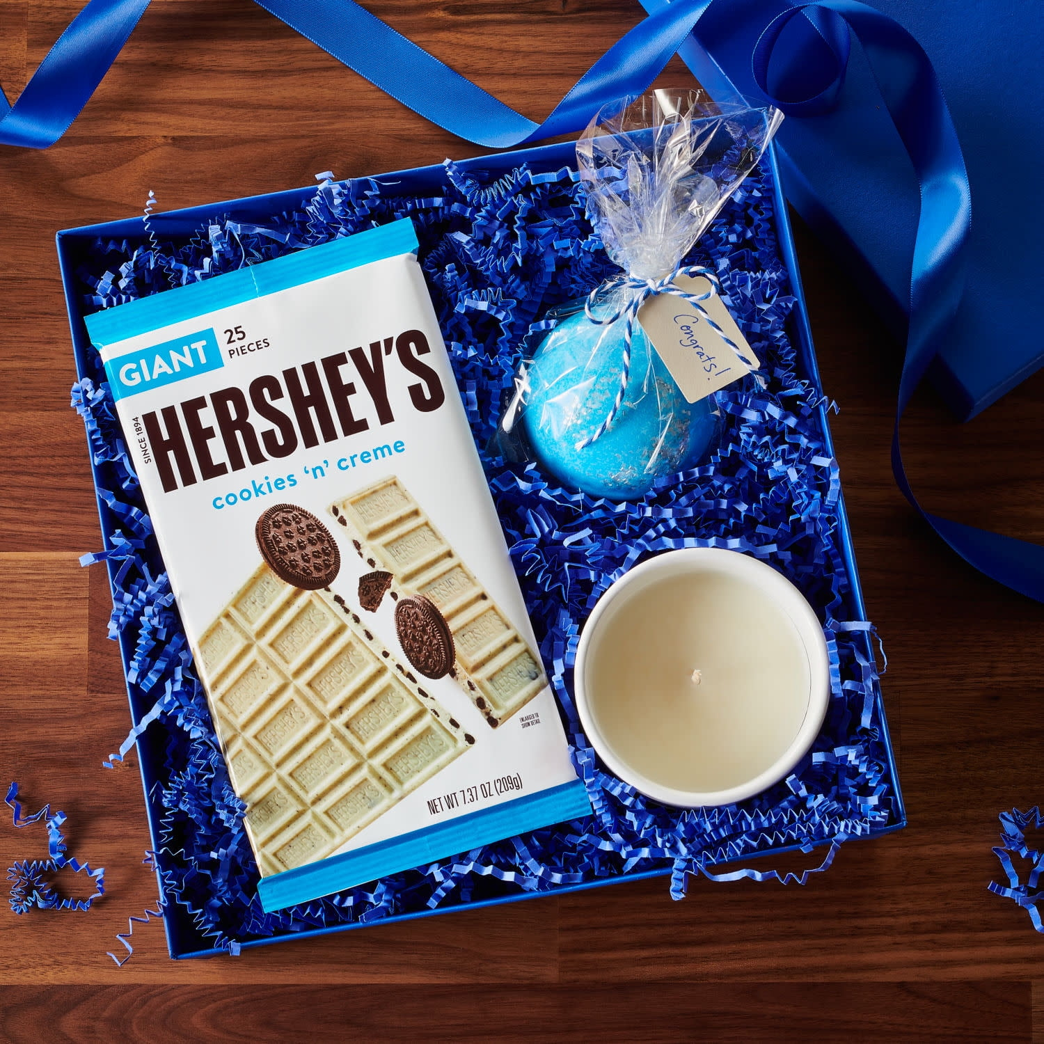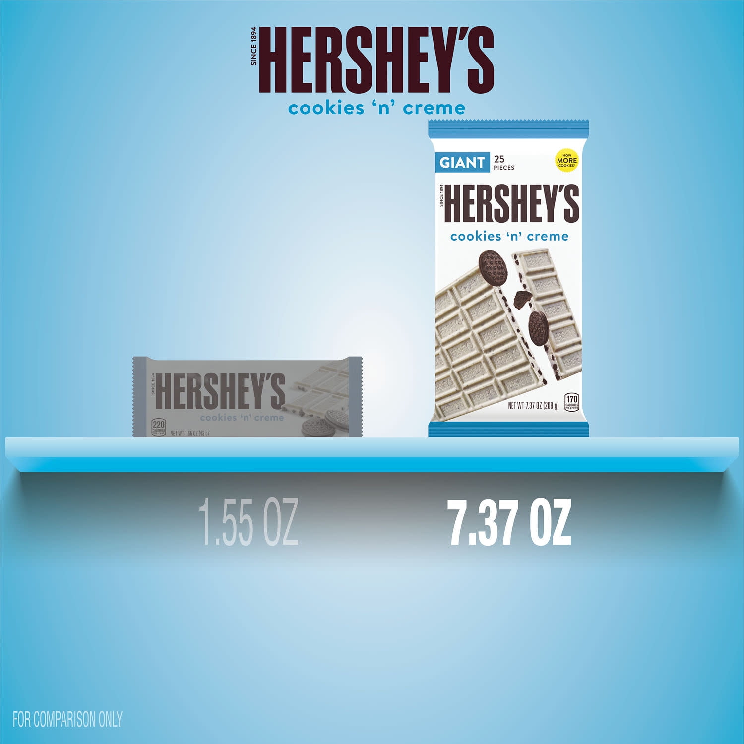 There’s happy, and then there’s HERSHEY’S happy. HERSHEY’S Cookies ‘n’ Creme candy bars make life more delicious whether they’re enjoyed alone or shared with loved ones. Delight your taste buds with two beloved flavors in one delectable treat. Crunchy chocolate cookie pieces combine with smooth white creme to offer delicious indulgence in every bite. This giant, kosher certified, individually wrapped candy bar offers a tasty twist on the classic HERSHEY’S candy bar, and it’s perfect for snacking moments throughout the day at home, at work and on the go.