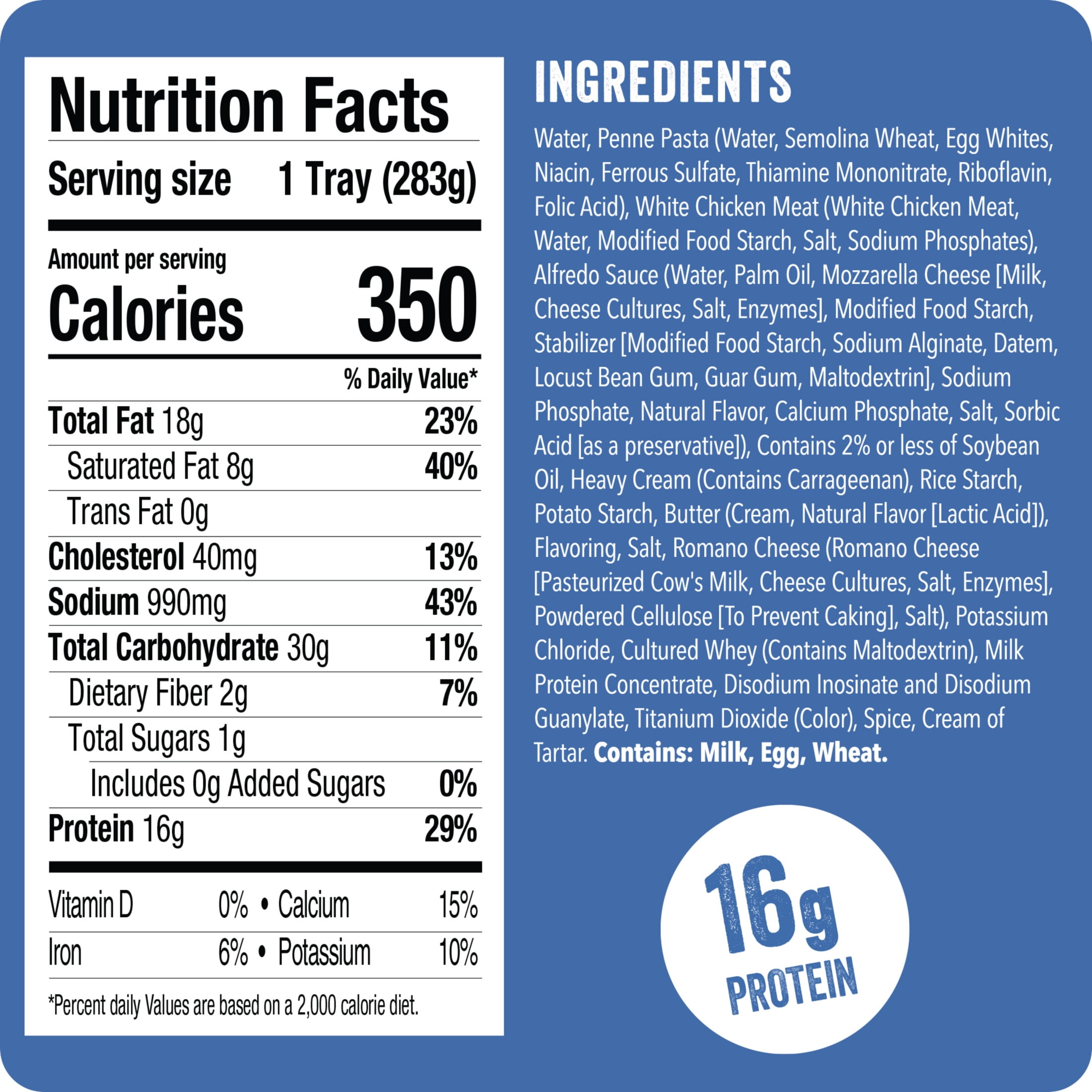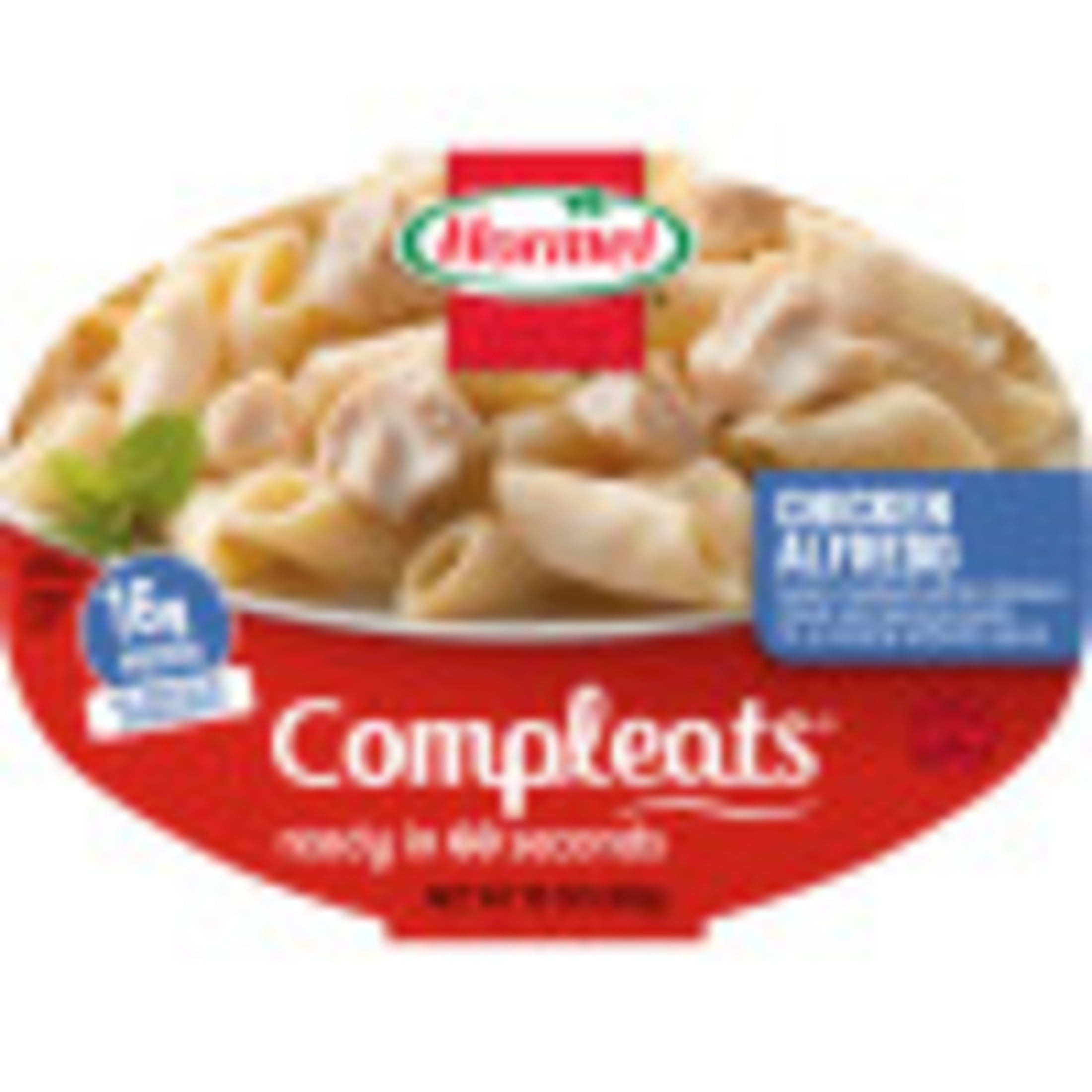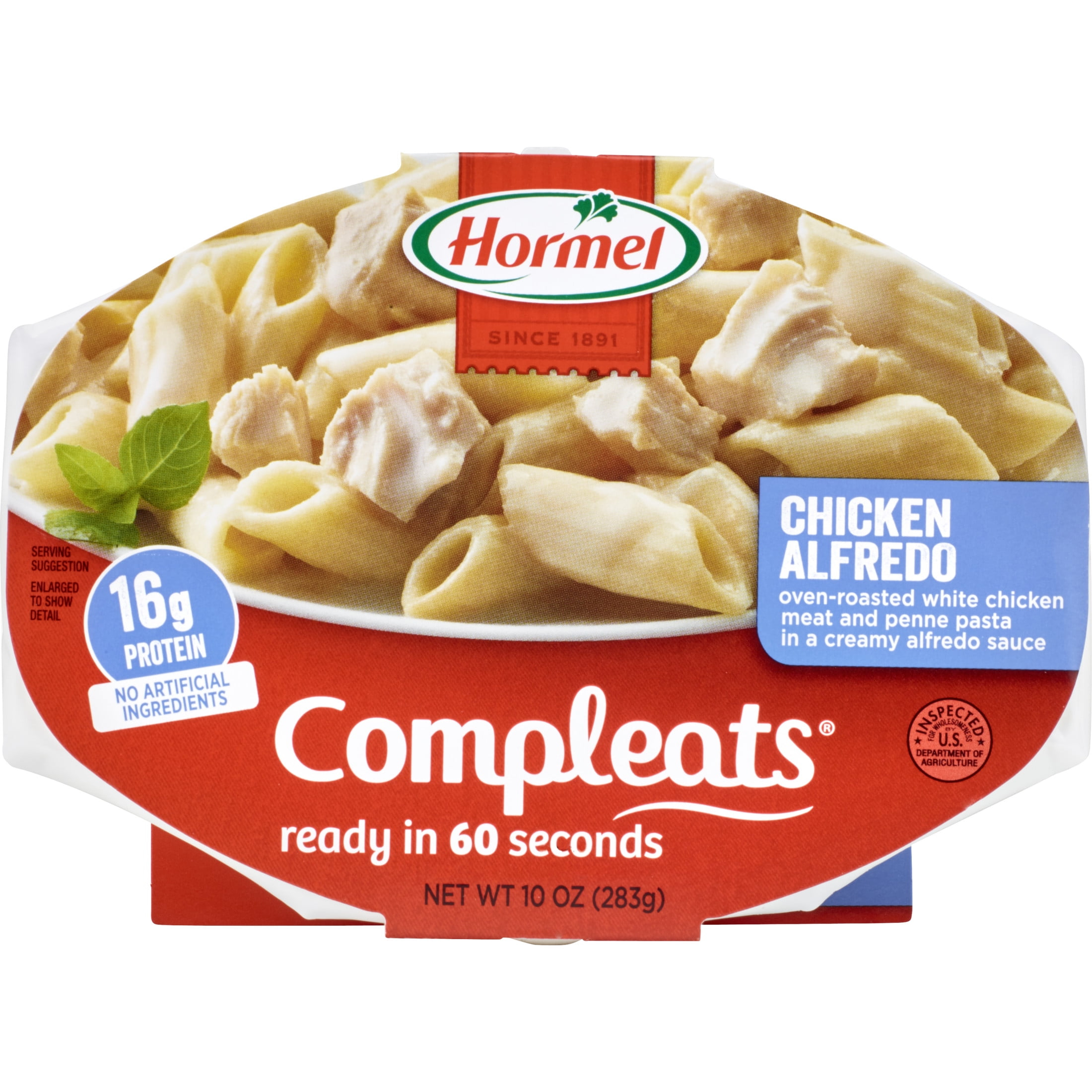 Real Food, Real Fast! HORMEL COMPLEATS Chicken Alfredo is comfort food ready in 60 seconds in the microwave. Made with oven-roasted white meat chicken and penne pasta in a creamy Alfredo sauce. Our microwave trays are shelf stable and go from shelf to table, no prep, no mess and no clean up! No fridge or freezer needed – keep it in your pantry! HORMEL COMPLEATS entrees are made with high quality ingredients and homestyle recipes. A convenient lunch or a dinner whenever hunger hits. It’s America’s #1 selling shelf stable tray*. With 16 grams of protein per serving and no artificial ingredients it’s sure to satisfy your appetite. Includes one 10 oz plastic microwaveable tray of HORMEL COMPLEATS Chicken Alfredo. *Based on last 52 weeks IRI data. All trademarks, logos, and images are owned by Hormel Foods Corporation, its subsidiaries and affiliates. Copyright Hormel Foods, LLC
