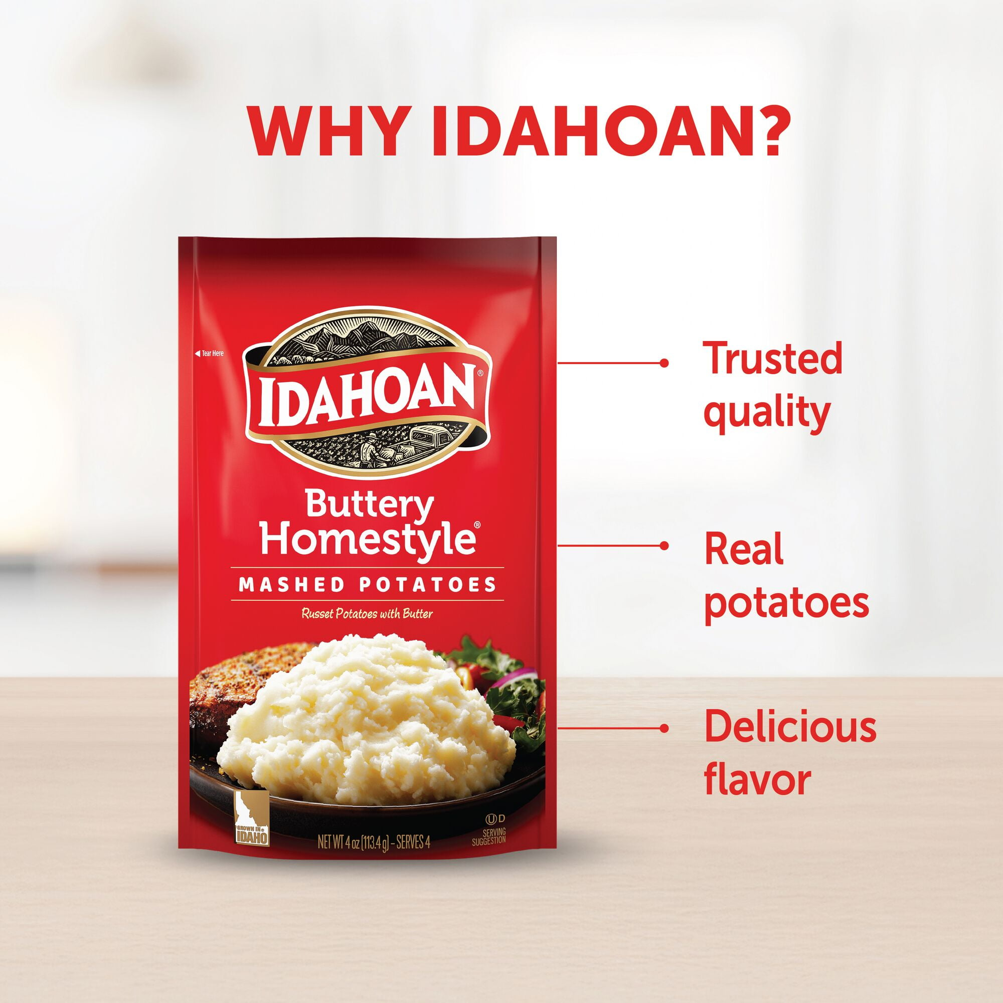 - Always a favorite, Idahoan Buttery Homestyle® Mashed Potatoes deserve a permanent place in your pantry