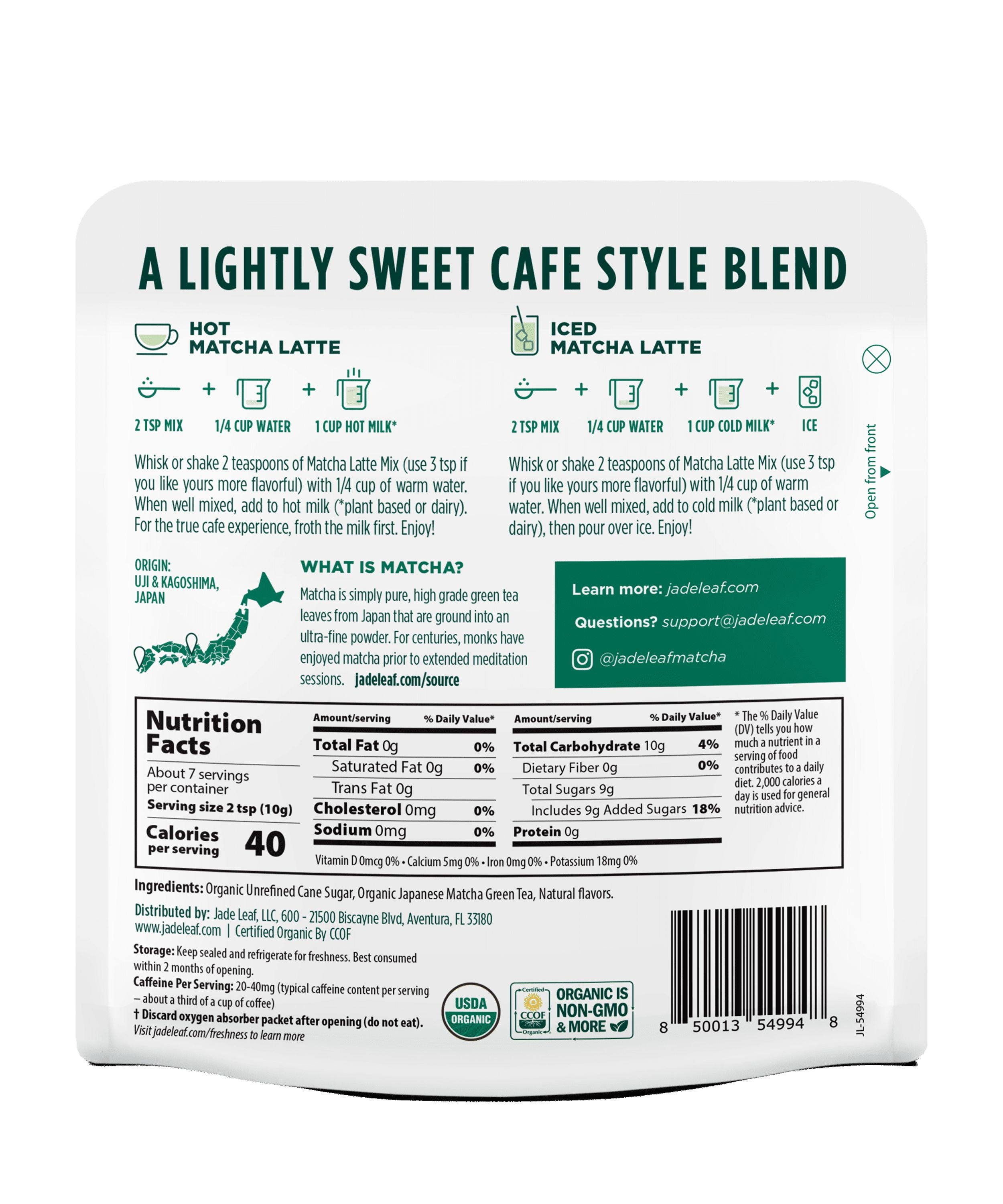 Jade Leaf Organic Matcha Latte Mix Vanilla (2.5oz)