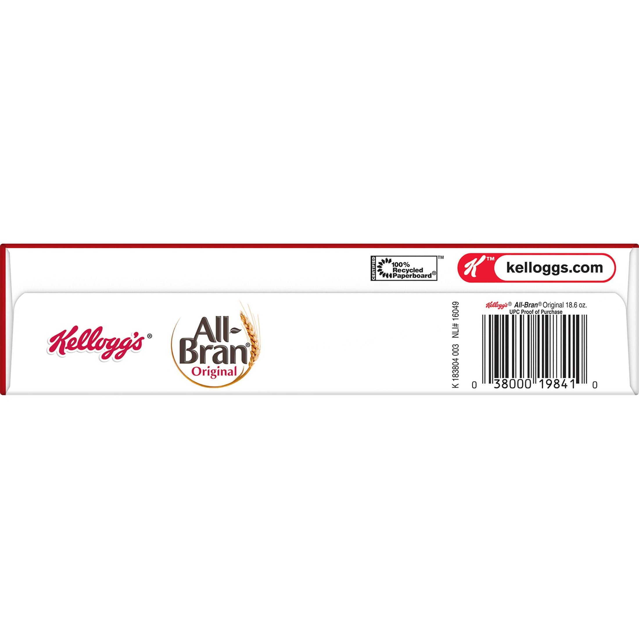 Kellogg’s All Bran Breakfast Cereal, 8 Vitamins and Minerals, High Fiber Cereal, Original, 18.6oz Box