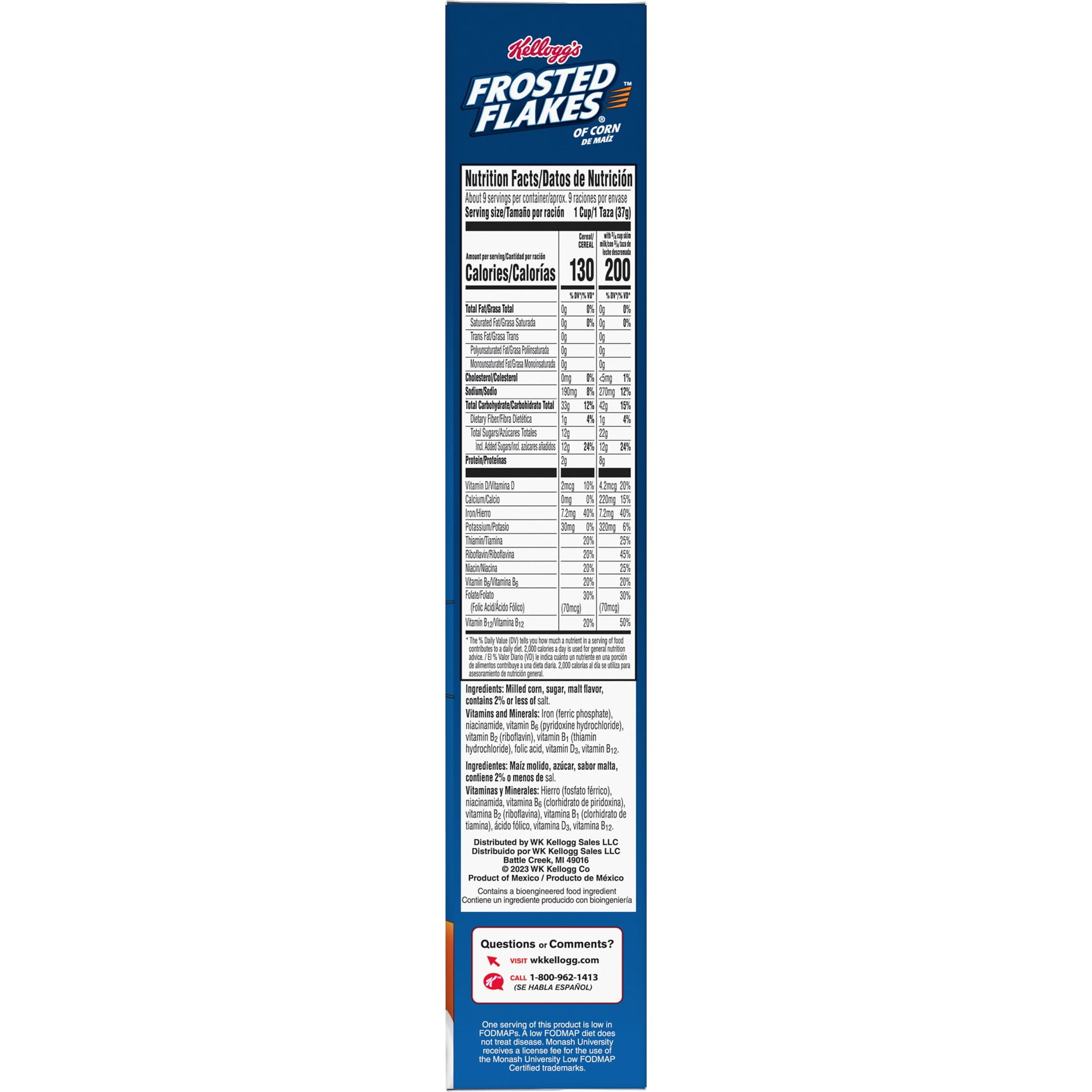 Just like Tony the Tiger, your whole family can get even their busiest days going with Kellogg’s Frosted Flakes ready-to-eat breakfast cereal. Thanks to the toasty, crunchy corn flakes sprinkled with sweet frosting, adults and kids experience a tasty and satisfying bowl every time. Each serving of this healthy cereal is fat free and a good source of 8 vitamins and minerals. Plus, there are no artificial colors or flavors; Enjoy sweet cereal milk after a delicious bowl of Frosted Flakes cereal. Make it a sweet complement to your morning coffee or tea. Eat pawfuls as a school snack or even a late-night bite. Crush them up as a crunchy topping for ice cream. Kellogg’s Frosted Flakes cereal gives you the sweet spark to go all in and let your GR-R-REAT out.