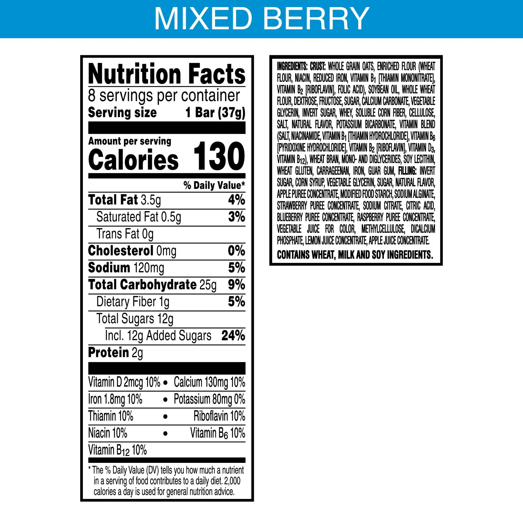 - Soft baked breakfast bars made with whole grains and tasty mixed berry flavor; Convenient addition to any balanced breakfast ; Shelf-Stable