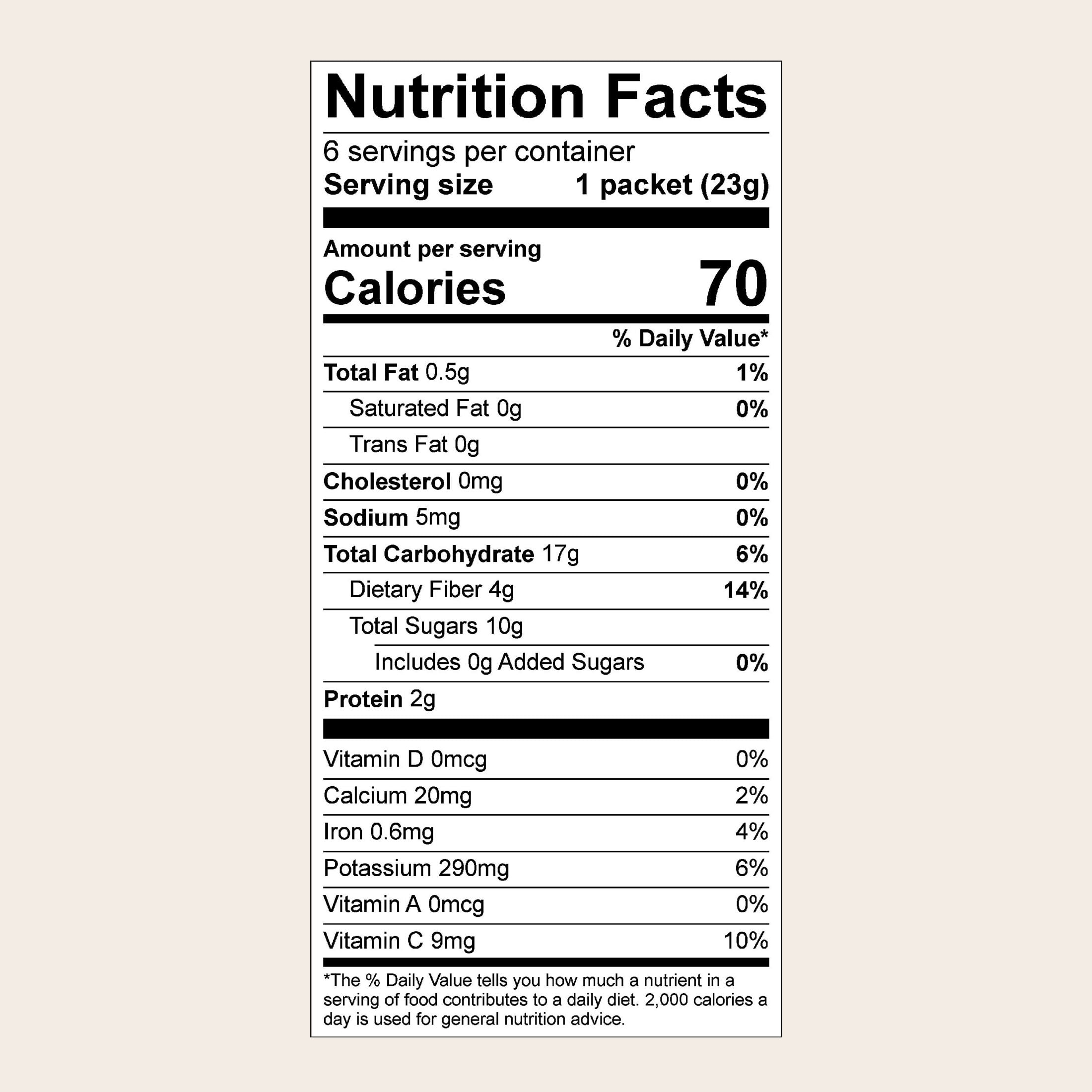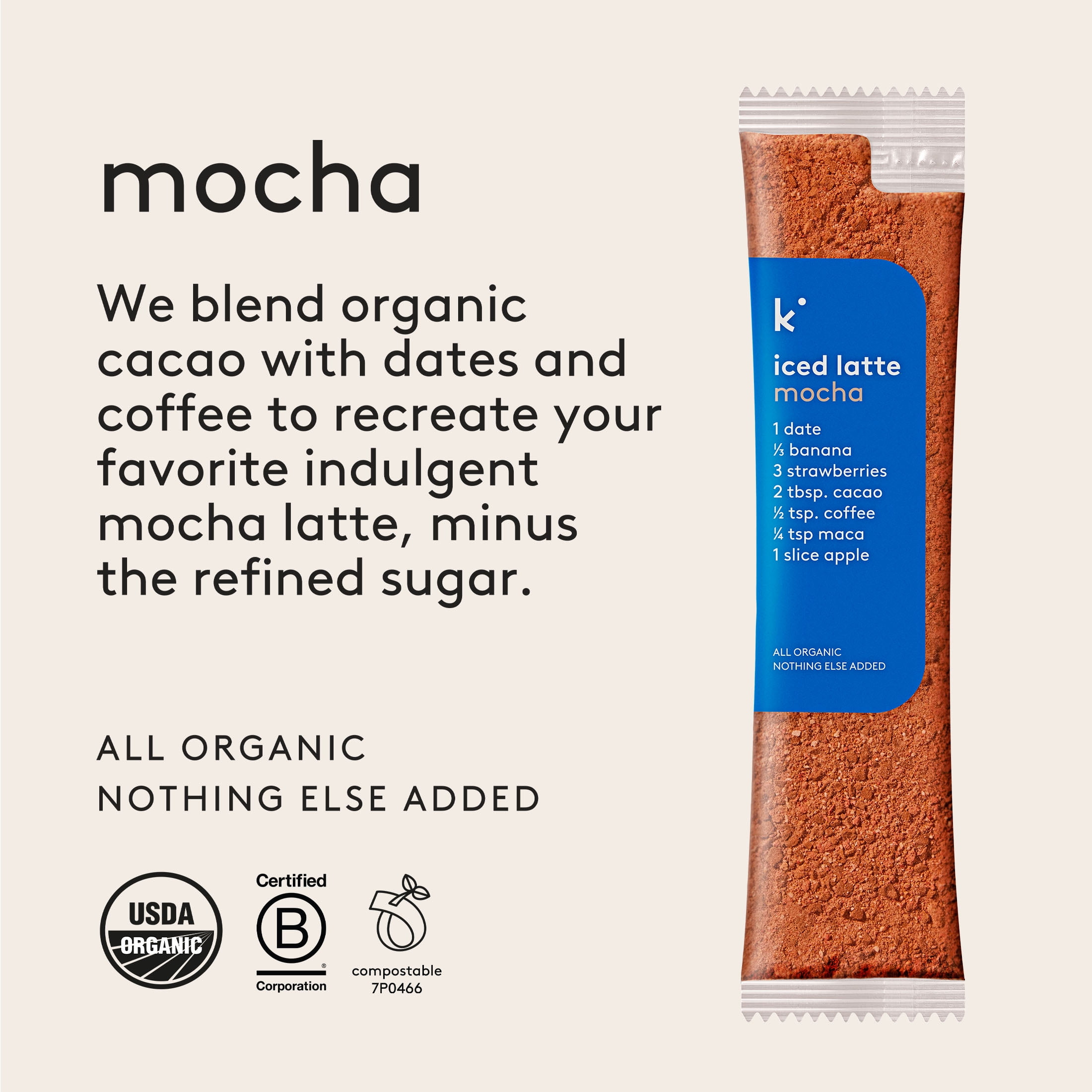 The ingredients in this drink mix are what most appeals to me. Using dates for sugar, and a very simple list of other ingredients. I also love that the packets are compostable. This company really makes me feel like they care about what they are selling.