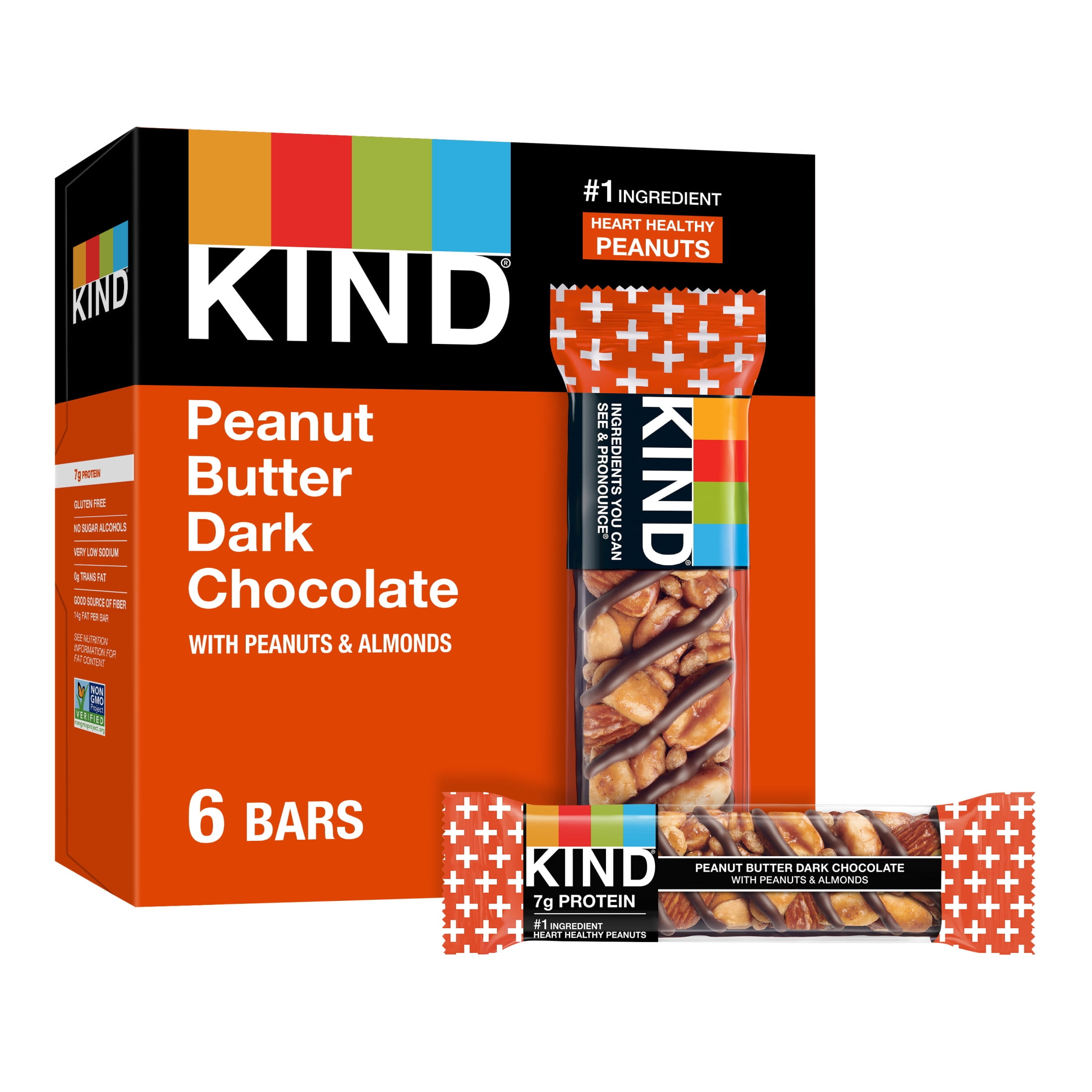 - Six 1.4 oz KIND Healthy Snack bar, Peanut Butter Dark Chocolate gluten free bars