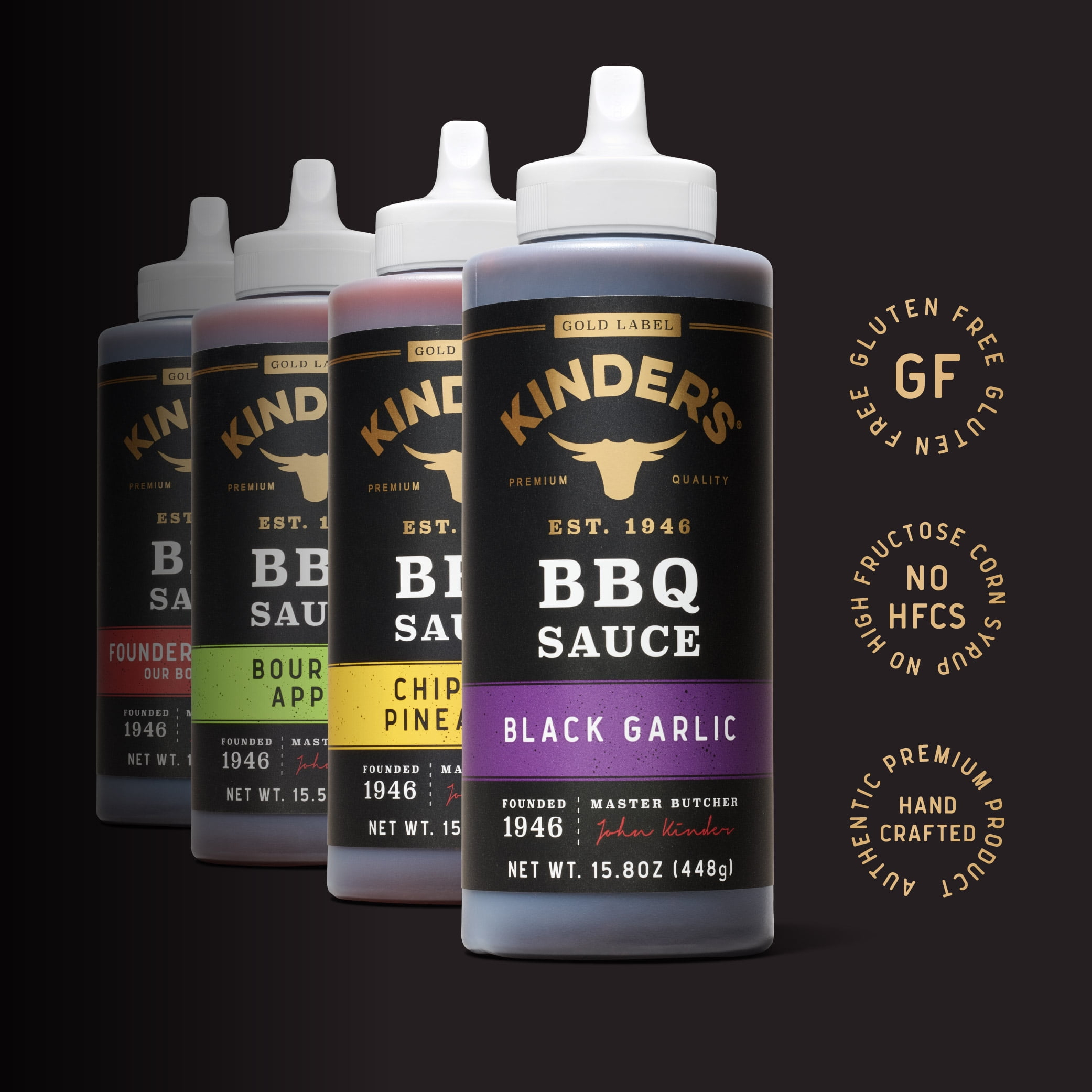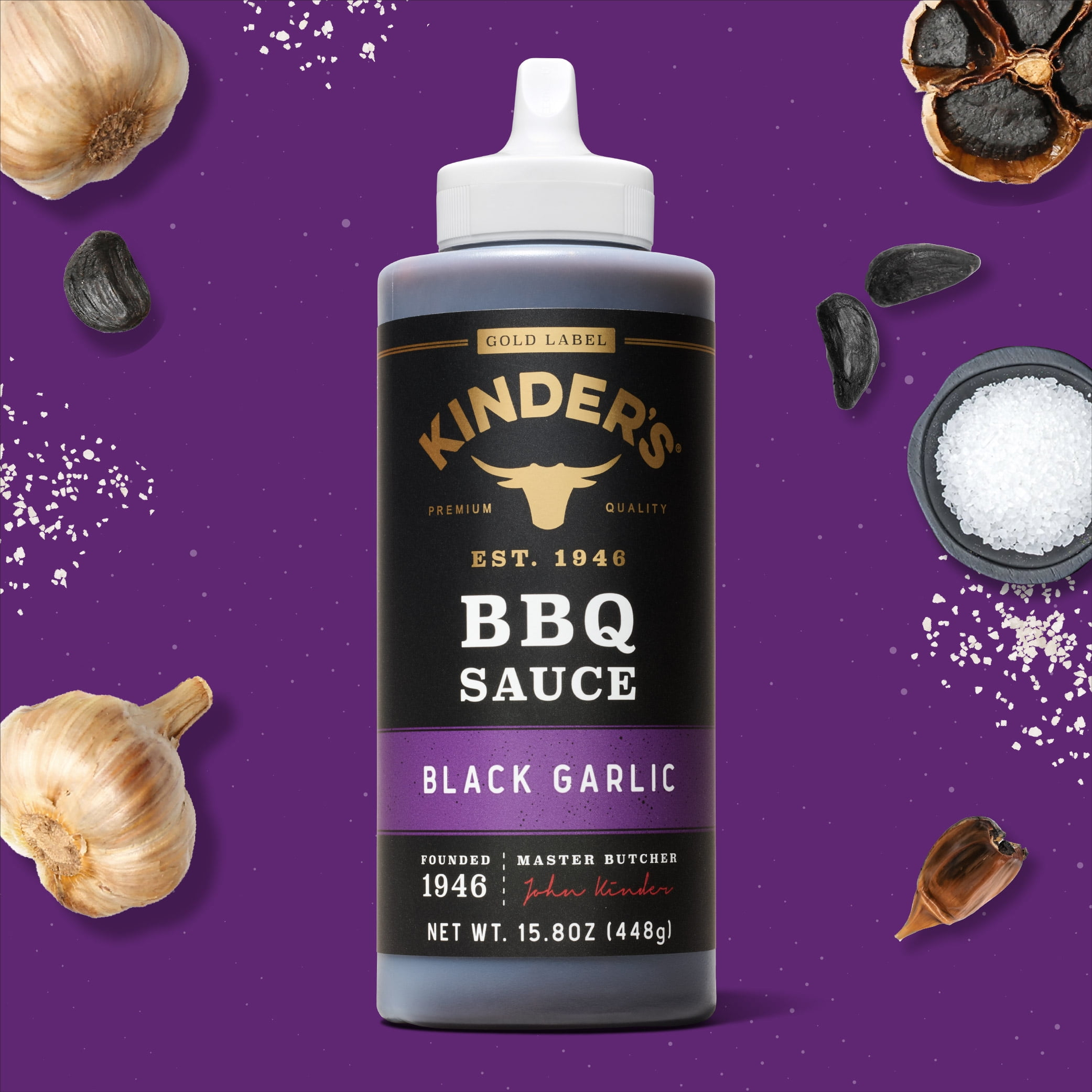 Kinder’s signature Black Garlic BBQ Sauce combines our classic sweet and smoky BBQ with rich, fermented black garlic. It is a perfect balance of sweet, savory and smoky that we think you’re going to love.