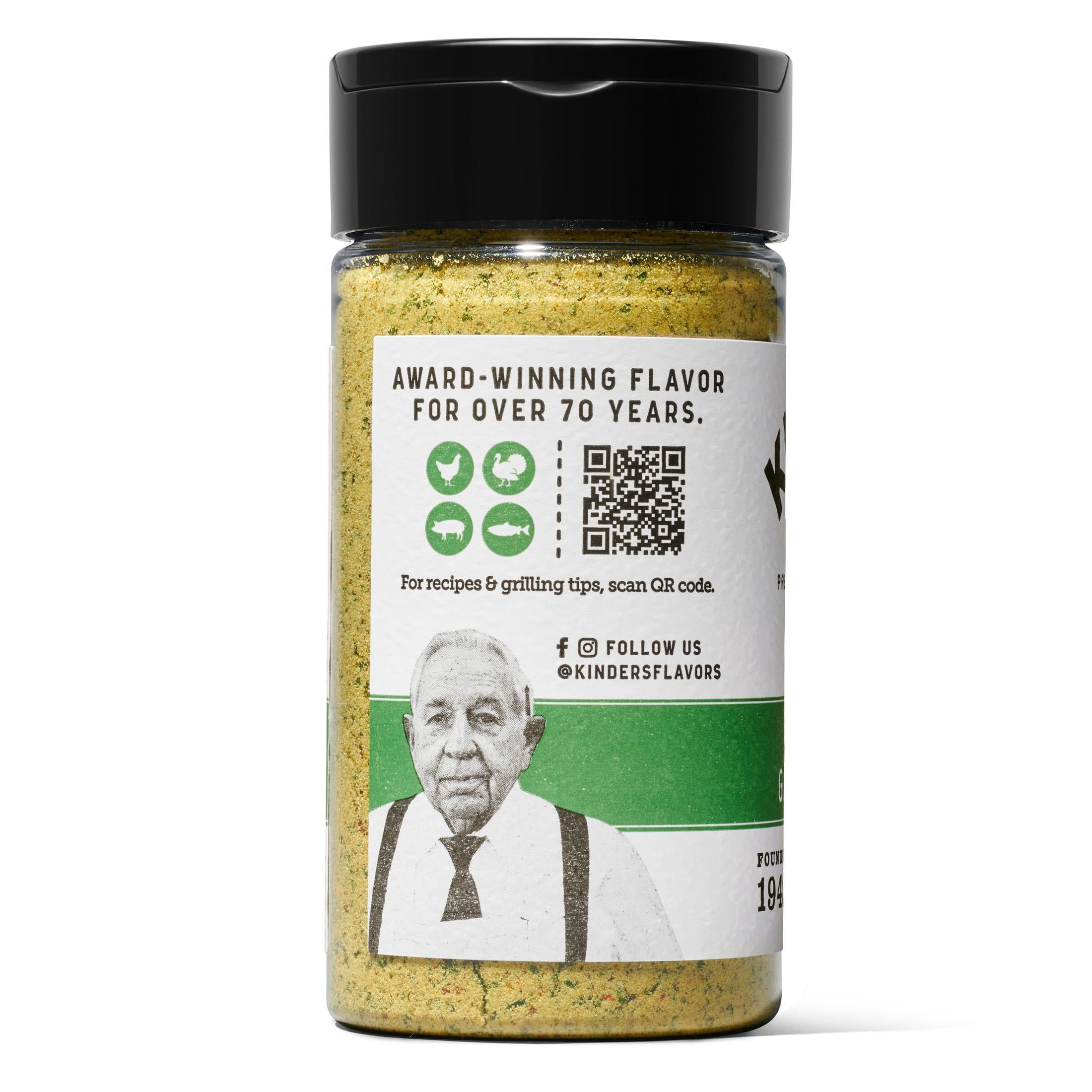 Butter. Garlic. Herbs. A hint of lemon peel. This family favorite butter blend with garlic, herbs and lemon is great with chicken, pork, fish, and vegetables. Whether you grill, roast, or sauté, we can’t wait for you to try it. Kinder’s: Handcrafted by People Obsessed with Flavor In 1946, World War II Navy veteran John Kinder started his own butcher shop in a small storefront in San Pablo, California. Over the next seven decades, John built a reputation for commitment to quality, family service and amazing flavors. At the age of 90, he was still showing up first and helping customers find quality ingredients to make clean, delicious meals for family and friends. At Kinder’s, we carry on Grandpa John’s legacy. We show up first. We treat you like family. We are obsessed with quality. And we hope you love our flavorful seasonings and sauces as much as we do. The Kinder’s Difference Here at Kinder’s, we take flavor and quality very seriously. Each one of our products is handcrafted with only the highest quality ingredients. We never use any artificial flavors, fillers, or additives. Just premium seasonings for meals the whole family will love.