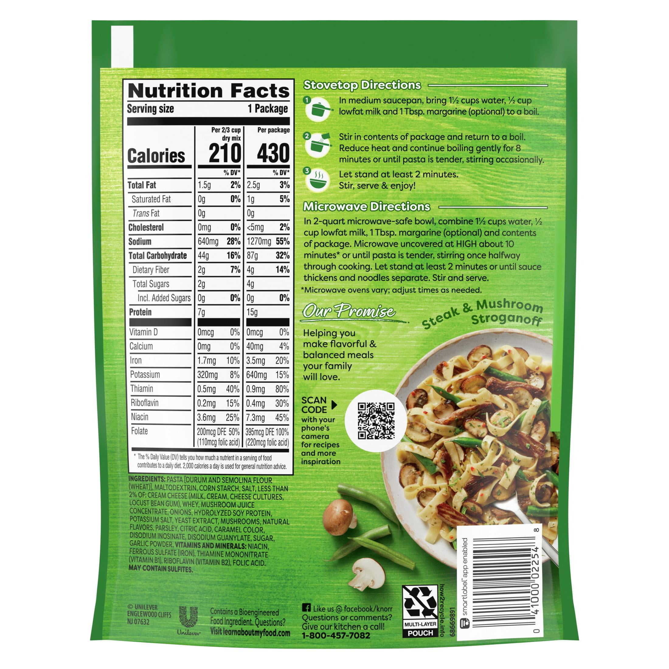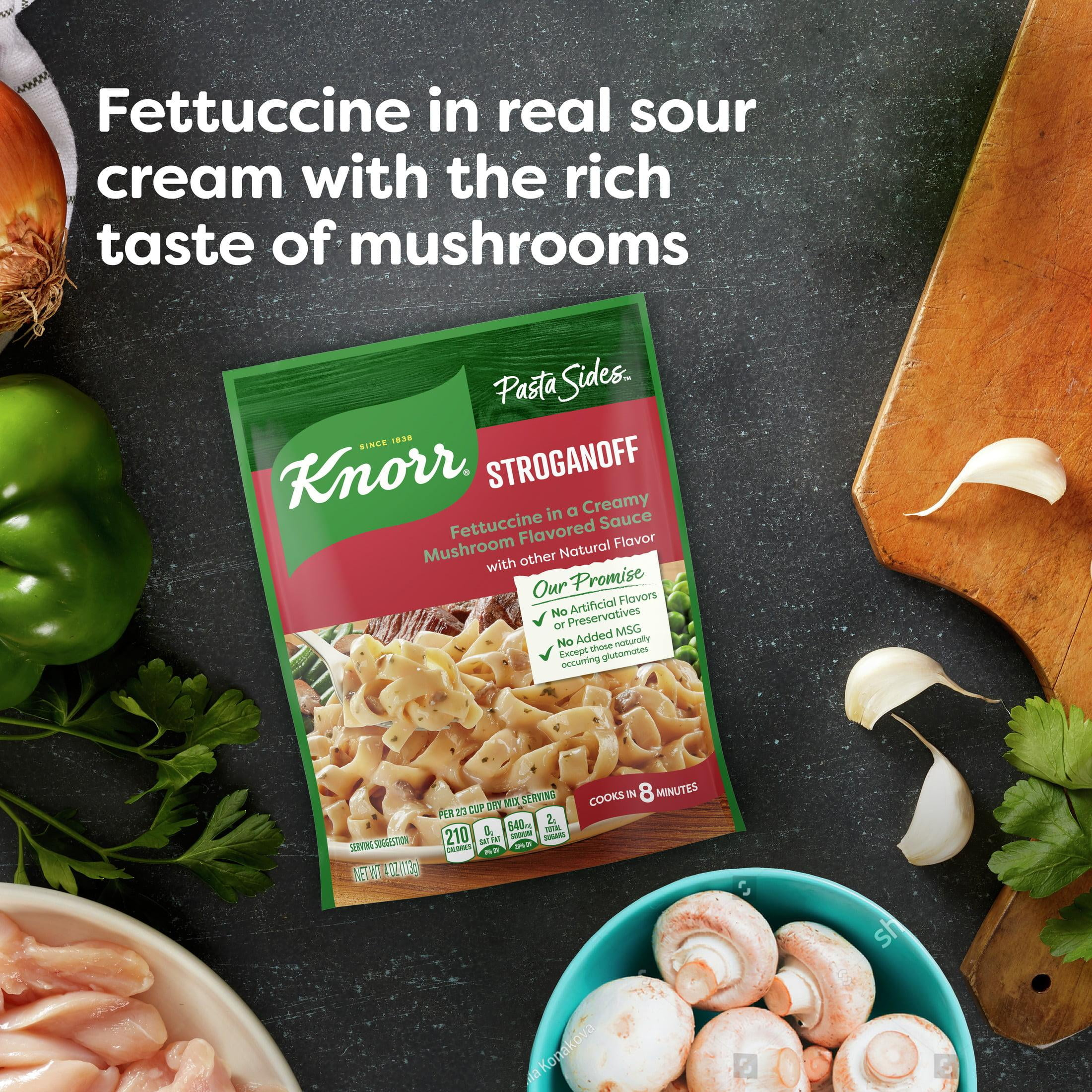 Knorr No Artificial Flavors Stroganoff Fettuccine Pasta Sides, 8 Minute Cook Time, Combines the tangy flavor of real sour cream with the rich taste of mushrooms. On top of tasting delicious, our Stroganoff is quick and easy to prepare. Knorr Pasta Sides Stroganoff cooks in just 8 minutes on the stovetop or in the microwave. Knorr Pasta Sides have no artificial flavors and no added MSG. Simply prepare Knorr Pasta Sides and add your favorite meat and vegetables to make a dinner your family is sure to love. Discover more quick and delicious dinner ideas at Knorr.com.