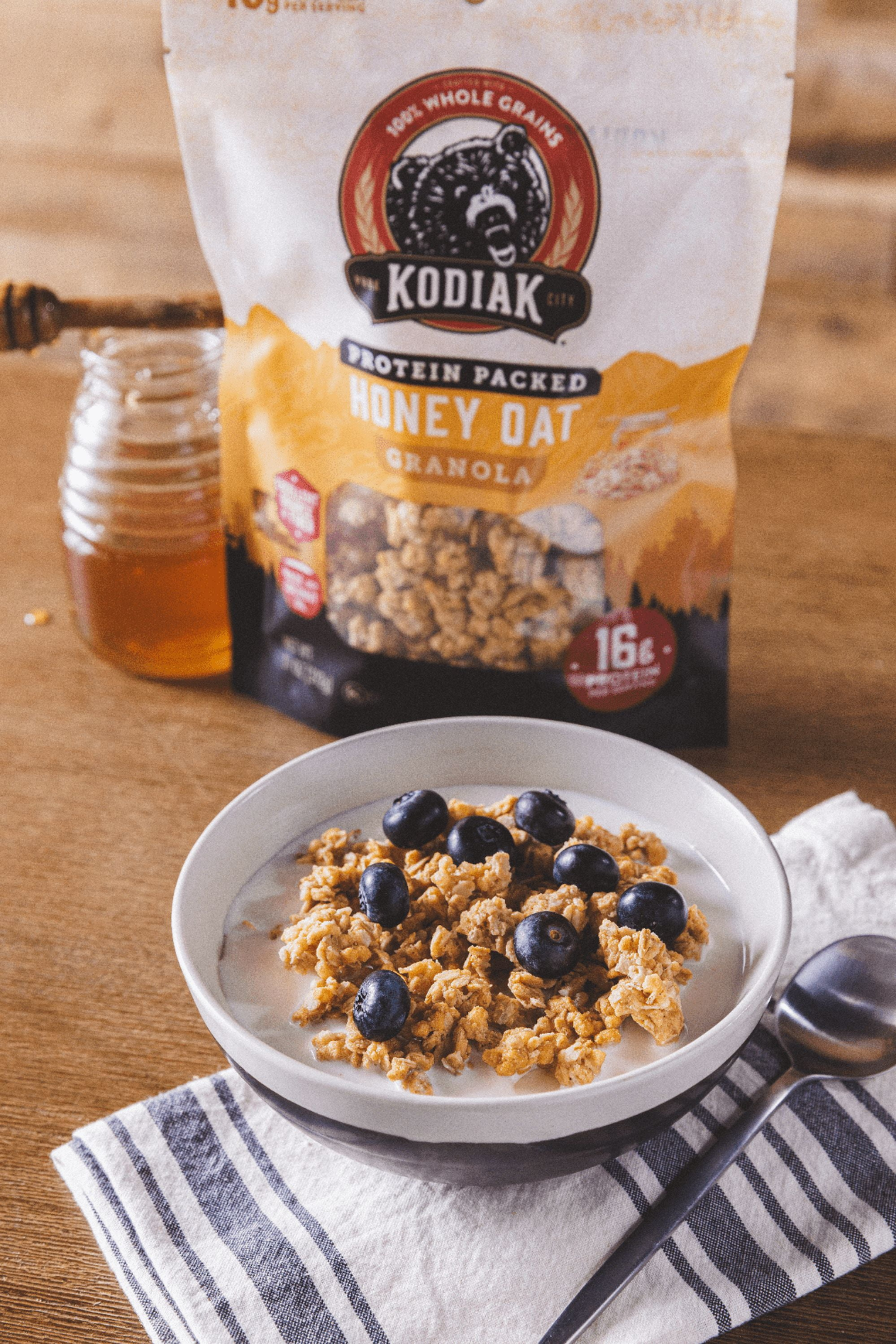 Kodiak Honey Oat Granola is the quick, protein-packed fuel you need before your next adventure. Craving a delicious crunch with your yogurt? Use this oats and honey granola as a topping. Want a protein snack to take on the go? Grab and munch as is. The sweet, honey flavor is a mouth-watering option for any occasion while still feeding that wild thing inside to take on the day. Crafted with 16 grams of protein and 100% whole grains, this isn’t just granola; it’s the kind that has the real good stuff to keep you feeling fuller, longer.