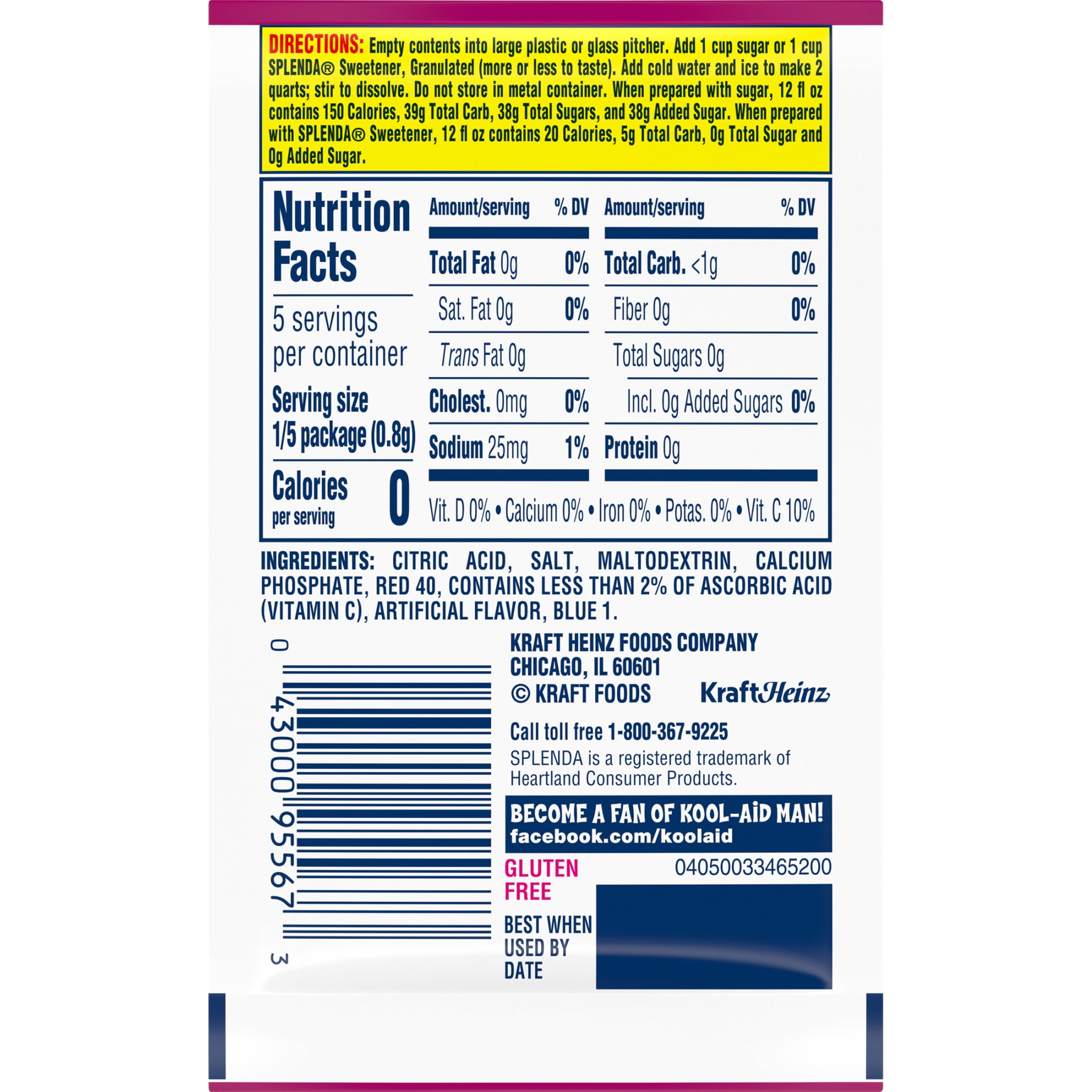 Kool-Aid Artificially Flavored Black Cherry Unsweetened Powdered Drink Mix is a delicious way to stay hydrated. This unsweetened powdered drink mix makes it easy to prepare a tasty black cherry drink. Just mix it with water and sugar or your sweetener of choice. Quench your thirst with the refreshingly sweet taste of black cherry. With no caffeine, this cherry artificially flavored powdered drink mix is always a great choice for the whole family. It’s also a good source of vitamin C. These handy packets of unsweetened black cherry drink ensure that you always have a refreshing beverage ready-to-go. To prepare, empty contents of the 0.13 ounce drink mix packet into a plastic or glass pitcher. Add 1 cup of sugar or sweetener. Then, just add ice and water and stir for a 2 quart supply of tasty black cherry Kool-Aid.