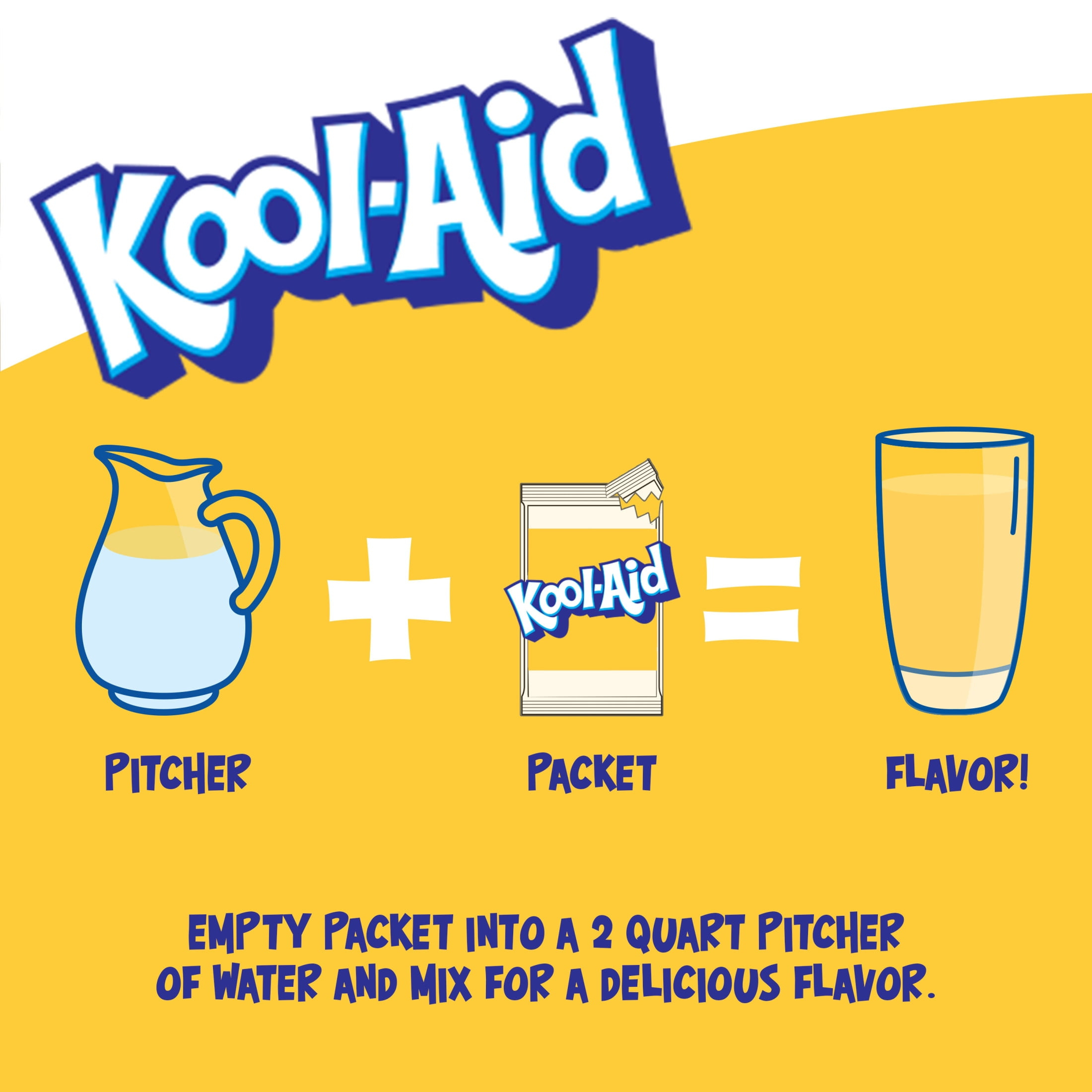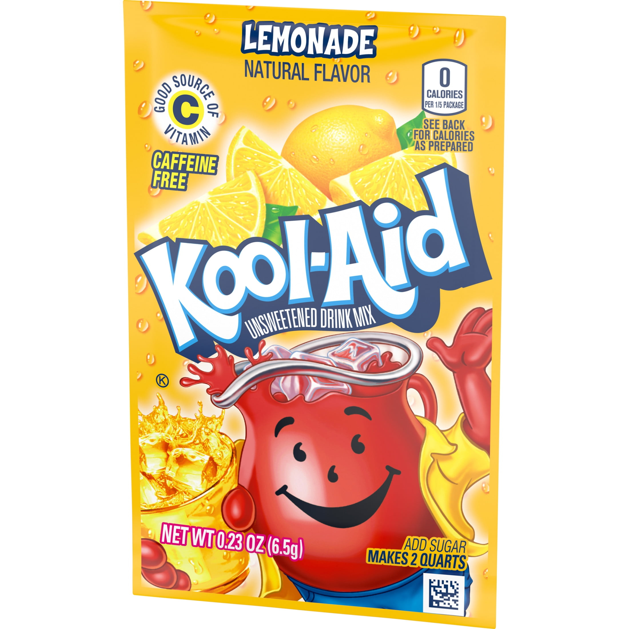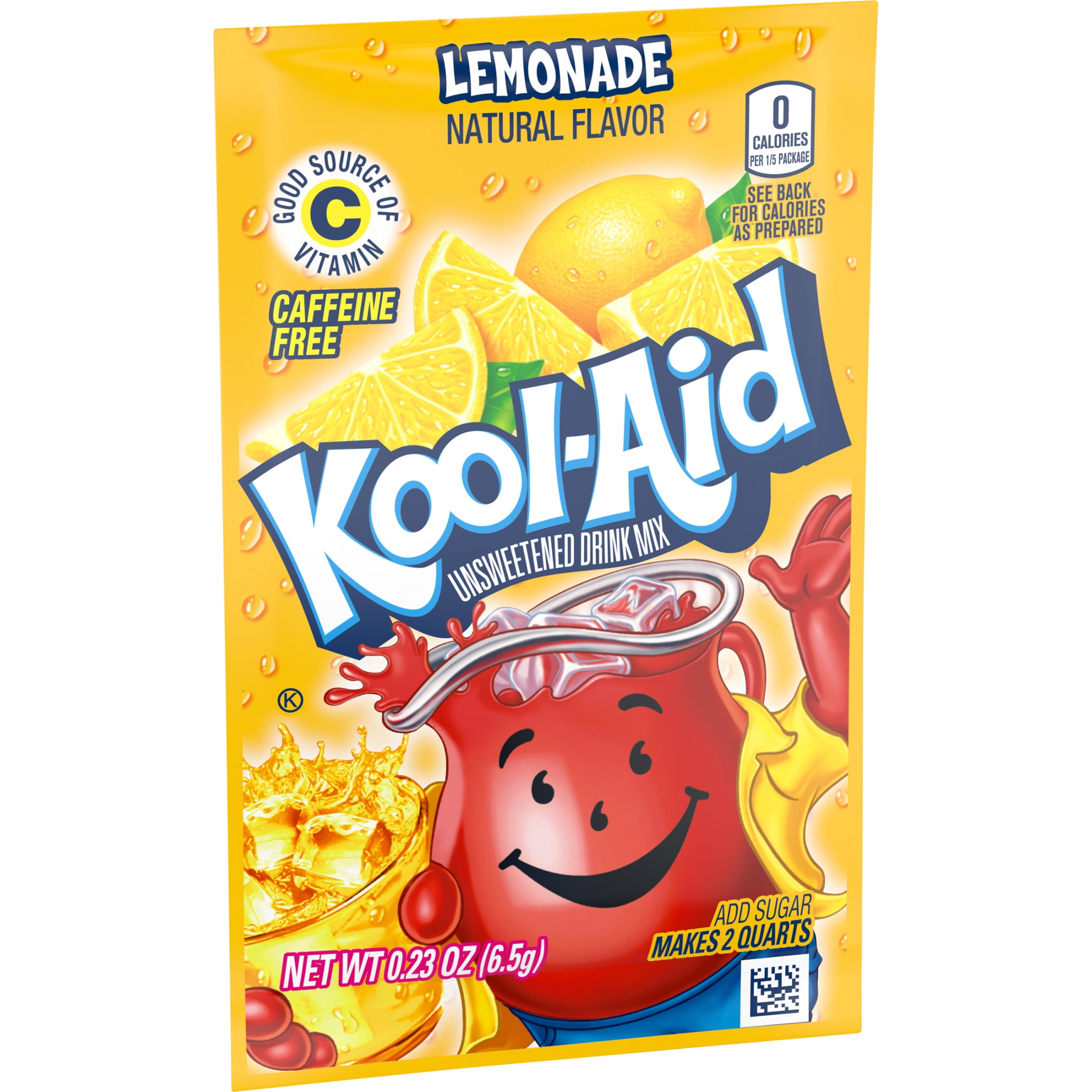 Kool-Aid Naturally Flavored Lemonade Unsweetened Powdered Drink Mix is a delicious way to stay hydrated. This unsweetened powdered lemonade mix makes it easy to prepare a tasty lemonade drink. Just mix it with water and sugar or your sweetener of choice. Quench your thirst with the refreshingly sweet taste of lemonade. With no caffeine, this naturally flavored powdered drink mix is always a great choice for the whole family. It’s also a good source of vitamin C. These handy packs of unsweetened lemonade drink ensure that you always have a refreshing beverage ready-to-go. To prepare, empty contents of the 0.23 ounce drink mix packet into a plastic or glass pitcher. Add 1 cup of sugar or sweetener. Then, just add ice and water and stir for a 2 quart supply of tasty lemonade Kool-Aid.